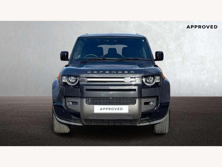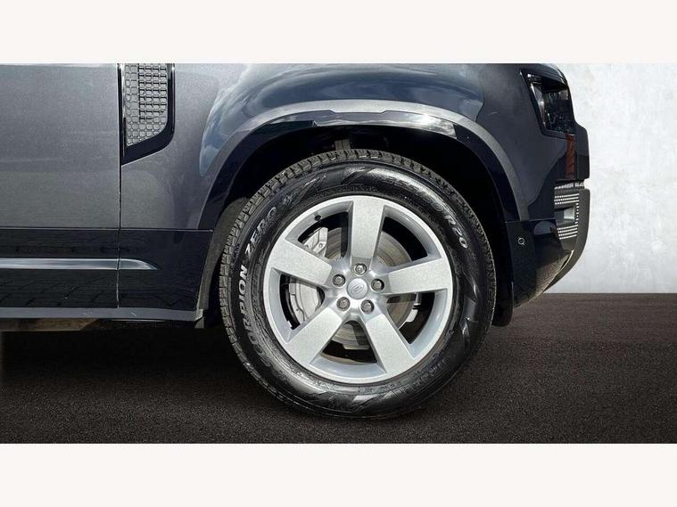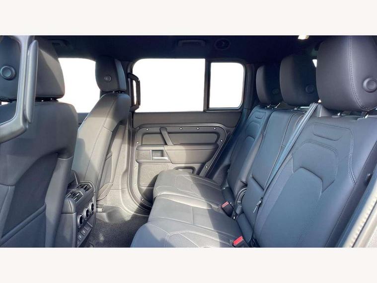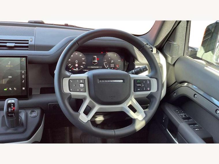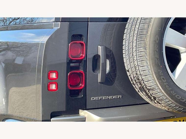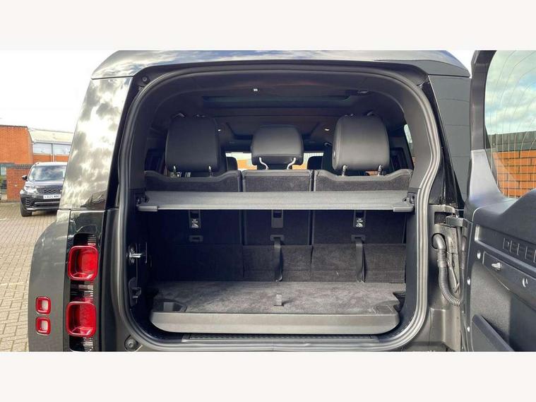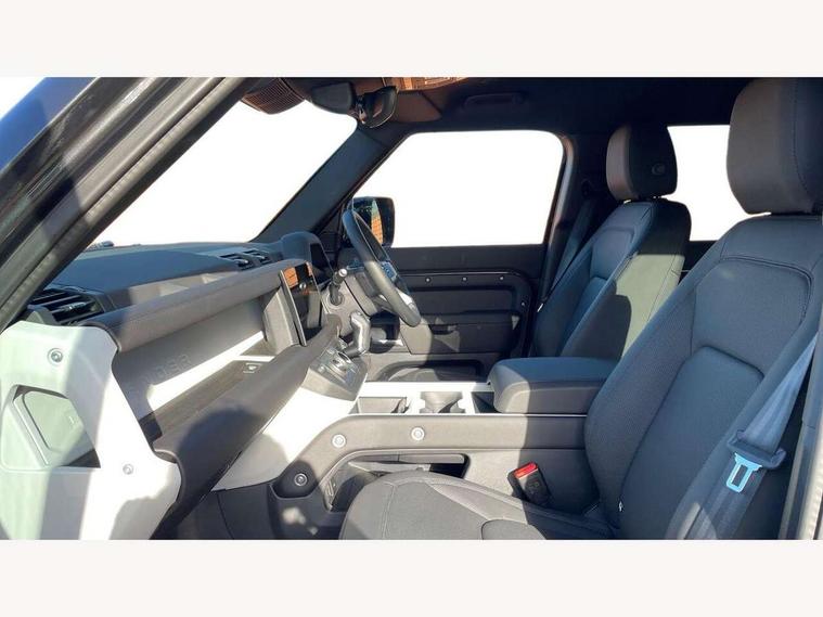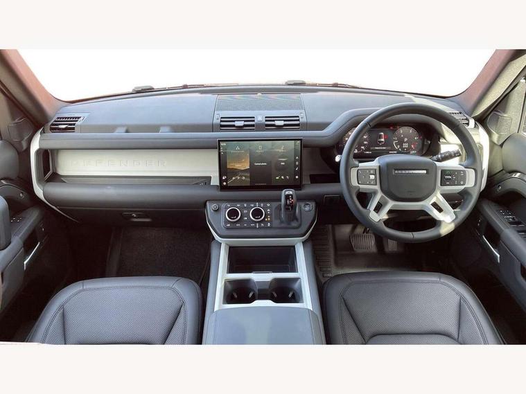 1 x USB-C (power only) & 1 x USB-C (power & data) in Row 1, 2 x USB-C in Row 2, 11.4" touchscreen, 2 x USB-C in Row 3, 360 degree parking aid, 3D Surround Camera with 360 View, 180 Rear View, Front Traffic Detection, Forward Vehicle Guidance, Tow Hitch Assist and clear sight Ground View, Adaptive cruise control, Android Auto, Apple CarPlay, Blind spot assist, Bluetooth system, Brake pad wear indicator, Clear exit monitor, Connected navigation pro, Driver condition monitor, Electric power assisted steering (EPAS), Interactive driver display, Lane keep assist, Push button start, Rear collision monitor, Rear traffic monitor, Traffic sign recognition with adaptive speed limiter, Trip computer, Wireless device charging, 8 speed automatic transmission, Adaptive dynamics, All wheel drive system, Electronic air suspension, Twin speed transfer box, DAB Radio (Digital Audio Broadcasting), Meridian 400w sound audio system with 11 speakers and subwoofer, Pivi pro connected, Automatic headlight levelling, Automatic headlights, Black exposed rear recovery eyes, Black roof rails, Body coloured bonnet, Centre high mounted stop light, Electric heated/power fold door mirrors with approach lights and auto dimming driver side, Electric windows with one touch open/close and anti-trap, Follow me home lighting, Heated rear window with timer, Heated windscreen, Illuminated metal treadplates with brand name script, LED tail lights, Privacy glass, Puddle lights, Rain sensing windscreen wipers, Rear fog lights, Rear side wing doors, Rear wiper, Side hinged tailgate, Sliding panoramic roof, Standard tail door, Trailer stability assist, 12V power socket in loadspace, 3 seat bench in 2nd row, 3 seat bench in third row, Air quality sensor, Cabin Air Purification plus, Centre console with armrest, Configurable cabin lighting, Durable rubber cabin flooring, Durable rubber loadspace flooring, Footwell lights, Front head restraints, Front passenger isofix child seat attachment, Heated steering wheel, Loadspace cover, Loadspace Hook, Multifunction steering wheel, Overhead stowage for sunglasses, Rear headrests, Rear ISOFIX, Rear reading lights, Single front passenger seat, Storage glovebox, Sunvisors with illuminated vanity mirrors, Twin front cupholders, Non-smoker package, Online pack with data plan - Defender, 5 x 3 point seatbelts, ABS, Brake hold function, Cornering brake control (CBC), Customer configurable autolock, Driver and passenger airbags, DSC - Dynamic Stability Control, EBD - Electronic brakeforce distribution, Electric parking brake (EPB), Emergency brake assist, Emergency braking, ESP + traction control, Front airbags with passenger seat occupant detector, HDC - Hill descent control, Hill launch assist, Low traction launch, Power operated child locks, Remote for (e-Call, Optimised assistance call, InControl app, Climate, beep and flash and door), RSC - Roll stability control, Seat belt reminder, TPMS (Tyre pressure monitoring system), Alarm, Immobiliser, Intrusion sensor, Keyless entry, Locking wheel nuts, Secure tracker pro, All season tyres,