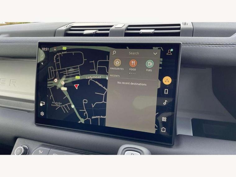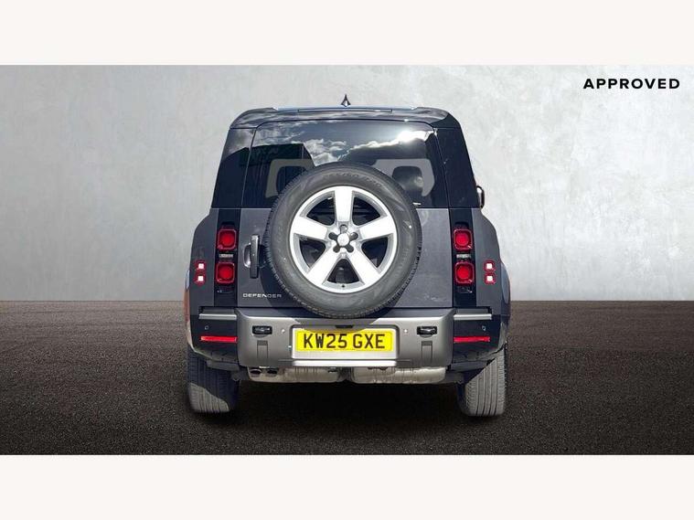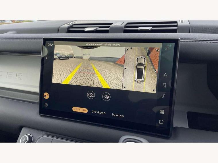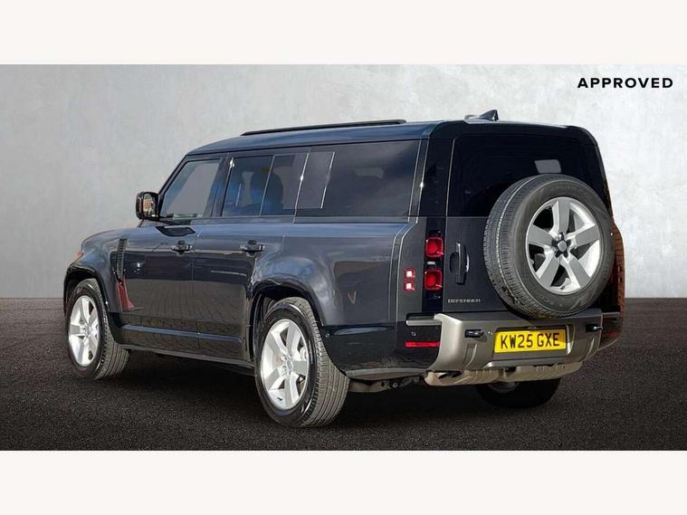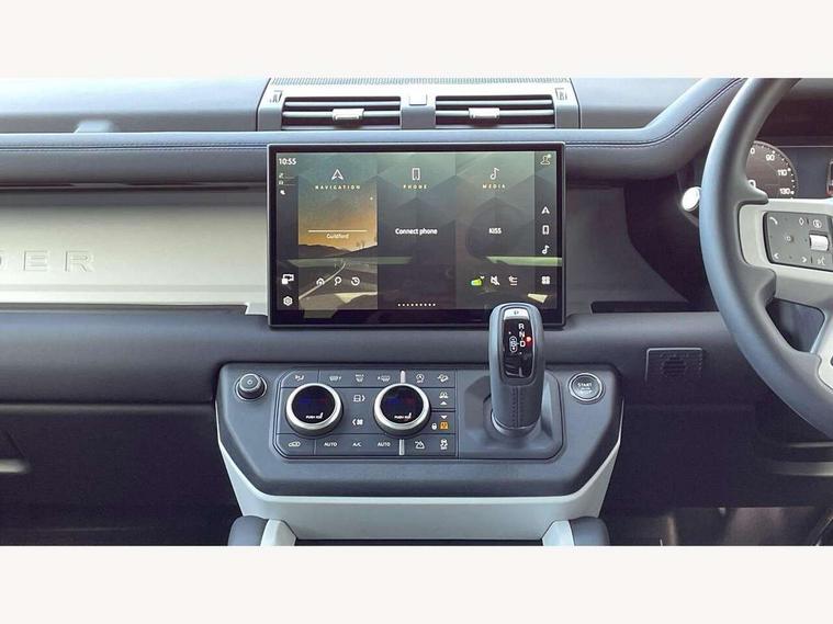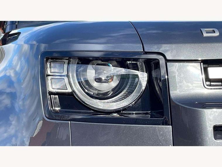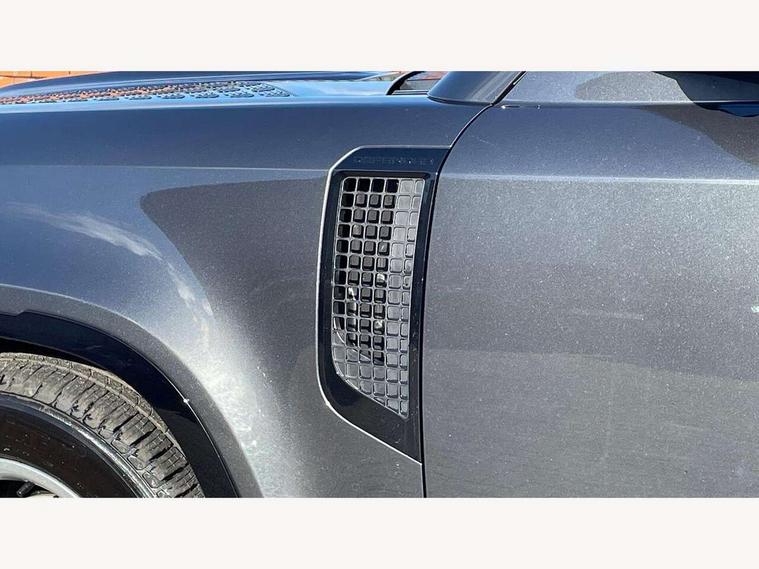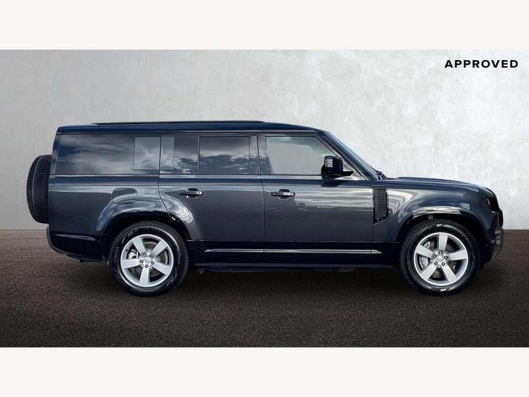1 x USB-C (power only) & 1 x USB-C (power & data) in Row 1, 2 x USB-C in Row 2, 11.4" touchscreen, 2 x USB-C in Row 3, 360 degree parking aid, 3D Surround Camera with 360 View, 180 Rear View, Front Traffic Detection, Forward Vehicle Guidance, Tow Hitch Assist and clear sight Ground View, Adaptive cruise control, Android Auto, Apple CarPlay, Blind spot assist, Bluetooth system, Brake pad wear indicator, Clear exit monitor, Connected navigation pro, Driver condition monitor, Electric power assisted steering (EPAS), Interactive driver display, Lane keep assist, Push button start, Rear collision monitor, Rear traffic monitor, Traffic sign recognition with adaptive speed limiter, Trip computer, Wireless device charging, 8 speed automatic transmission, Adaptive dynamics, All wheel drive system, Electronic air suspension, Twin speed transfer box, DAB Radio (Digital Audio Broadcasting), Meridian 400w sound audio system with 11 speakers and subwoofer, Pivi pro connected, Automatic headlight levelling, Automatic headlights, Black exposed rear recovery eyes, Black roof rails, Body coloured bonnet, Centre high mounted stop light, Electric heated/power fold door mirrors with approach lights and auto dimming driver side, Electric windows with one touch open/close and anti-trap, Follow me home lighting, Heated rear window with timer, Heated windscreen, Illuminated metal treadplates with brand name script, LED tail lights, Privacy glass, Puddle lights, Rain sensing windscreen wipers, Rear fog lights, Rear side wing doors, Rear wiper, Side hinged tailgate, Sliding panoramic roof, Standard tail door, Trailer stability assist, 12V power socket in loadspace, 3 seat bench in 2nd row, 3 seat bench in third row, Air quality sensor, Cabin Air Purification plus, Centre console with armrest, Configurable cabin lighting, Durable rubber cabin flooring, Durable rubber loadspace flooring, Footwell lights, Front head restraints, Front passenger isofix child seat attachment, Heated steering wheel, Loadspace cover, Loadspace Hook, Multifunction steering wheel, Overhead stowage for sunglasses, Rear headrests, Rear ISOFIX, Rear reading lights, Single front passenger seat, Storage glovebox, Sunvisors with illuminated vanity mirrors, Twin front cupholders, Non-smoker package, Online pack with data plan - Defender, 5 x 3 point seatbelts, ABS, Brake hold function, Cornering brake control (CBC), Customer configurable autolock, Driver and passenger airbags, DSC - Dynamic Stability Control, EBD - Electronic brakeforce distribution, Electric parking brake (EPB), Emergency brake assist, Emergency braking, ESP + traction control, Front airbags with passenger seat occupant detector, HDC - Hill descent control, Hill launch assist, Low traction launch, Power operated child locks, Remote for (e-Call, Optimised assistance call, InControl app, Climate, beep and flash and door), RSC - Roll stability control, Seat belt reminder, TPMS (Tyre pressure monitoring system), Alarm, Immobiliser, Intrusion sensor, Keyless entry, Locking wheel nuts, Secure tracker pro, All season tyres,