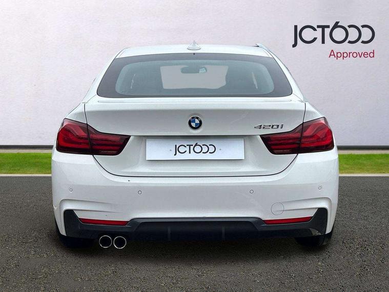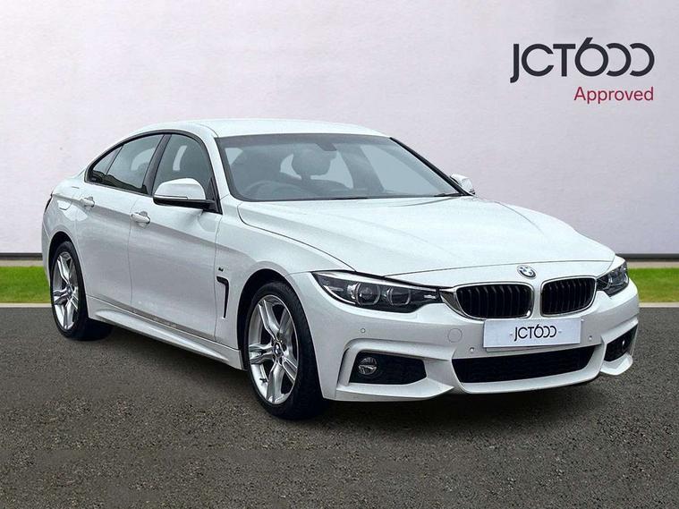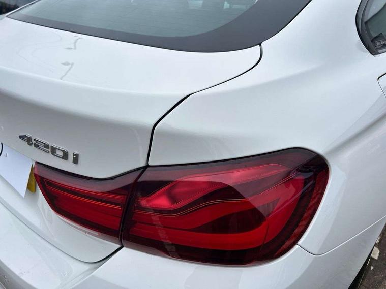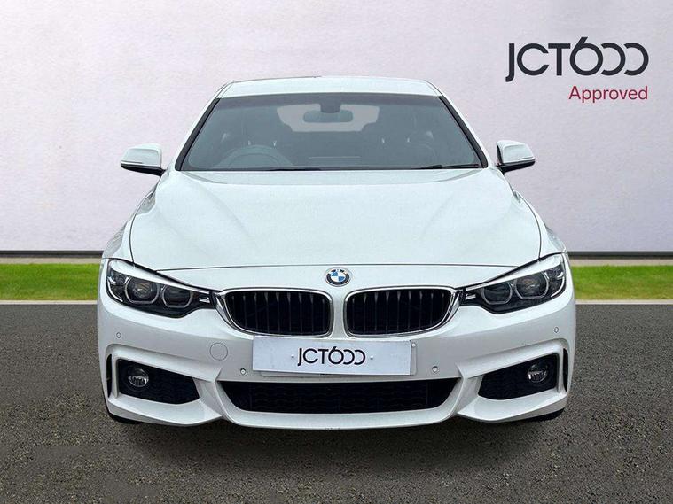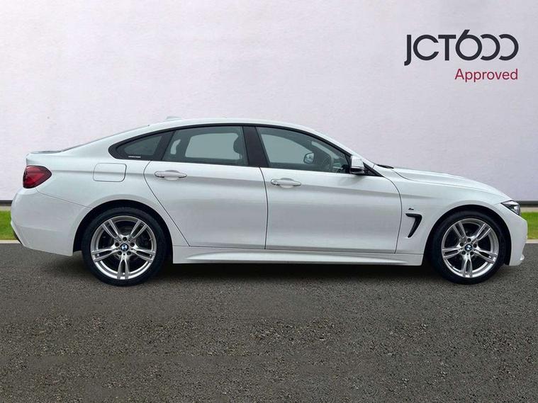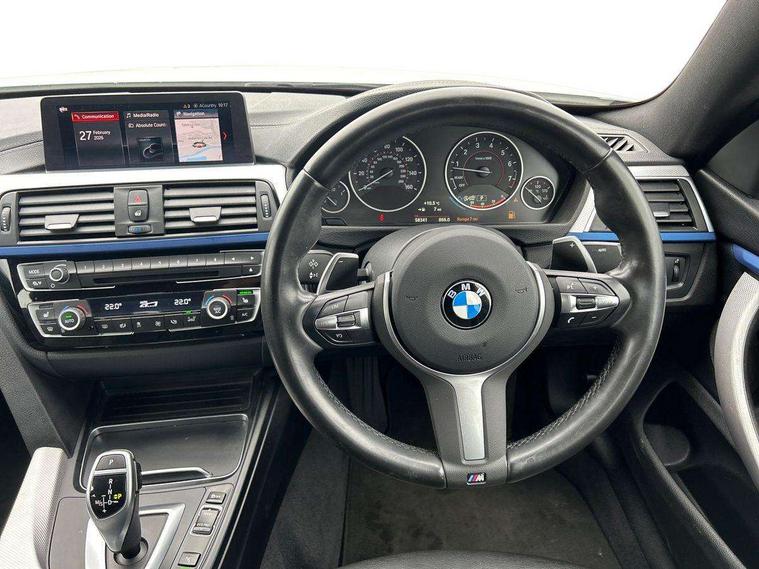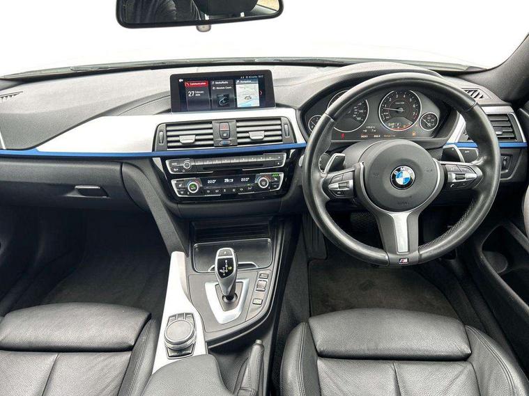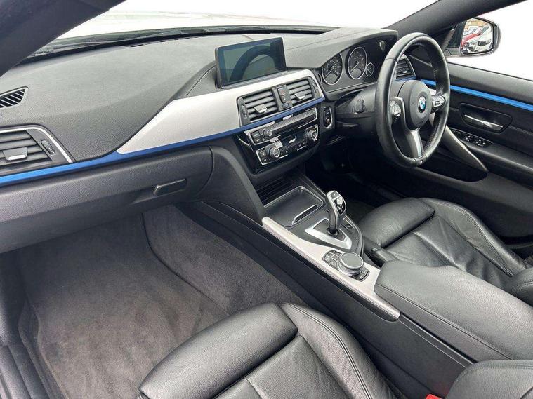 Auto start-stop, Automatic tailgate operation, BMW Online services, BMW remote services, BMW Teleservices, Brake pad wear indicator in front and rear, Check Control warning system for monitoring of lights and door/luggage compartment open warning, Condition based service, Control display - 6.5" colour display screen, Front/rear park distance control (PDC), iDrive Controller with 8 favourite buttons, Instrument cluster with speedometer with mph readout, tachometer, fuel gauge and oil temperature gauge, Lights on warning by audio warning signal when ignition is switched off, M Sport instrument cluster, Oil sensor for level and grade, warning by check control system, On board computer - average speed, fuel consumption, outside temp display with acoustic warning, clock/date, service interval, odometer/trip meter, Optimum shift indicator, Personal Profile - automatic lock when driving away selectable, Professional multimedia navigation system, Run flat indicator, Aluminium front suspension, Drive performance control with ECO PRO comfort + sport mode, Electronic differential lock, Five link rear suspension, Sport automatic transmission with steering-wheel mounted gearshift paddles and launch control, VALVETRONIC engine management, DAB tuner, Auto dimming rear view mirror, Body colour door handles, Body colour front bumper, Body colour mirror caps, Body colour rear bumper, Body colour roof mouldings, Chrome kidney grille with extra wide black, high gloss black vertical slats, Direction indicator, side repeaters, integrated in exterior mirrors, Door sill finishers with M designation, Dual exhaust tailpipes in left with chrome finisher, Dynamic brake lights, Electric front windows with fingertip open/close + anti-trap facility, Follow me home headlights, Front air inlet with high gloss black finish, Front and rear bumper system, Green tinted heat protection glazing, Heated windscreen washer jets, Heated, electrically adjustable exterior mirror aspheric on driver side, convex on passenger side, High gloss black air breather, High gloss black rear bumper insert, High gloss shadow line exterior trim, High level third brake light, LED daytime running lights, LED direction indicator lenses, LED eyebrow light, LED front fog lights, LED tail lights with 3D L-shaped LED light design, Lightweight engineering, M aerodynamic bodystyling, Model designation, Rain sensor including auto headlights activation, Shark fin antenna, Two speed adjustable intervals windscreen wipers, Visible VIN plate, Welcome lighting, Windscreen with grey shadeband, 12V sockets in front centre console and passenger footwell, 2 Rear seat headrests, 3 spoke leather M sport multifunction sports steering wheel, 4 grab handles, Air conditioning and radio control panel in high gloss black, Ambient lighting - switchable BMW classic orange/ cold white LED, Anthracite headlining, Automatic air conditioning with two zone control, Bottle holders integrated into front door trim storage compartments, Chrome centre console panel highlight, Driver and front passenger seat heating, Front and rear side armrests integrated into door trim, Front folding sliding armrest with storage compartment, Front head restraints, Front sports seats, Full black panel display, Glove compartment, Interior lighting, front centre over interior mirror and rear centre automatic interior light activation when door is opened, Leather gearknob and handbrake lever, Load lashing eyes in luggage compartment, Reach + rake manual adjustable steering column, Rear child seat isofix attachment with passenger airbag deactivation, Rear coded belt buckles, Storage compartment in rear centre console, Sunvisors with vanity mirrors and ticket pocket, Toolkit located in luggage compartment, Two front cup holders with a sliding lid, Velour floor mats, Extended lighting package - 4 Series Gran coupe, Non Smokers pack, 3 point seatbelts on all seats, Airbag - Front driver and passenger, front and rear head, front side, curtain head protection, manual deactivation of front passenger airbag possible, Anti lock braking system (ABS) with brake assist, Automatic Stability Control (ASC), Battery safety cut-off, BMW emergency call, Brake drying, Brake energy regeneration, Brake pretensioning, Cornering brake control (CBC), Crash sensor activating central locking release, hazard warning lights, Dynamic brake control, Dynamic stability control + (DSC+), Dynamic Traction Control - DTC, Front and rear ventilated brake disc, Front seatbelt force limiters, Hill start assistant, Pyrotechnically pre-tensioned front seatbelts, Seat belt security check for driver, Side impact protection, Twin horns, Tyre pressure monitoring with three level warning strategy, Variable torque distribution, Warning triangle and first aid kit, Alarm system (Thatcham 1) with electronic engine immobiliser, Central locking switch for all doors, fuel filler cap and luggage compartment, Remote control integrated key with blue inset, Start/stop button with Comfort Go keyless engine start and auto Start/stop deactivation button, Reduced rolling resistance tyres, Run flat tyres,