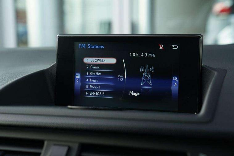 7" colour screen, Adaptive cruise control, Bluetooth telephone connectivity, Drive mode selector, Front and rear parking sensors, Lexus Navigaton System, Push button starter, Reversing camera, Speed sensitive power steering, Traffic sign recognition, Trip computer, Vehicle Dynamics Integrated Management, Vehicle Stability Control (VSC), 6 speakers, Auxiliary input socket, DAB Digital radio, Radio/CD + MP3, Steering wheel audio controls, USB connection, Adaptive rear spoiler, Auto high beam, Black scuff plates, Body colour bumpers, Door mirror puddle lights, Electric adjustable door mirrors, Electric folding door mirrors, Front and rear electric windows, Front fog lights, Green tinted UV reducing windscreen glass, Heated door mirrors, LED brake lights, LED daytime running lights, LED tail lights, Privacy glass (rear side windows and rear screen), Rain sensor windscreen wipers, Rear diffuser, Rear wiper, Shark fin roof aerial, 2 cupholders in front centre console, 4 load securing hooks in luggage area, 5 headrests, 60/40 split folding rear seat, Carpet mats, Centre arm rests, Driver/passenger sunvisors with illuminated vanity mirrors, Dual zone climate control, Fabric/Tahara leather upholstery, Front door pockets, Heated front seats, Illuminated entry system, Isofix child seat attachment, Leather steering wheel, Manually adjustable front seats - 6 way driver/4 way passenger, Map pocket on front seat backs, Rear armrest, Rear coat hook, Storage compartment in centre console, Storage compartment under load area floor, Tilt/telescopic adjustable steering wheel, ABS, Brake assist function, Curtain shield airbag, Driver and passenger side airbags, Drivers knee airbag, Dual stage driver/passenger airbags, Electronic brake force distribution, Front seatbelt pretensioner, Hill start assist control (HAC), Passenger airbag cut-off device, Passenger knee airbag, Pre crash system, Seatbelt warning, Sway warning system, Three 3 point rear seatbelts, Traction control, Tyre pressure warning, WHIPS whiplash protection system - front, Anti theft system, Double locking, Immobiliser, Intrusion sensor and alarm, Locking wheel nuts, Remote central locking, Smart entry + Smart start, Speed sensitive power door locks, VIN Window etching, Black interior trim, Space saver spare wheel,