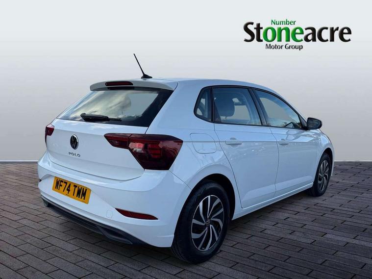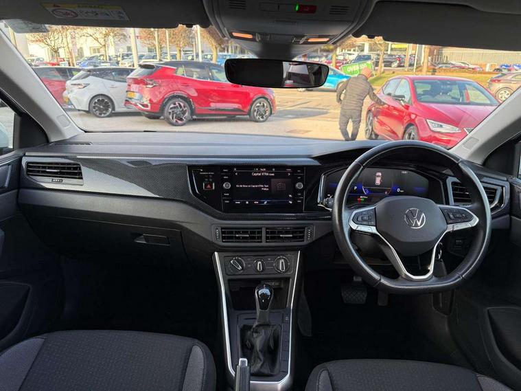 Adaptive cruise control with follow-to-stop and speed limiter, Advanced driver attention and drowsiness monitor, Bluetooth mobile phone interface, Dynamic road sign display, Emergency call service, Multifunction camera, Power assisted speed sensitive steering, Preparation for navigation system with media and internet package, Preparation for We connect and We connect plus, Speedo and rev counter, electronic odometer, trip, service interval display and exterior temperature gauge, Standard rear axle, Travel Assist - Lane keeping system and traffic jam assist, Travel assist including emergency assist, Trip computer, Warning signal and warning light for front and rear seatbelts not fastened, Washer fluid level indicator, Wireless app connect, Front wheel drive, Rear shock absorpion, Start-stop system with battery regeneration (recuperation - energy recovery during braking), DAB Digital radio, Diversity antenna for FM reception, Front and rear 6 speakers, Automatic dimming interior rear view mirror, Automatic headlight control with LED separate daytime running lights with coming/leaving home function, Body colour bumpers with chrome inserts, Body colour door handles, Body colour door mirrors, Electric front windows, Engine badge deletion, Headlight range adjustment, Heat insulating and laminated safety glass windshield, Heat insulating darkened glass in side and rear windows, LED Headlights, LED rear combination lamps, Power folding adjustable/heated exterior mirrors and front passenger exterior mirror lowering function, Rain sensor, Rear electric windows, Rear fog light, Rear side wing doors, Rear windscreen washer and wiper with interval delay, Third brake light, 12V power socket in centre console, 2 front and 2 rear reading lights with switch off delay and dimmer, 2 USB-C ports in the front, 2 USB-C charging sockets on the center console in the rear, 3 rear head restraints, 60/40 split folding rear seat and rear seat bench not split, Ceramique roof lining, Chrome plated radiator grille inserts, air vent surrounds and light switch surrounds, Door and side trim panel, Driver and front passenger seat height adjustment, Driver/passenger sunvisors with illuminated vanity mirrors, Front centre armrest, Front seat backrest storage pockets, Front standard seats, Handbrake lever handle in leather, Hartley/Thomas cloth upholstery, Headliner in recycled material, Isofix child seat preparation easy-fit (for two outer rear seats, and front passenger seat) compatible with I-size, Leather trimmed gear knob, Luggage compartment cover, Luggage compartment lighting, Removable luggage compartment floor, Single front passenger seat, Standard climatic zones, Standard pedal cluster, Three spoke leather wrapped multifunction steering wheel with shifting paddles, Light and vision pack - Polo, 3 point height adj front seatbelts + pretensioners, 3x3 point rear seatbelts, ABS, Driver and front passenger airbag with front passenger airbag deactivation, Drivers and front passengers safety optimised head restraints, ESC (Electronic stability control) + EDL (Electronic Differntial lock) and ASR (Traction control), Extended and predictive pedestrian/ cyclist protection, Front assist with autonomous emergency braking (for Adaptive Cruise Control ACC up to 130 mph), Front curtain and side airbags with center airbag, Front disc brakes, Hill hold control, Manual child lock in rear doors, Rear drum brakes, Single tone horn, Tyre pressure loss indicator, Alarm with interior protection, Anti-theft alarm system with interior monitoring, backup horn, and towing protection, Anti-theft wheel bolts, Electronic engine immobiliser, Lava stone black gloss/matt decorative inserts in dash and front door panels, Low rolling resistance tyres,