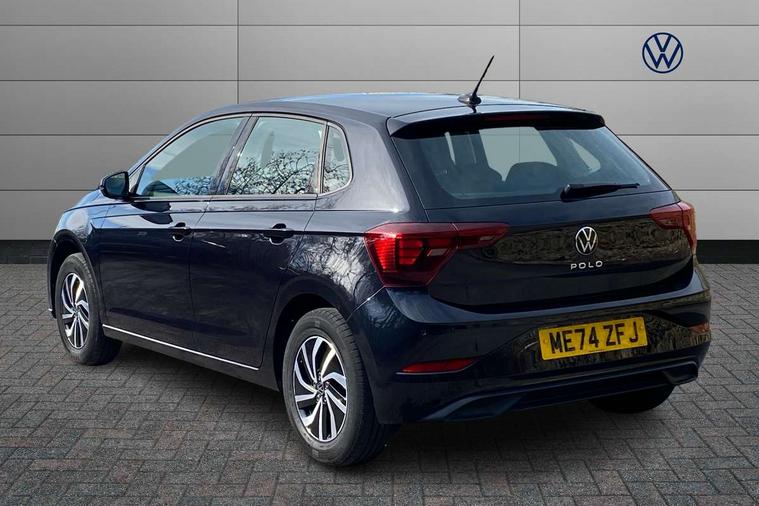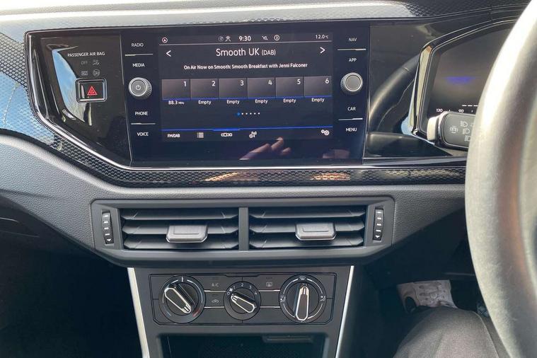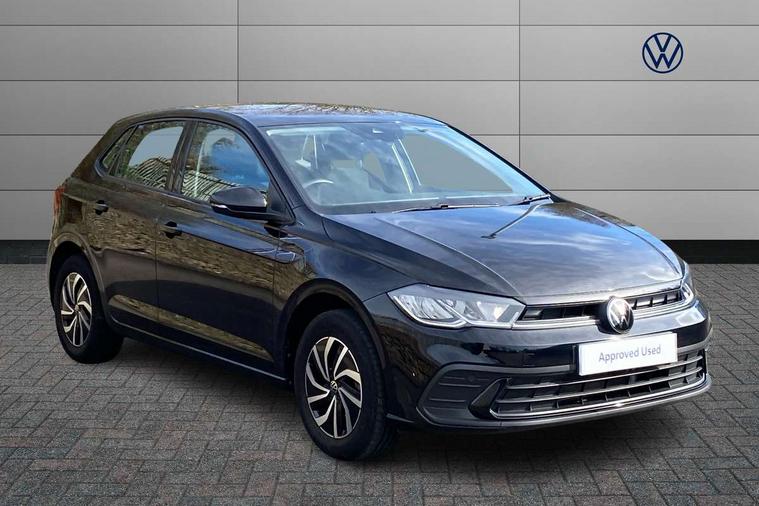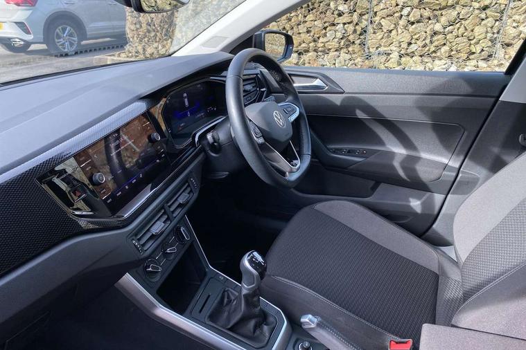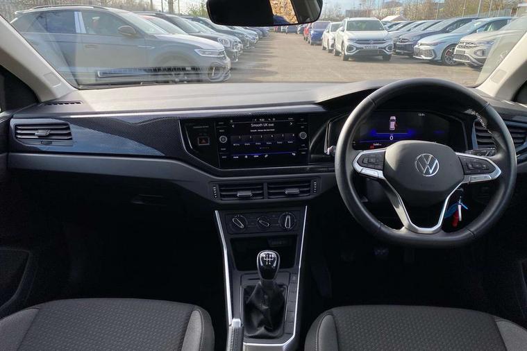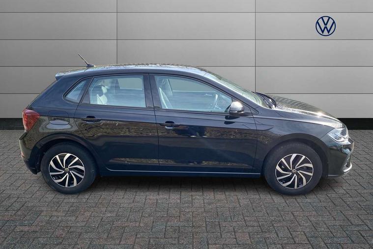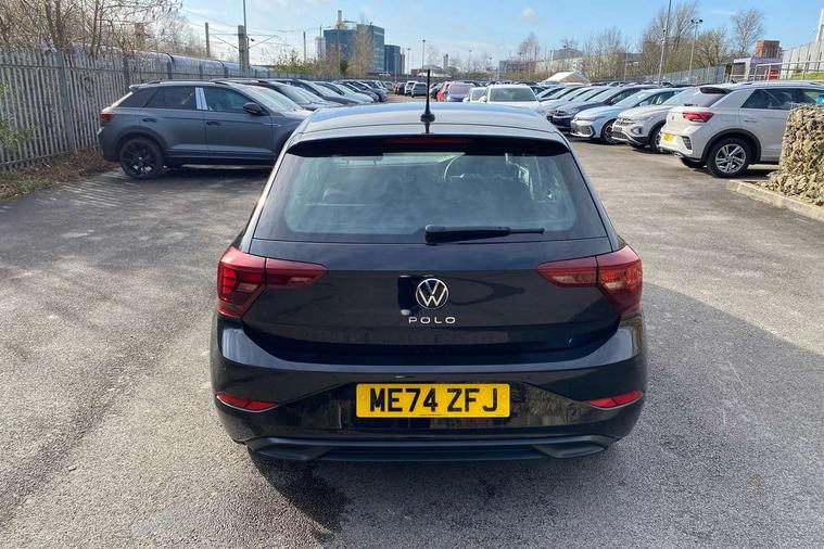 Adaptive cruise control without follow-to-stop and speed limiter, Bluetooth mobile phone interface, Driver alert system, Emergency call service, Front assist system, Power assisted speed sensitive steering, Preparation for We connect and We connect plus, Speedo and rev counter, electronic odometer, trip, service interval display and fuel gauge, Standard rear axle, Travel Assist - Lane keeping system and traffic jam assist, Travel assist including emergency assist, Trip computer, Warning signal and warning light for front and rear seatbelts not fastened, Washer fluid level indicator, Wireless app connect, Front wheel drive, Rear shock absorpion, Start-stop system with battery regeneration (recuperation - energy recovery during braking), DAB Digital radio, Diversity antenna for FM reception, Automatic dimming interior rear view mirror, Body colour bumpers, Body colour door handles, Body colour door mirrors, Chrome plated radiator grille inserts, air vent surrounds and light switch surrounds, Electric front windows, Heat insulating glass in side and rear windows, Heat insulating glass windscreen, Power folding adjustable/heated exterior mirrors and front passenger exterior mirror lowering function, Rain sensor, Rear electric windows, Rear fog light, Rear windscreen washer and wiper with interval delay, Third brake light, 12V power socket in centre console, 2 front and 2 rear reading lights, 2 USB-C ports in the front, 2 USB-C charging sockets on the center console in the rear, 3 rear head restraints, 60/40 split folding rear seat and rear seat bench not split, Ceramique headliner, Door and side trim panel, Driver and front passenger seat height adjustment, Driver/passenger sunvisors with illuminated vanity mirrors, Front centre armrest, Front seat backrest storage pockets, Front standard seats, Handbrake lever handle in leather, Hartley/Thomas cloth upholstery, Isofix child seat preparation easy-fit (for two outer rear seats, and front passenger seat) compatible with I-size, Leather trimmed gear knob, Luggage compartment cover, Luggage compartment floor, Luggage compartment lighting, Multifunction steering wheel, Standard pedal cluster, Light and vision pack - Polo, 3 point height adj front seatbelts + pretensioners, 3x3 point rear seatbelts, ABS, Driver and front passenger airbag with front passenger airbag deactivation, Drivers and front passengers safety optimised head restraints, ESC (Electronic stability control) + EDL (Electronic Differntial lock) and ASR (Traction control), Extended and predictive pedestrian/ cyclist protection, Front curtain and side airbags with center airbag, Front disc brakes, Hill hold control, Rear drum brakes, Single tone horn, Tyre pressure loss indicator, Alarm with interior protection, Anti-theft alarm system with interior monitoring, backup horn, and towing protection, Anti-theft wheel bolts, Electronic engine immobiliser, Lava stone black gloss/matt decorative inserts in dash and front door panels, Low rolling resistance tyres,