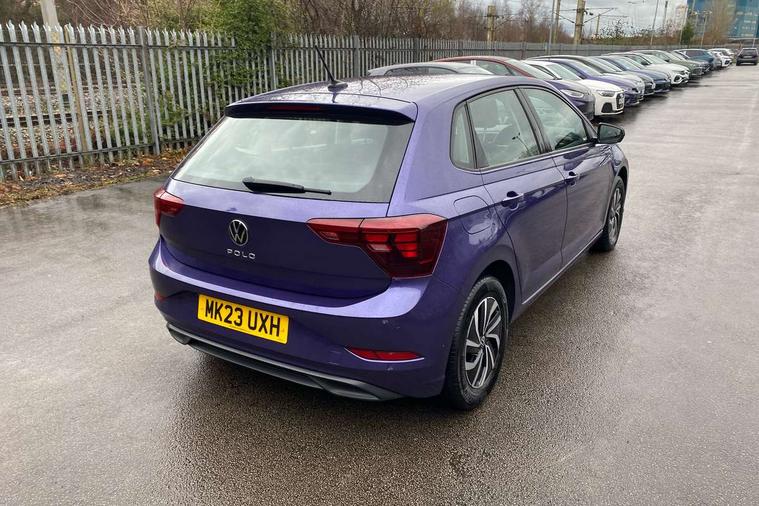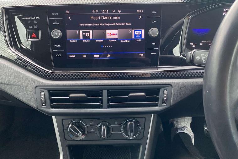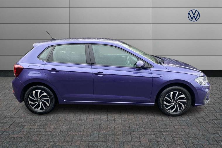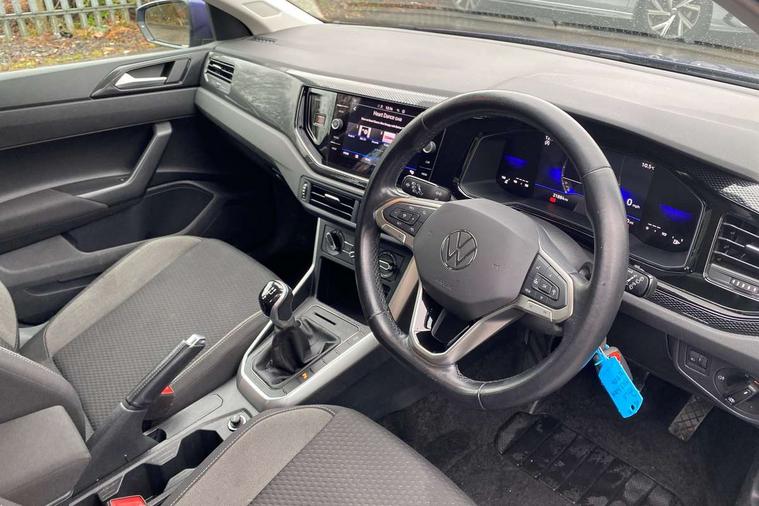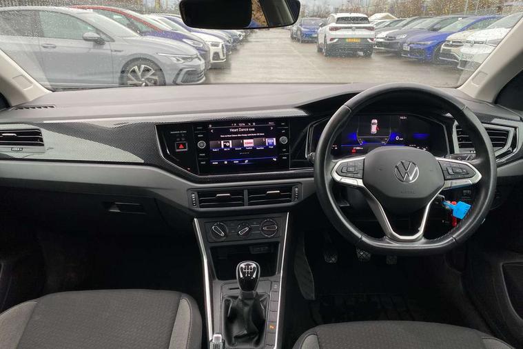 Adaptive cruise control without follow-to-stop and speed limiter, Bluetooth mobile phone interface, Driver alert system, Emergency call service, Front assist system, Power assisted speed sensitive steering, Preparation for We connect and We connect plus, Speedo and rev counter, electronic odometer, trip, service interval display and fuel gauge, Standard rear axle, Travel Assist - Lane keeping system and traffic jam assist, Travel assist including emergency assist, Trip computer, Warning signal and warning light for front and rear seatbelts not fastened, Washer fluid level indicator, Wireless app connect, Front wheel drive, Rear shock absorpion, Start-stop system with battery regeneration (recuperation - energy recovery during braking), DAB Digital radio, Diversity antenna for FM reception, Front and rear 6 speakers, Automatic dimming interior rear view mirror, Body colour bumpers, Body colour door handles, Body colour door mirrors, Electric front windows, Heat insulating darkened glass in side and rear windows, Heat insulating glass windscreen, Power folding adjustable/heated exterior mirrors and front passenger exterior mirror lowering function, Rain sensor, Rear electric windows, Rear fog light, Rear side wing doors, Rear windscreen washer and wiper with interval delay, Third brake light, 12V power socket in centre console, 2 front and 2 rear reading lights, 2 USB-C ports in the front, 2 USB-C charging sockets on the center console in the rear, 3 rear head restraints, 60/40 split folding rear seat and rear seat bench not split, Chrome plated radiator grille inserts, air vent surrounds and light switch surrounds, Door and side trim panel, Driver and front passenger seat height adjustment, Driver/passenger sunvisors with illuminated vanity mirrors, Front centre armrest, Front seat backrest storage pockets, Front standard seats, Handbrake lever handle in leather, Hartley/Thomas cloth upholstery, Headliner in recycled material, Isofix child seat preparation easy-fit (for two outer rear seats, and front passenger seat) compatible with I-size, Leather trimmed gear knob, Luggage compartment cover, Luggage compartment floor, Luggage compartment lighting, Multifunction steering wheel, Single front passenger seat, Standard pedal cluster, Light and vision pack - Polo, 3 point height adj front seatbelts + pretensioners, 3x3 point rear seatbelts, ABS, Driver and front passenger airbag with front passenger airbag deactivation, Drivers and front passengers safety optimised head restraints, ESC (Electronic stability control) + EDL (Electronic Differntial lock) and ASR (Traction control), Extended and predictive pedestrian/ cyclist protection, Front curtain and side airbags with center airbag, Front disc brakes, Hill hold control, Manual child lock in rear doors, Rear drum brakes, Single tone horn, Tyre pressure loss indicator, Alarm with interior protection, Anti-theft alarm system with interior monitoring, backup horn, and towing protection, Anti-theft wheel bolts, Electronic engine immobiliser, Lava stone black gloss/matt decorative inserts in dash and front door panels, Low rolling resistance tyres,