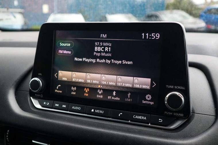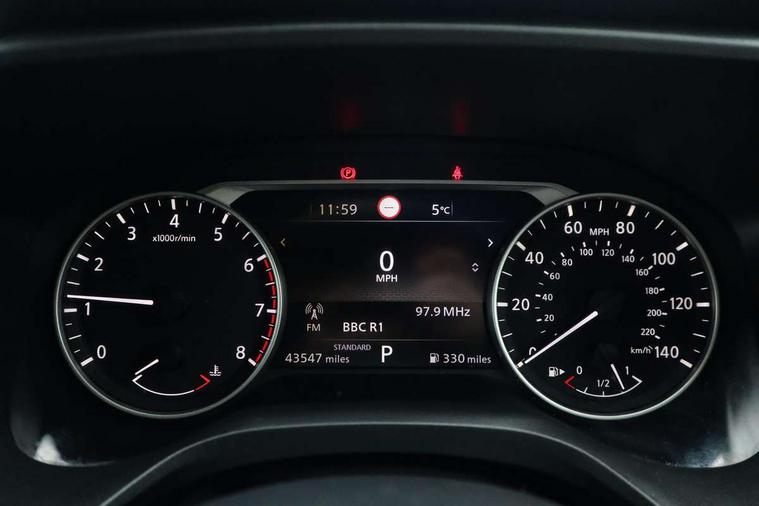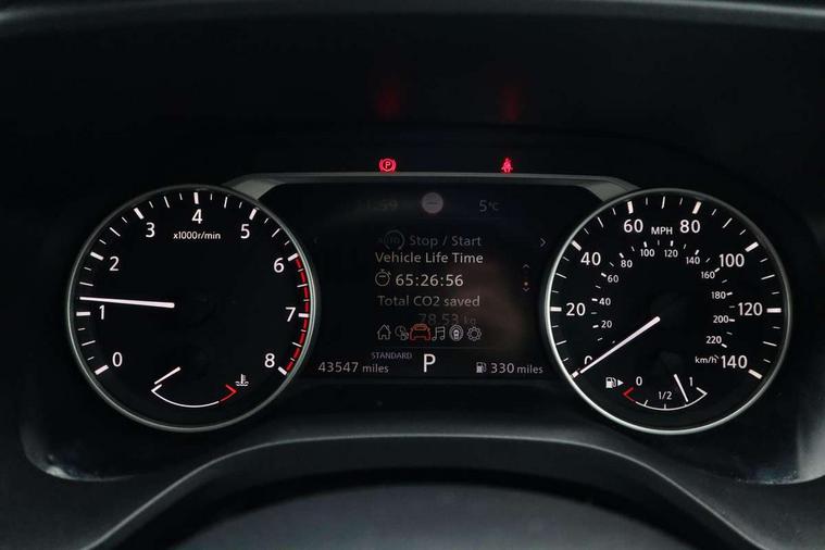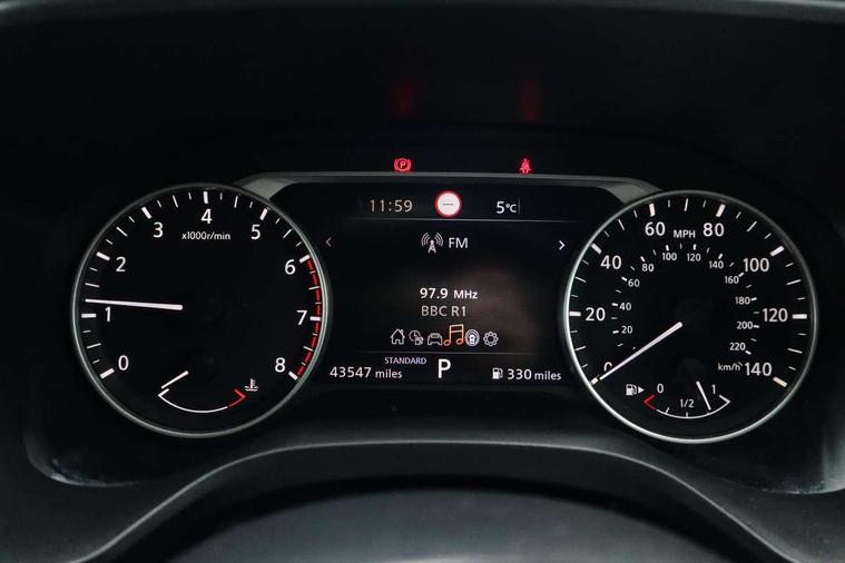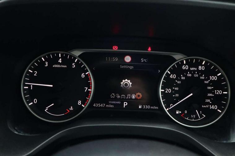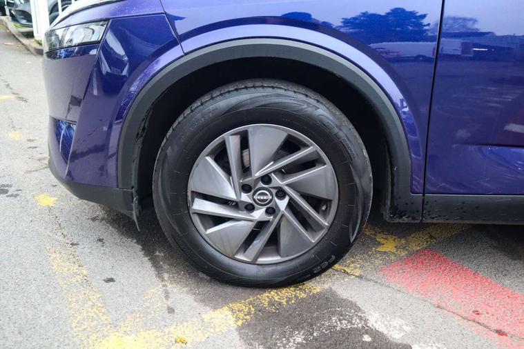 7" High definition full colour TFT screen combimeter, Android auto/Apple CarPlay (Wired), Blind spot warning, Drive modes (sport, normal, eco), Electric speed sensitive power steering, Emergency and breakdown call, Idle stop/start system, Intelligent Cruise control (ICC), Intelligent driver alert system, Intelligent forward collision warning, Intelligent lane intervention, Lane departure prevention, Lane departure warning system, Maximum speed limiter, Nissan connect 8" touchscreen infotainment system, Push button starter, Rear cross traffic alert, Rear parking sensors, Rear view camera, Traffic sign recognition with legal speed adjustment, Trip computer, 6 speakers, AM/FM audio system with DAB, Bluetooth audio streaming, Front USB connections (Type-A and Type-C), Auto dimming rear view mirror, Auto rear wiper when reversing, Automatic hazard signal with emergency stop signal, Body colour mirror caps, Body coloured door handles, Bodyside mouldings, Chrome side window finisher, Door handle with button, Electric auto folding door mirrors, Electrically adjustable and heated door mirrors with LED turn indicator, Follow me home headlights, High beam assist, Intelligent auto headlights, LED 3rd brake light, LED daytime running lights, LED Headlights, LED rear lights, One touch front and rear electric windows with remote opening and closing, Partially body coloured bumpers, Rear reversing light (bulb lighting), Rear roof spoiler, Rear side wing doors, Shark fin antenna, Splash free rain sensing wipers, Three blink turn signal, 12v power socket in dashboard and luggage, 2x Rear coat hooks, 3 bench rear seats in 2nd row, 3 rear headrests, 4 folding assist grip, 6-way manually adjustable driver's seat, 60/40 split folding rear seat bench, Centre console storage tray, Chrome interior door handles, Cloth monoform upholstery, Driver and front passenger sunvisors with illuminated vanity mirrors, Dual zone automatic climate control with pollen filter, Electrically adjustable lumbar support for driver, Front and rear door storage, Front centre console and armrest, Front cupholders x 2, Front door with bottle holders, Glovebox with light, Hard trunk cover, Height adjustable driver's seat, Height adjustable front headrests, Height adjustable passenger seat, Luggage space lighting, Manually adjustable passenger (slide recline + lifter), Multifunction steering wheel, Passenger seat back pocket, Rear armrest with 2 cupholders, Rear door bottle holders, Single front passenger seat, Steering wheel gearshift paddles, Steering wheel switches, Sunglasses holder, Tilt/telescopic adjustable steering wheel, Two rear isofix child seat anchorage points with top tether, 3x3 point rear seatbelt pretensioners + load limiters, ABS with EBD and brake assist, Active brake limited slip, Auto hold function, Child locks on rear doors, Curtain and front side, far side airbags, Driver and passenger airbags, Driver, passenger and 2nd row rear seat belt reminder, Electronic parking brake, Front seatbelt pretensioners + load limiters, Height adjustable front seatbelts, Hill start assist, Intelligent blind spot intervention, Intelligent front emergency braking with pedestrian, cyclist recognition and junction assist, Intelligent rear automatic braking, Tyre pressure monitoring system, Vehicle dynamic control, Capless fuel filler, Engine immobiliser, Intelligent Key, Remote central door locking with deadlocking, Thatcham Cat.1 alarm, Interior instrumental panel A finisher, 17" Alloy wheels, Tyre puncture repair kit,