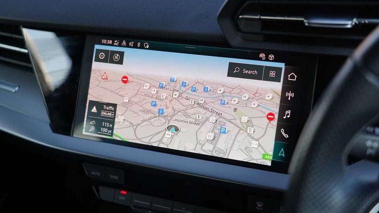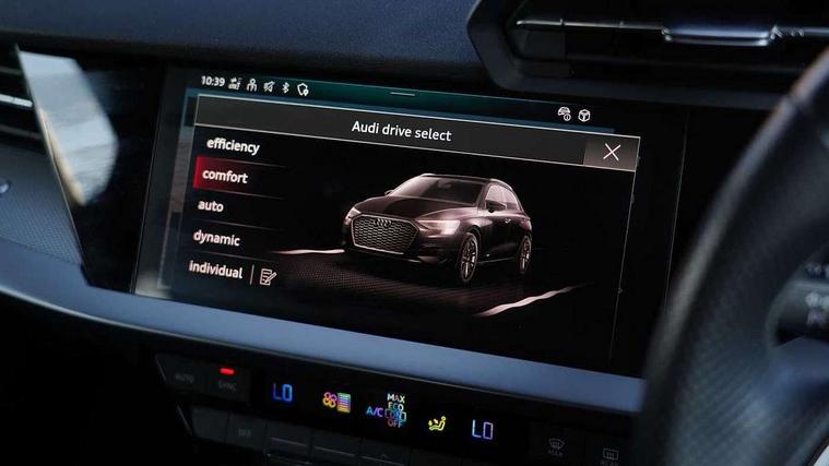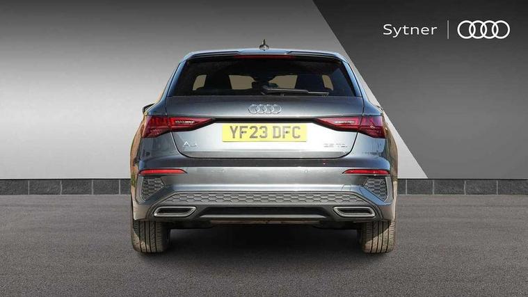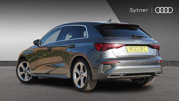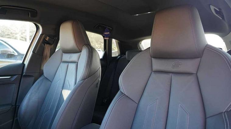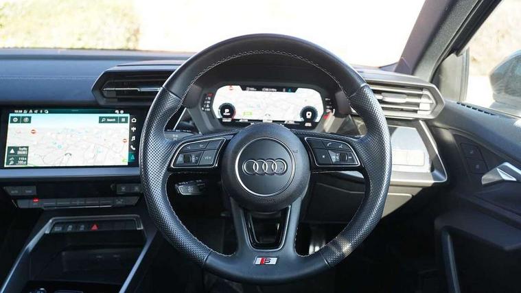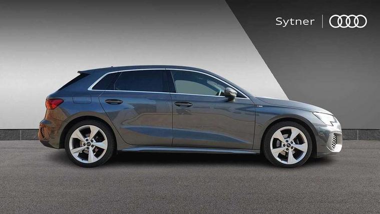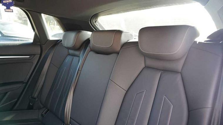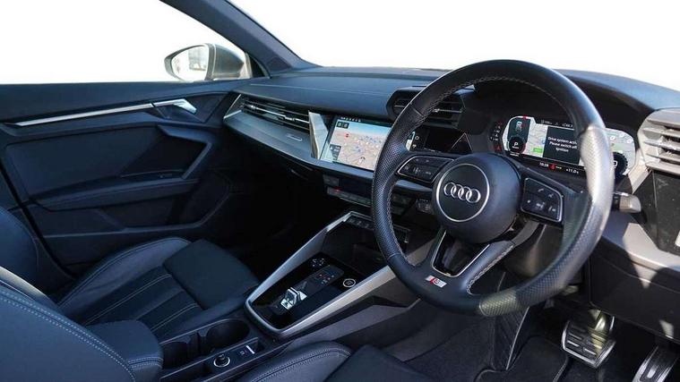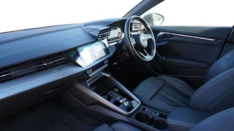 Audi drive select (Auto, Comfort, Dynamic, Efficiency and Individual), Audi smartphone interface, Audi Virtual Cockpit - 10.25" digital and colour instrument cluster, Automatic start/stop system with recuperation, Bluetooth interface, Camera based traffic sign recognition, Collision avoidance assistant, e-Call (emergency call), Electromechanical power speed sensitive steering, Lane departure warning system, MMI Navigation Plus with high resolution 10.1" colour touch screen display, Service indicator, Trip computer, Voice control system with natural language interaction, Sports suspension, 2xUSB-C connection with data and charging functions, 6 passive loudspeakers, DAB Digital radio, 3rd brake light, Acoustic glass windscreen, Aluminium window trim, Auto dimming frameless rear view mirror, Body colour exterior mirrors, Electrically adjustable/heated/folding/auto dimming door mirrors with integrated LED indications + kerb view function for passenger side, Front electric windows, Illuminated aluminium inserts front door sills with S logo, LED daytime running lights, LED headlights with LED rear lights and dynamic rear indicators, Light and rain sensors, Privacy glass - dark tinted rear window, rear door and side windows, Rear electric windows, Rear side air outlets in grained matt black, Rear side wing doors, Rear wiper, S line bumpers, S roof spoiler, 12V socket and storage compartment in front centre console, 3 seat bench in 2nd row, 3 spoke leather multifunction steering wheel with paddle shift, 4 way electrically adjustable lumbar support for driver and front passenger, 60/40 split folding rear seat bench, Black cloth headlining, Dual zone electronic climate control, Front and rear centre armrest in leather, Front and rear headrests, Front/rear floor mats, Height and reach adjustable steering wheel, Interior lighting - glove compartment light and right hand side, Luggage compartment floor covering, Manual boot compartment lid, Manually adjustable front seats, Seat side bolsters, Single front passenger seat, Stainless steel pedals and front footrest in black, Twin leather upholstery with front sports seats S embossed logo, Aluminium interior elements pack - A3 Sportback, LED interior lighting pack - A3 Sportback, S line styling pack - A3 Sportback, 3x3 point rear seat belts, Driver and front passenger airbag with passenger airbag deactivation, Electronic Stabilisation Control (ESC) including ABS, ASR and EDL, First aid kit with warning triangle and 2 safety vests, Front side airbags with head airbags and interaction airbag, Pre-sense front with pedestrian and cyclist detection, Seatbelt monitoring, Tyre pressure loss indicator, Anti theft alarm, Anti-theft wheel bolts, Electronically operated child lock, Immobiliser, Remote control central locking, Dark spectrum aluminium inlays, accent surfaces in the dashboard and centre console in platinum grey silk effect paint finish,