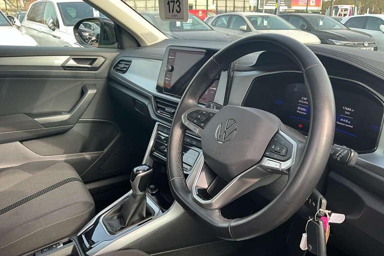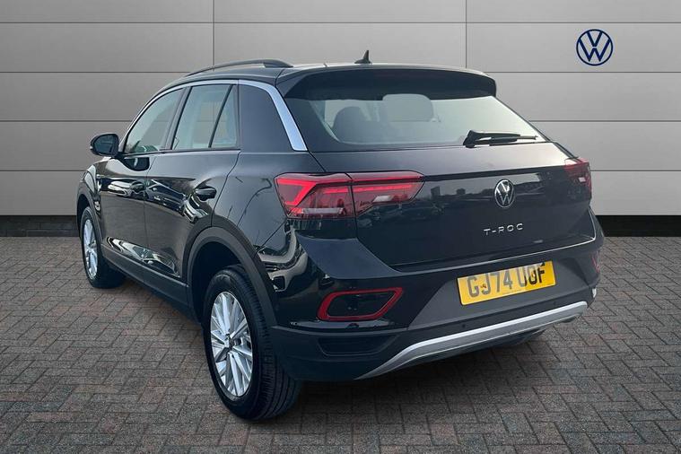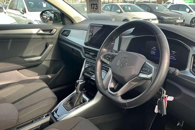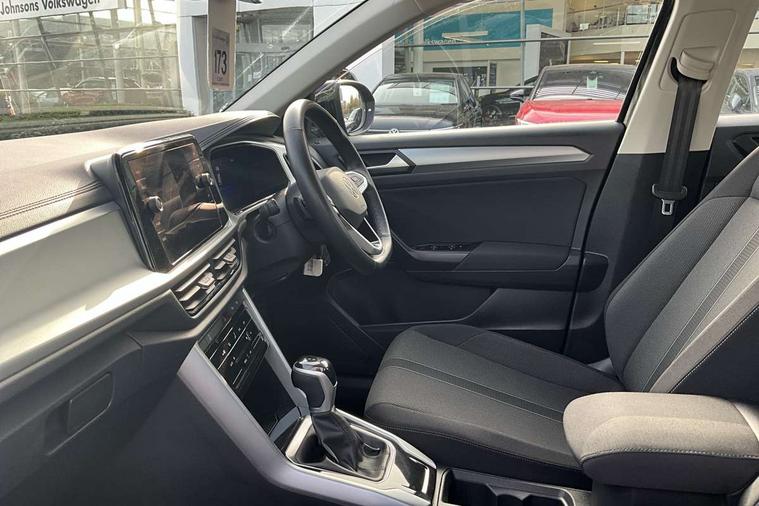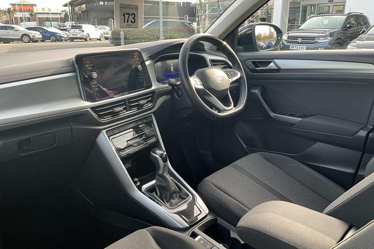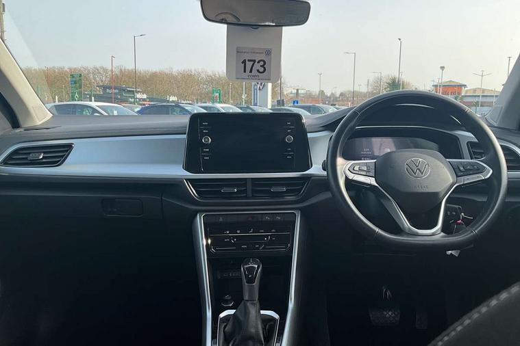 Advanced driver attention and drowsiness monitor, Dynamic road sign display, Emergency call service, Lane keeping system Lane Assist, Mobile phone interface, Modified key software - reduce switch off time for key status change to Long no motion, Online services, Park assist including front and rear parking sensors, Power assisted speed sensitive steering, Service interval indicator, Tailgate/trunk lid release from outside, Think blue trainer driver tips and journey analysis, Warning sound and light for front seatbelts unfastened, Wireless app connect, Wireless Smartphone charger, Battery regeneration during braking, Front shock absorption, Rear shock absorption chassis with increased ride height, Start/stop function with battery regeneration, DAB Digital radio, Diversity antenna for FM reception, Front and rear 6 speakers, Music playback - MP3, WMA and AAC files, Premium USB cable in choice of either Apple or Android smartphone compatibility, SD card slot, Simultaneous pairing of 2 compatible mobile devices, Title and cover art display, We Connect and We Connect Plus functionality, Auto dimming interior rear view mirror, Automatic hazard lights activation under emergency braking, Automatic headlight control with LED separate daytime running lights with coming/leaving home function, Black roof rails, Body coloured bumpers and radiator grille with chrome trim and front fog lamps with chrome bezel, Body coloured exterior mirror housings and door handles, Electrically adjustable and heated door mirrors, Extended roof spoiler, Exterior mirrors aspherical on driver side, convex on front passenger side, External USB type C socket and charging sockets, Front windscreen wiper with intermittent wipe and 4 position delay, Heated rear window, LED 3rd brake light, LED rear combination lamps, LED rear number plate lights, Power windows with comfort operation and circuit breaker, Rain sensor, Rear exhaust tailpipe, Rear fog light on one side and reversing lights on both sides, Rear side wing doors, Rear wash/wipe with intermittent wipe setting, Remote electrically foldable door mirrors, puddle lights and reverse activated passenger's door mirror, 12V power socket in centre console, 3 rear head restraints, 3 seat bench in 2nd row, 4 load lashing points in luggage compartment, Air care climatronic air conditoning system with active combination filter and 2-zone temperature control, Ambient lighting with mirror logo projection, Cloth upholstery, Door and side trim panel in cloth, Drawer under drivers seat, Driver/front passenger seat height adjustment, Front centre armrest, Front comfort sports seats, Front cupholders x 2, Front reading light, Front seat back storage pockets, Glove compartment door with light, Instrument lighting, white adjustable panel illumination, Interior light delay, Isofix child seat preparation, Leather gearshift handle, Load-through provision with cup holder when folded down ('Unsplit rear seat bench, split folding backrest, with centre armrest), Luggage compartment lighting, Lumbar support for driver's and front passengers seat, Non-folding front passenger seat backrest, Single front passenger seat, Storage compartment in left and right luggage area, Storage compartment in rear doors, Storage compartments in driver and front passenger doors, Sunvisors with illuminated vanity mirrors, Variable boot floor, height adjustable and removable, Driver assistance pack without proactive passenger protection - T-Roc Life/Match, 3 point height adj front seatbelts + pretensioners, 3 point seatbelts in outer rear with ECE label, ABS, Child locks on rear doors, City emergency braking and pedestrian monitoring, Driver and front passenger airbag with front passenger airbag deactivation, Driver and front passenger safety-optimised head restraints, Drivers seatbelt reminder, Electronic parking brake, Electronic Stability Control (ESC) inc EDL (Electronic Differential Lock) and ASR (Traction Control), Front and rear passengers curtain airbag system including front side airbags, Front disc brakes, Hill start assist, Predictive pedestrian protection, Rear disc brakes, Two tone horn, Tyre pressure loss indicator, Volkswagen roadside assistance, Alarm with interior protection, Pewter matt decorative inserts for intrument panel, centre console and door panels at the front, Trims for alloy wheels,