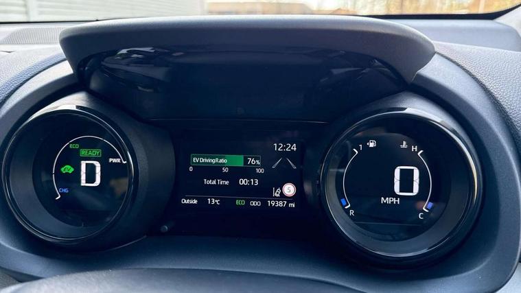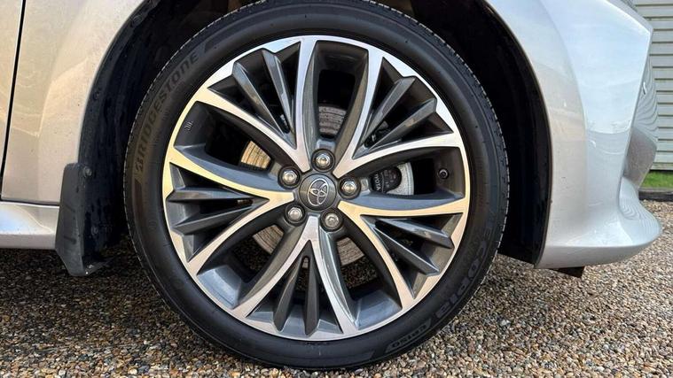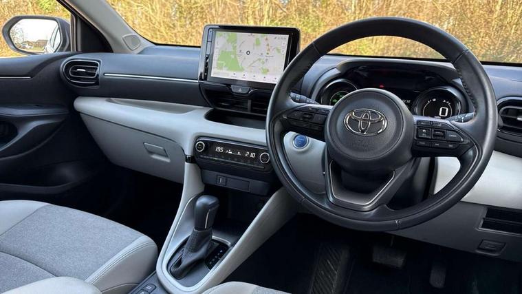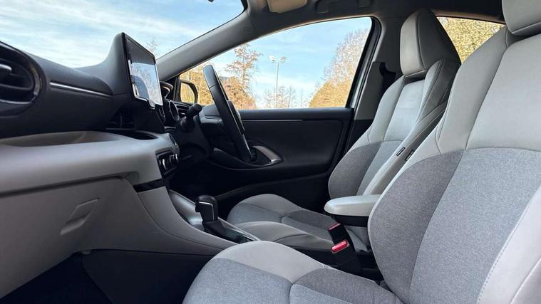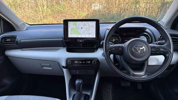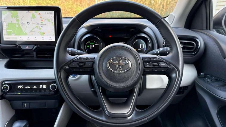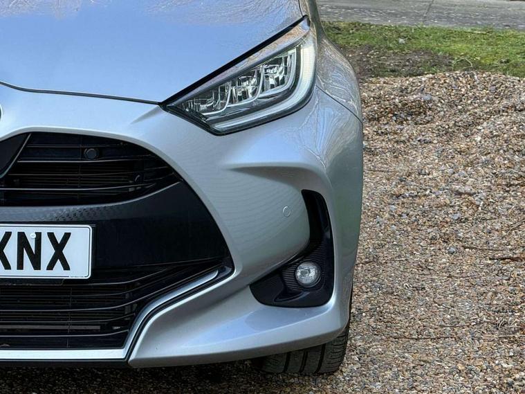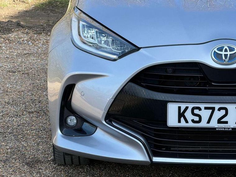 Adaptive cruise control, Adjustable speed limit with speed warning, Blind spot monitoring, Bluetooth connectivity, Colour binocular inspired displays with digital speedometer, E-call, Electric power steering, Hybrid energy display, Multi information display switches on steering wheel, Reversing camera, Smartphone integration with Apple CarPlay and Android auto, Tailgate, Touch 2 navigation system, Voice recognition, Vehicle Stability Control (VSC), 6 speakers, 9" HD multimedia display touch screen with Toyota smart connect, USB connection, Acoustic windscreen glass, Auto windscreen wipers, Automatic headlights, Automatically retractable door mirrors, Body coloured door mirrors, Electric adjustable heated door mirrors, Follow me home headlights, Front auto power windows with anti jam protection, Full LED rear lights, LED daytime running lights, LED front fog lights, LED front light guide, LED Headlights, LED High mounted stop lamp, LED Indicators, LED rear light guide, Manual headlight levelling, Painted chequered front grille, Rain sensor, Rear auto power windows with anti jam protection, Rear privacy glass, Rear side wing doors, Rear spoiler, Rear wiper, Satin lower front grille, Shark fin antenna, Turning signal integrated indicators in door mirrors, Variable front intermittent wipers, 3 adjustable rear headrests, 3 spoke leather steering wheel, 60/40 split folding rear seat, Active headrests, Adjustable boot height, Coat hooks in rear grab handles, Cup holders (2 front & door), Data Communication Module (DCM) connected services, Dual zone automatic air conditioning, Fabric seat with partial synthetic leather upholstery, Front armrest, Front sport seats, Glovebox, Grey roof lining, Height adjustable driver's seat, Height adjustable passenger seat, Isofix seat fixing, Leather gearshift, Map pockets on the backs of the front seats, Pollen filter, Shopping bag hooks, Single front passenger seat, Tilt/telescopic steering column, Parking pack - Yaris, 3 point seatbelts on all rear seats, ABS+EBD+Brake assist, Electronic parking brake, Emergency brake light system (EBS), Front passenger airbag on/off switch, Front seatbelt reminder, Hill start assist control (HAC), Rear child proof door locks, Rear seat belt reminder, Supplemental Restraint System (SRS) 8 airbags: Driver & passenger's airbags, dual side curtain airbags, side impact airbags, front centre airbag, Toyota Safety Sense 2, Precollison + Night time Pedestrian & Cyclist Detection, Lane Trace Assist, Auto High Beam, Intelligent ACC & Road Sign Assist, Tyre pressure warning system, 2x Master key, Alarm/immobiliser, Keyless smart entry with push button start, Remote AC via MyT, Remote locking via MyT, Remote powered central double locking doors, Satin chrome interior styling, Soft touch instrument panel, Space saver spare wheel,