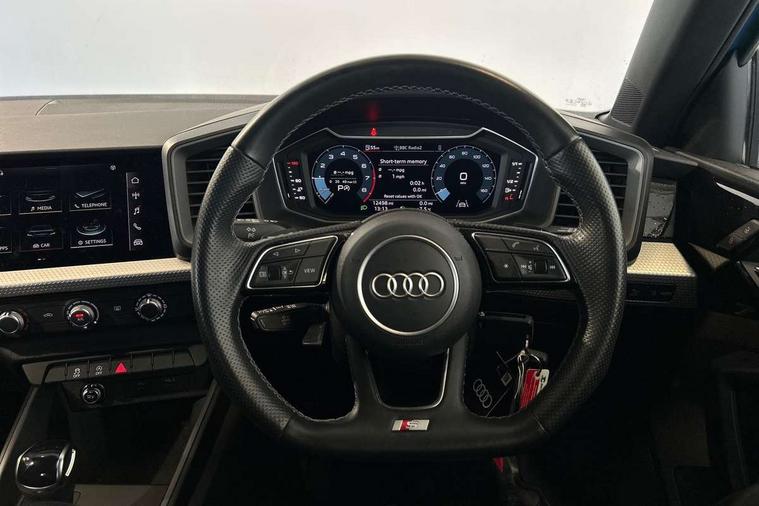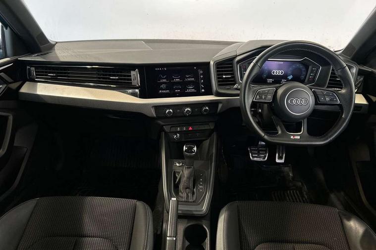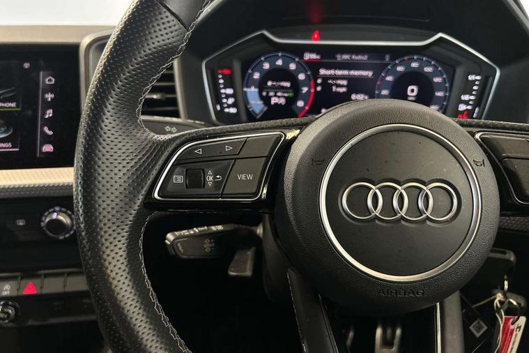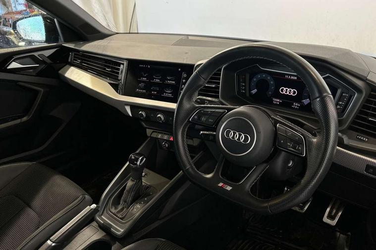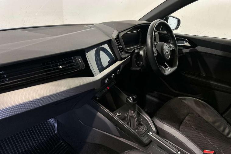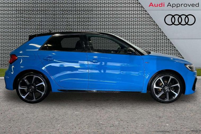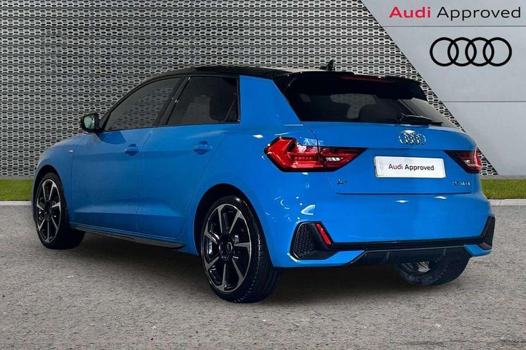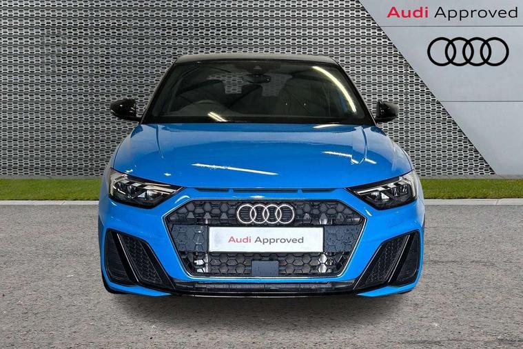 10.25" Digital instrument cluster display classis style instrument dials + speed, odometer, time, outside temperature, telephone menu + fuel level warning, Audi connect safety emergency and service including E-call, Audi smartphone interface with connect compatible smartphone via USB directly MMI display + Nav, music, third party apps controlled via MMI controller, Automatic start/stop system, Bluetooth interface, Cruise control, Driver's information system, Electromechanical power steering, Emergency services call system, Lane departure warning system, Service interval indicator, Speed limiter, Voice control system, Washer fluid level indicator, Sports suspension, 1 x SDXC card reader, 2 x USB type C connection points, DAB Digital radio, MMI radio plus with 8.8" colour MMI display screen and MMI touch, Auto dimming rear view mirror, Black door mirrors, Black side skirts, Body coloured bumpers, Door sill trims with aluminium inlays and logo, Electric front and rear windows, Electrically adjustable, heated, folding door mirrors with integrated LED side indicator, Front side air inlets in grained matt black and C frame in titanium black, Heat insulating glass windscreen and side windows, Heated rear windscreen, High level LED brake light, LED headlights with LED rear lights + dynamic rear indicators + headlight adjustment and high beam, turning light + LED daytime running lights, Radiator protective grille frame in matt aluminium silver, Rain and light sensors, Rear diffuser strip in matt titanium black, Rear fog lights, Rear side wing doors, Rear wing door, Rear wiper, Side front spoiler lips in grained matt black, 12V socket in centre console with two cup holders, 3 rear seats with headrests, 3 seat bench in 2nd row, 3 spoke flat bottomed multi-function plus leather steering wheel with S badging, grips in preforated leather, contrast stitching and paddle shift, 40:60 Split folding rear seat or folded fully, Black cloth headlining, Driver and passenger seat with manual height adjust with forward and backwards adjustment, Front and rear black floor mats with contrast stitching in fine silver, Front head restraints, Front passenger seat, Height and reach adjustable steering wheel, ISOFIX child seat mounting for front passenger and outer rear seats including top tether attachment point of outer rear seats, Leather gear knob with aluminium trim, Luggage compartment light with front and rear reading lights, Manually adjustable lumbar support in front seats, Stainless steel pedals, Black styling pack - A1 Sportback Black Edition, LED interior lighting pack - A1, Luggage compartment pack - A1, 3x3 point rear seatbelts, Audi pre-sense front with pedestrain and cyclist recognition, Brake assist function, Driver and front passenger airbag with front side and head airbags, Electronic Stability Control including ABS, EBD, ASR and EDL, Front passenger airbag deactivation switch, Hill hold assist, Manual rear child locks, Seatbelt height adjustment for front seats, Seatbelt monitoring, Tyre pressure warning light, Warning triangle and first aid kit, Anti theft alarm, Anti theft wheel bolts and loose wheel warning, Immobiliser, Remote central locking with 2 foldaway keys, Aluminium trim for control switches, air vents and digital instrument cluster, Silver grey inlays polygon structure in diamond paint finish, Structured grey accent areas including air vents, door handle recesses and centre console in quartz paint finish, 18" 7 spoke rotor design alloy wheels in gloss anthracite black, diamond cut finish,