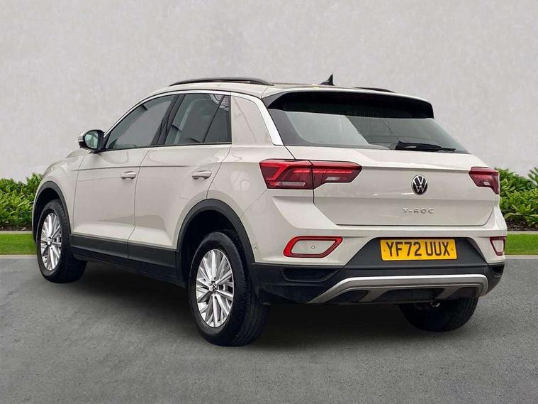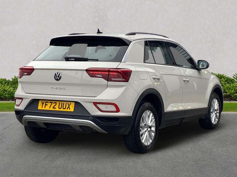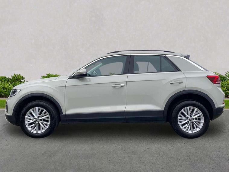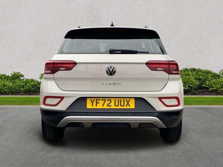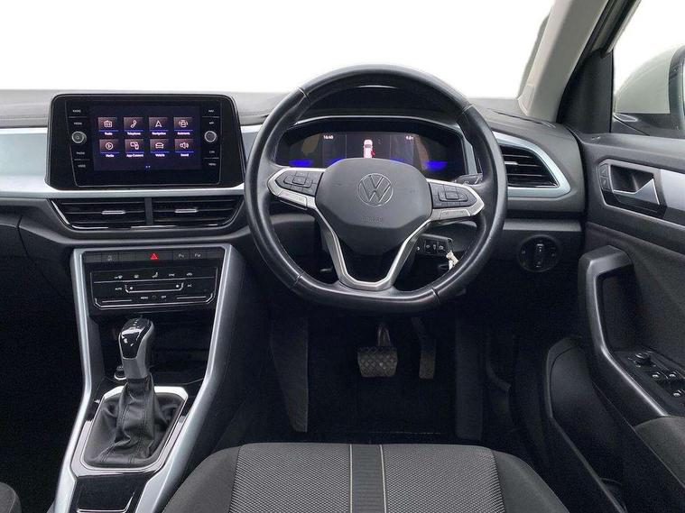 Bluetooth mobile phone interface, Driver alert system with fatigue detection, Driver tips and journey analysis, Emergency call service, Lane keeping system Lane Assist, Modified key software - reduce switch off time for key status change to Long no motion, Online services, Park assist including front and rear parking sensors, Power assisted speed sensitive steering, Service interval indicator, Tailgate/trunk lid release from outside, Think blue trainer driver tips and journey analysis, Warning sound and light for front seatbelts unfastened, Wireless app connect, Battery regeneration during braking, Front shock absorption, Rear shock absorption chassis with increased ride height, Start/stop function with battery regeneration, DAB Digital radio, Diversity antenna for FM reception, Front and rear 6 speakers, Music playback - MP3, WMA and AAC files, Premium USB cable in choice of either Apple or Android smartphone compatibility, SD card slot, Simultaneous pairing of 2 compatible mobile devices, Title and cover art display, We Connect and We Connect Plus functionality, 3rd brake light, Auto dimming interior rear view mirror, Automatic hazard lights activation under emergency braking, Automatic headlight control with LED separate daytime running lights with coming/leaving home function, Black roof rails, Body coloured bumpers and radiator grille with chrome trim and front fog lamps with chrome bezel, Body coloured exterior mirror housings and door handles, Extended roof spoiler, Exterior mirrors aspherical on driver side, convex on front passenger side, External USB type C socket and charging sockets, Front windscreen wiper with intermittent wipe and 4 position delay, Heated rear window, LED Headlights, LED rear combination lamps, LED rear number plate lights, LED tail lamp rear comination lamps, Power windows with comfort operation and circuit breaker, Rain sensor, Rear exhaust tailpipe, Rear fog light on one side and reversing lights on both sides, Rear side wing doors, Rear wash/wipe with intermittent wipe setting, Remote electrically foldable door mirrors, puddle lights and reverse activated passenger's door mirror, 12V power socket in centre console, 3 rear head restraints, 3 seat bench in 2nd row, 4 load lashing points in luggage compartment, Air care climatronic air conditoning system with active combination filter and 2-zone temperature control, Ambient lighting with mirror logo projection, Cloth upholstery, Door and side trim panel in cloth, Drawer under drivers seat, Driver/front passenger seat height adjustment, Front centre armrest, Front comfort sports seats, Front cupholders x 2, Front reading light, Instrument lighting, white adjustable panel illumination, Interior light delay, Isofix child seat preparation, Leather gearshift handle, Load-through provision with cup holder when folded down ('Unsplit rear seat bench, split folding backrest, with centre armrest), Luggage compartment lighting, Lumbar support for driver's and front passengers seat, Non-folding front passenger seat backrest, Single front passenger seat, Storage compartment in left and right luggage area, Storage compartment in rear doors, Storage compartments in driver and front passenger doors, Sunvisors with illuminated vanity mirrors, Variable boot floor, height adjustable and removable, Driver assistance pack without proactive passenger protection - T-Roc, 3 point height adj front seatbelts + pretensioners, 3 point seatbelts in outer rear with ECE label, ABS, Child locks on rear doors, Driver and front passenger airbag with front passenger airbag deactivation, Driver and front passenger safety-optimised head restraints, Drivers seatbelt reminder, Electronic parking brake, Electronic Stability Control (ESC) inc EDL (Electronic Differential Lock) and ASR (Traction Control), Front and rear passengers curtain airbag system including front side airbags, Front assist with city emergency braking and pedestrian monitoring, Front disc brakes, Front seat side impact airbags, Hill start assist, Predictive pedestrian protection, Rear disc brakes, Single tone horn, Tyre pressure loss indicator, Volkswagen roadside assistance, Alarm with interior protection, Anti-theft alarm system with interior monitoring, backup horn, and towing protection, Remote central locking with SAFELOCK, radio remote control with 2 remote control folding keys, Pewter matt decorative inserts for intrument panel, centre console and door panels at the front, Trims for alloy wheels,
