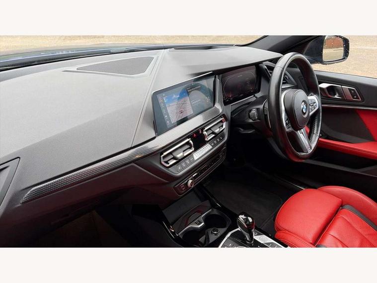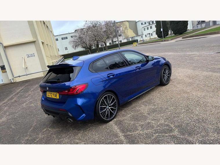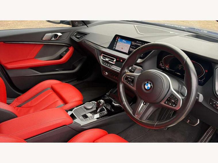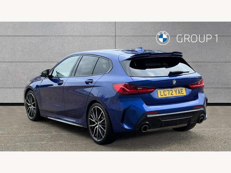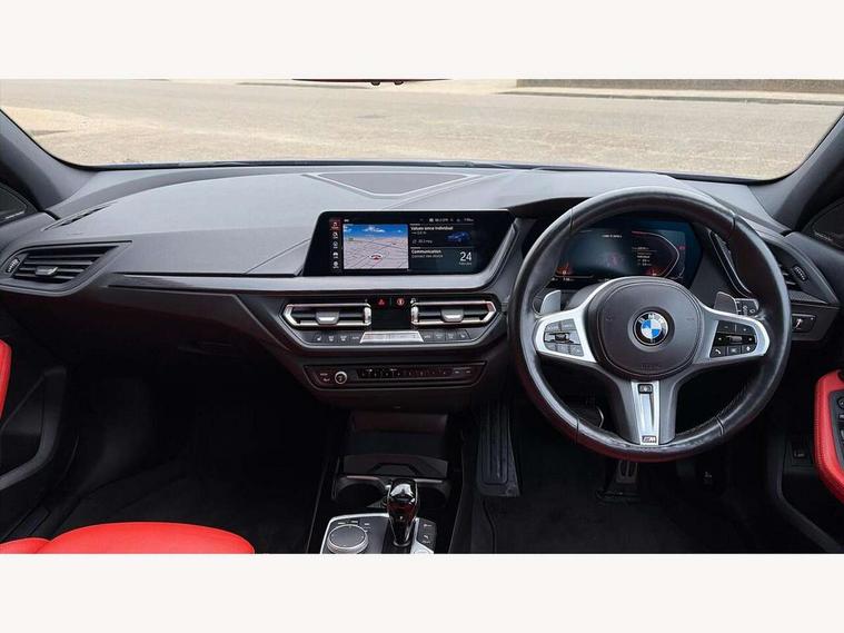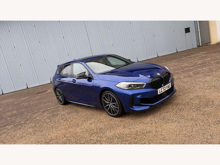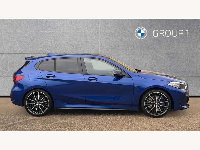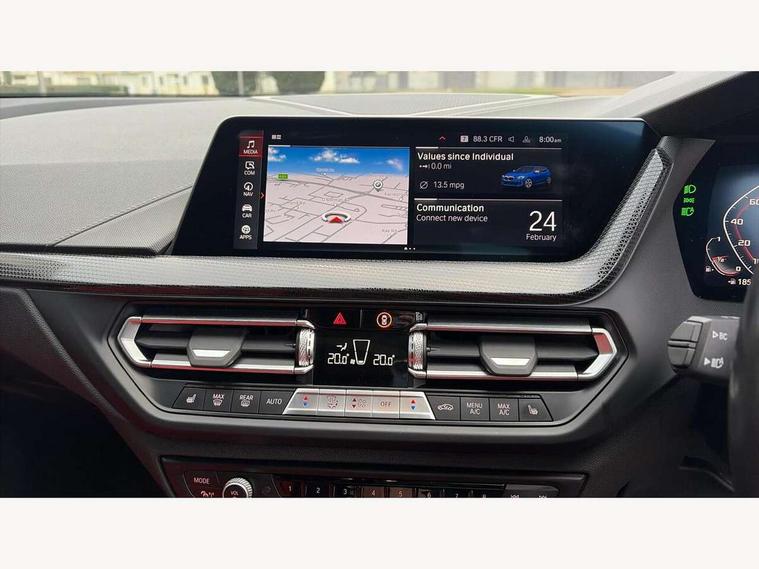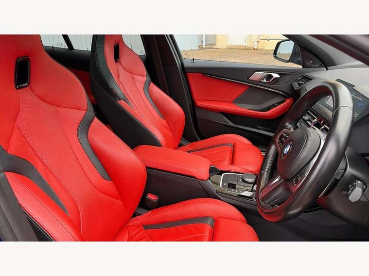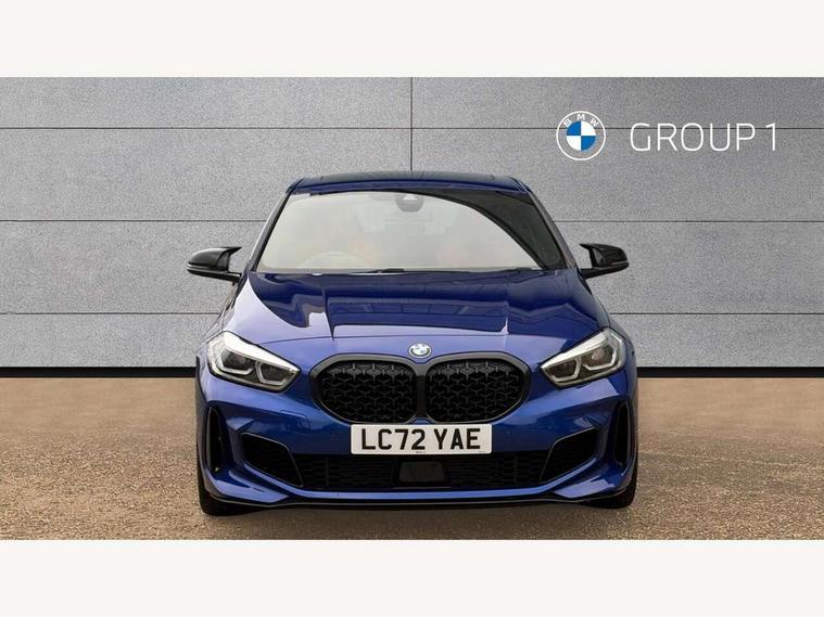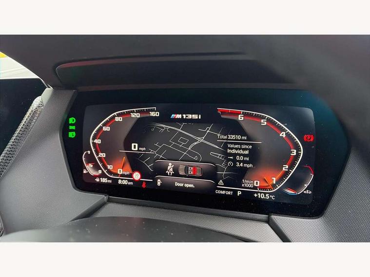 Active guard plus, Attentiveness assist, BMW ConnectedDrive online services, BMW Teleservices, Check Control warning system for monitoring of lights and door/luggage compartment open warning, Cruise control with brake assist, Eco pro mode, Electric power steering, Electro hydraulically controlled multi-plate clutch transfers drive to rear axle and with power take-off device located on the front differential., Energy efficient operating strategy, Front axle single joint with specific axle kinematics to minimise drive influences on steering + provide increased rigidity agile driving behaviour, Gearshift time display in manual mode, Integrated owners handbook, Lane departure warning system, M Sports steering with M135i xDrive specific settings, Oil sensor for level and grade, On board computer, Optimum shift indicator, Personal Profile, Pull away assistant, Rigidly mounted rear subframe - Multi link construction with separate spring / damper configuration and excellent driving characteristics, Speed limit Info including no-overtaking indicator, Speed limiter, Sporty fast gear shifting in sport mode, Aluminium lightweight construction, Anti roll bar front and rear, Balancer shaft, Double VANOS, Drive Performance Control, Eight speed sport automatic transmission with gearshift paddle switches, Electronic differential lock, Electronic selector lever, Engine cover with M performance designation, High precision injection, Larger fuel tank capacity (50 litres), Launch control, M135i specific heavily de-throttled engine intake air guide, M135i specific high-performance cooling package, M135i specific larger turbocharger with integrated divert-air valve, Petrol Particulate Filter, Twin tube gas filled shock absorbers with degressive characteristic curve, VALVETRONIC engine management, Variable, stepless and infinitely adjustable distribution of drive torque between the front and rear axles, xDrive intelligent all wheel drive with M135i specific reinforced components, DAB Digital radio, Auto dimming rear view mirror, Automatic headlight beam throw control, Automatic windscreen wipers and automatic headlight, Body colour door handles, Body colour roof trims, Cerium grey exterior mirror caps, Direction indicator side lights in exterior mirrors, Exhaust tailpipe, Cerium Grey with bevelled finish - twin, round 100mm, left and right split, Fading support, Folding side mirrors with auto dimming/folding wing mirrors with auto dimming, Follow me home headlights, Front and rear bumper system with replaceable deformation elements, Front and rear electric windows with open and close fingertip control, anti trap facility and comfort closing, Front door sill finishers with M135i designation, Green tinted heat protection glazing, Heated, electrically adjustable exterior mirror aspheric on driver side, convex on passenger side, High gloss shadowline window frame, Recess cover mirror frames and B/C pillar embelisher trim, High level third brake light, Integrated front windscreen with washer jets, Kidney grille frame in Cerium Grey with Mesh design, LED daytime running lights, LED eyebrow turn indicators, LED front fog lights, Lightweight engineering, M logo designation side in cerium grey, M Performance exhaust system with valve control and minimised exhaust back pressure, M Performance specific setup, M Sport spoiler, Matt black air guide grilles, Matt black wheel arch trim, Model designation on electric bootlid includes xDrive designation for M135i xDrive, Nearside reverse light in rear light cluster, Preparation for high beam assistant, Rear fog lights, Rear side wing doors, Rear window wiper, Reinforced crank drive, new pistons and adapted con rods, Shark fin antenna, Trailer stabilisation logic, Visible VIN plate, Welcome lighting, 12V power socket in front centre console with blanking plug, 3 rear seat head restraints, 3 seat bench in 2nd row, 3 spoke sports leather steering wheel with black leather and stitching, pearl chrome decorative finish, specific M Badge, Anthracite headlining, Black boot net with lashing eyes, Cargo function on 2nd seat row, Child seat ISOFIX attachment for two outer rear seats and front passenger seat with anchorage points, Conditioned based service, Driver and front passenger seat heating, Folding rear clothes hook, Four grab handles integrated in roof lining, Front and rear door pockets with bottle holders, Front and rear side armrest integrated into door trim, Front armrest, Front integrated head restraints, Front M sports seats, Glove compartment, Luggage compartment for bag hooks on left and right, foldable luggage compartment liner and four lashing eyelets, Manual adjust steering wheel, Multi-function controls for steering wheel, Single front passenger seat, Storage compartment in centre console, Sun visors with vanity mirrors and insert tab, Two front centre console cupholders, Two zone automatic air conditioning, Velour floor mats, Additional interior lighting pack - 1 Series M135i, BMW live cockpit professional pack- 1 Series, Connected pack professional - 1 Series, Interior lights pack - 1 Series, M Sport exterior styling aerodynamics pack - 1 Series 135i, 2 tone horn, 3 point seatbelts on all seats, front pyrotechnic belt tensioners, stopper and belt force limiters, rear coded belt buckles, Airbags - Front driver/passenger, front and rear curtain head protection, front side, manual deactivation of front passenger airbag, Anti lock braking system (ABS) with brake assist, BMW emergency call, Brake drying, Braking readiness, Child proof locking system in rear door, City braking function, Comfort modes, Cornering brake control, Crash sensor activating central locking release, hazard warning lights, fuel cut off, interior lighting + activation of safety battery terminal clamp, Driver and front passenger seat belt security check, Dynamic stability control + (DSC+), Dynamic Traction Control - DTC, Electrically operated hand brake including automatic hold function, Front and rear