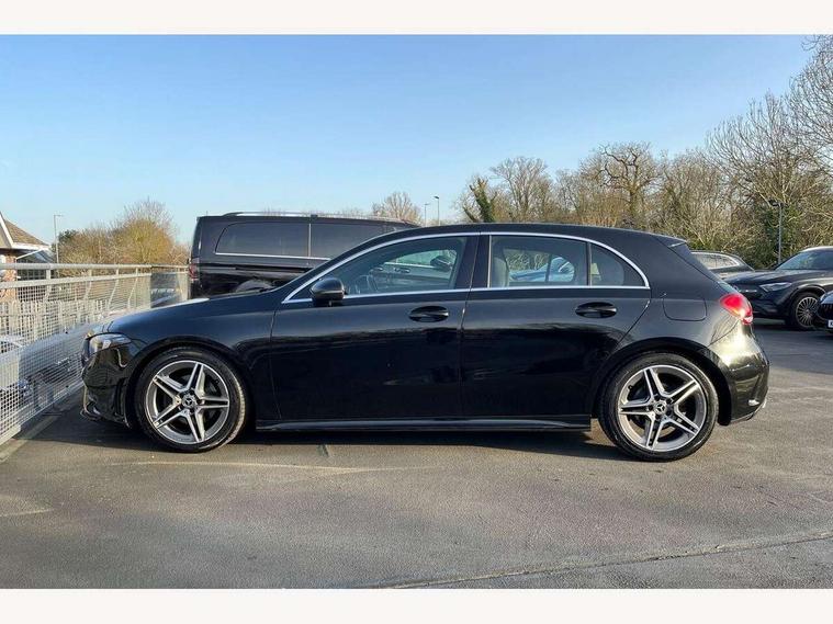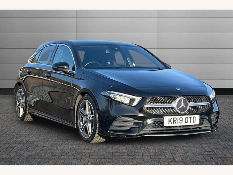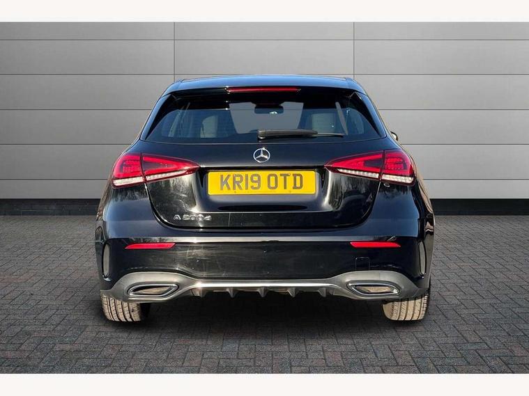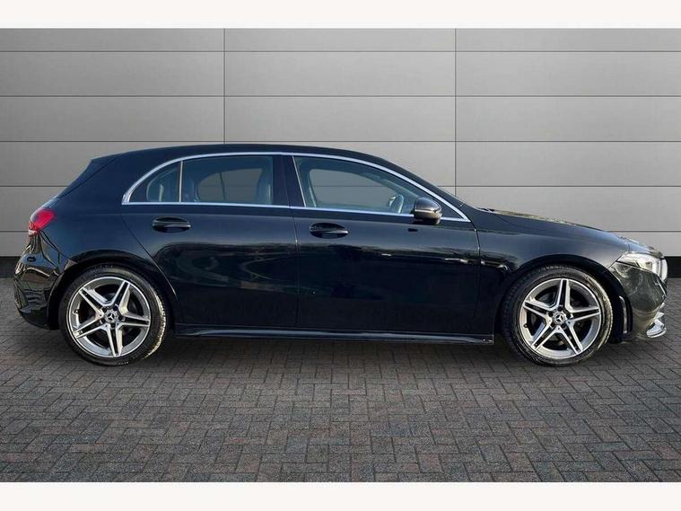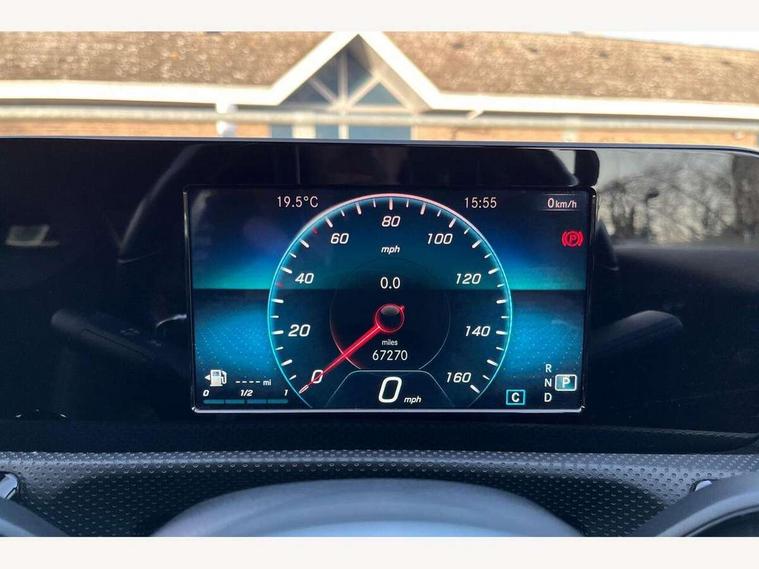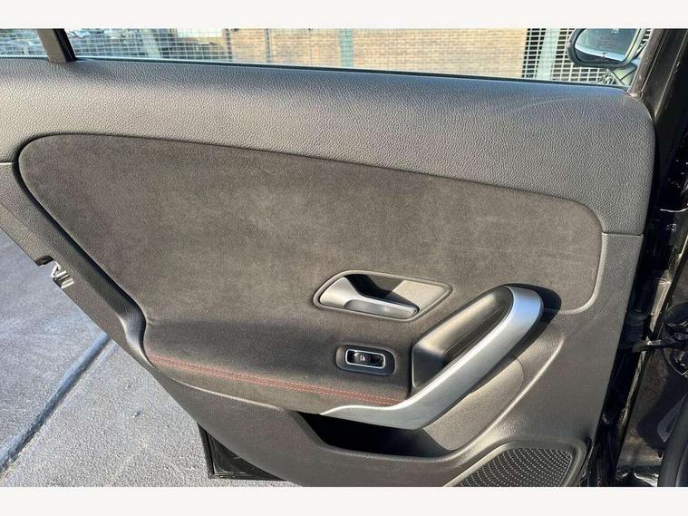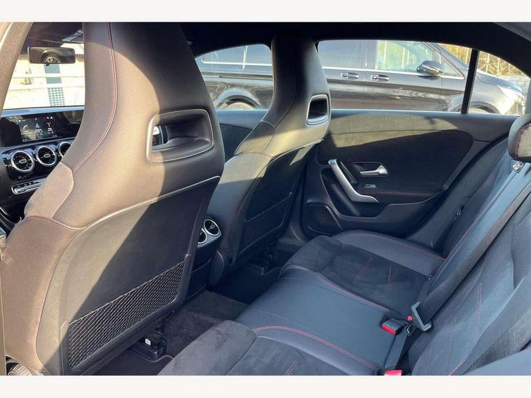 180 degree rear view camera with parking guidelines, 7" colour screen in instrument panel, 7" touchscreen media display, Active lane keep assist, Attention assist, Brake pad wear indicator warning light, Cruise control + speed limiter, Direct steering, Direction indicators with lane change function, DYNAMIC SELECT with a choice of driving modes (ECO, Comfort, Sport, Sport+ and Individual), Fluid level warning indicator for fuel, oil, coolant and washer fluid, Hard-disk navigation, Lamp failure indicator, Mercedes me connect including emergency call system, accident recovery, breakdown and maintenance management, Outside temperature gauge, Radio aerial integrated into roof spoiler, Service indicator (ASSYST), Speed sensitive power steering, Stop/start system, Trip computer, Voice activation, Lowered comfort suspension, DAB Digital radio, Dual bluetooth interface, 2 USB ports (type C), MBUX multimedia system with DAB digital radio and touchpad including satellite navigation, Adaptive brake lights, AMG front, rear apron and side skirts, Blue tinted glass, Body colour bumpers, Body colour door handles, Body colour side skirt, Body coloured door mirrors, Chrome beltline trim, Diamond radiator grille with chrome pins and silver louvre + chrome insert, Electric adjustable and heated door mirrors with integrated LED side indicators, Electric front windows, Electric rear windows, Exhaust system - Twin trapezoidal tailpipes in polished stainless steel, Headlamp assist automatic headlamp activation, Heated glass rear windscreen + timer control, LED high performance headlamps with integrated LED daytime running lights, LED tail lamp, LED third brake light, Rain sensor windscreen wipers, Rear fog lights, Rear wiper, 12V socket, 3 Spoke flat bottom leather multi function steering wheel with perforated leather in grip area, 40:20:40 split folding rear seats, Air vents surround and cruciform nozzle in silver chrome, AMG floor mats with red stitching, Artico man-made leather/Microfibre Dinamica upholstery with red contrast stitching, Auto Mercedes-Benz child seat recognition sensor, Black roof lining, Brushed stainless steel sports pedals with rubber studs, Controller on centre console with chrome surround, Cup holder and stowage compartment lighting, Front centre armrest with storage compartment, Front door sills with Mercedes Benz lettering, Front doors with ambient and signal light, Front footwell lights, Front reading lamps, Front seat backs luggage nets, Front seat cushion length adjustment, Front signal exit lamp, Front vanity lights, Gearshift paddles on steering wheel, Handle recess/closing light, Height/reach adjustable steering column, Illuminated glovebox, ISOFIX Child seat top tethers and anchor fixings, Load securing rings in luggage compartment, Luggage compartment cover, Manual height adjustable front seats, Oddments tray lighting, Rear head restraints, Rear Reading Lamps, Seat occupancy sensor for front passenger seat, Sports seats with integrated headrests, Storage compartment under load area floor, Sunvisors with illuminated vanity mirrors, Touchpad, Touchpad illumination, Twin front cupholders, Two zone thermotronic luxury automatic climate control, Seat comfort pack - A Class, 3 rear 3 point seatbelts, ABS with Brake Assist, Active bonnet, Active brake assist includes forward collision warning system with autonomous braking, Adaptive brake assist with hold function and hill start assist, Black seatbelts, Brake calipers with Mercedes-Benz lettering + perforated brake discs, Childproof locks manually operated for rear doors and electrically operated for rear power windows, Crash responsive emergency lighting, Driver and passenger head and side airbags, Drivers knee airbag, Dual stage driver/passenger airbags, Electronic parking brake, ESP curve dynamic assist, ESP with ASR, Front and rear seatbelt reminder, Tyre pressure monitoring system, Warning triangle and first aid kit, Window airbags, Alarm system/interior protection/immobiliser, Keyless Go, Remote central locking and crash sensor with emergency opening function, 18" AMG 5 twin spoke light alloy wheels in titanium grey with highsheen finish, Tirefit sealant kit,