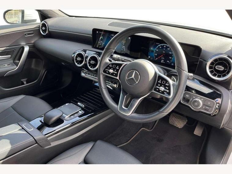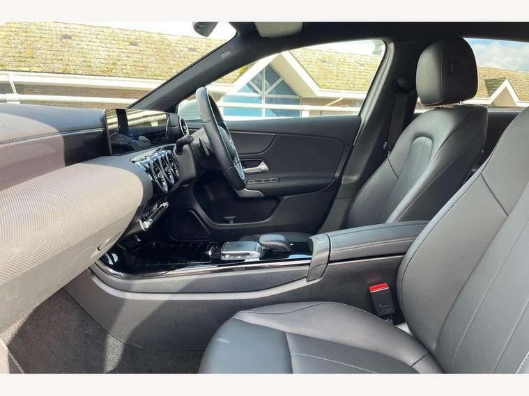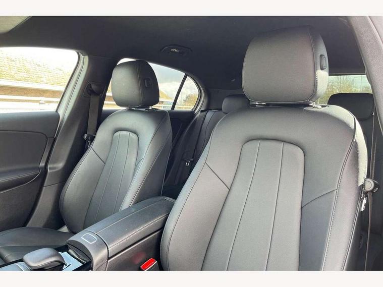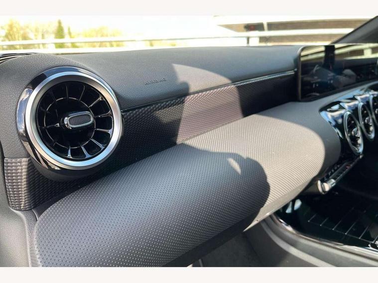 10.25" media display, 180 degree rear view camera with parking guidelines, 7" colour screen in instrument panel, Active parking assist with visual and audible warning of detected obstacles, Attention assist, Brake pad wear indicator warning light, Car wash mode, Cruise control + speed limiter, Direct steering, Dual bluetooth interfaces, DYNAMIC SELECT with a choice of driving modes (ECO, Comfort, Sport and Individual), ECO start/stop function, Fluid level warning indicator for fuel, oil, coolant and washer fluid, Hard-disk navigation, Hey Mercedes Voice activation, Lamp failure indicator, Lane keeping system, Mercedes me connect including emergency call system, accident recovery, breakdown and maintenance management, Mercedes me remote services, Outside temperature gauge, Owners manual in English, Pre-installation for private car sharing, Preinstallation for Mercedes Benz link, Service indicator (ASSYST), Smartphone integration with Apple CarPlay and Android auto, Speed sensitive power steering, Trip computer, Ultrasonic sensors positioned in the front and rear bumpers, Lowered comfort suspension, Rear axle torsion beam, 2 USB ports (type C) in rear stowage compartment and one in front of center console, 6 speakers, DAB Digital radio, MBUX multimedia system with DAB digital radio and touchpad including satellite navigation, Mercedes-Benz sound system - 100W, 4 Electric Front and Rear windows, Adaptive brake lights, Automatic headlights, Black weather strip, Body colour bumpers, Body colour door handles, Body colour side skirt, Body coloured door mirrors, Chrome beltline trim, Diamond radiator grille with black pins with one louvre in silver + chrome insert, Electric adjustable and heated door mirrors with integrated LED side indicators, Exhaust system - Twin visible tailpipes in polished stainless steel, Headlamp assist automatic headlamp activation, Heated glass rear windscreen + timer control, LED High level third brake light, LED high performance headlamps with integrated LED daytime running lights, LED tail lamp, Privacy glass, Radio aerial, Rain sensing windscreen wipers with two sensitivity settings, Rear fog lights, Rear side wing doors, Rear wiper, Window line trim strip in chrome, 3 seat bench in 2nd row, 3 Spoke leather multi function steering wheel, 40:20:40 split folding rear seats, Artico man-made leather upholstery, Auto Mercedes-Benz child seat recognition sensor, Black air vents with surround in silver chrome, Black roof lining, Controller on centre console with chrome surround, Front centre armrest with storage compartment, Front comfort seats with adjustable head restraints, Front door sills with Mercedes Benz lettering, Front seat backs luggage nets, Front seat cushion length adjustment, Gearshift paddles on steering wheel, Heated front seats, Height/reach adjustable steering column, Interior mirror with reading lamps in black and frameless, Manual height adjustable front seats, Rear head restraints, Seat occupancy sensor for front passenger seat, Single front passenger seat, Stowage compartment in centre console with retractable cover, Sunvisors with illuminated vanity mirrors, Touchpad on center console, Twin front cupholders, Two zone thermotronic luxury automatic climate control, Velour floor mats, Light and sight pack - A Class, Mirror package - A Class, Seat comfort pack - A Class, 3 rear 3 point seatbelts, ABS with Brake Assist, Active bonnet, Active brake assist includes forward collision warning system with autonomous braking, Adaptive brake assist with hold function and hill start assist, Black seatbelts, Childproof locks manually operated for rear doors and electrically operated for rear power windows, Crash responsive emergency lighting, Driver and passenger head and side airbags, Drivers knee airbag, Dual stage driver/passenger airbags, Electronic parking brake, ESP curve dynamic assist, ESP with ASR, Front and rear seatbelt reminder, ISOFIX and top tether child seat fixing points in two outer rear seats, Tyre pressure monitoring system, Warning triangle and first aid kit, Window airbags, Alarm system/interior protection/immobiliser, Keyless Go, Remote central locking and crash sensor with emergency opening function, Urban guard vehicle protection system with immobiliser and interior protection, Dark carbon fibre interior trim, 18" multi spoke light alloy wheels painted in himalayas grey with a high sheen finish, Summer tyres, Tirefit sealant kit,