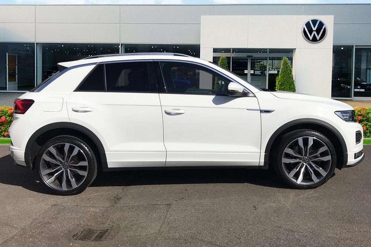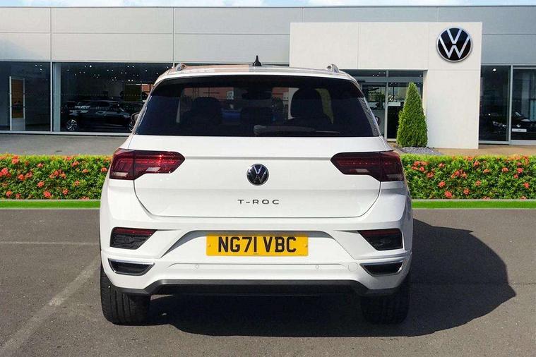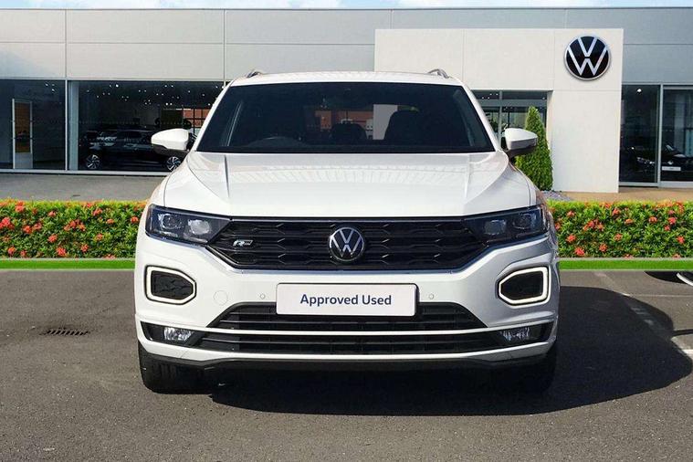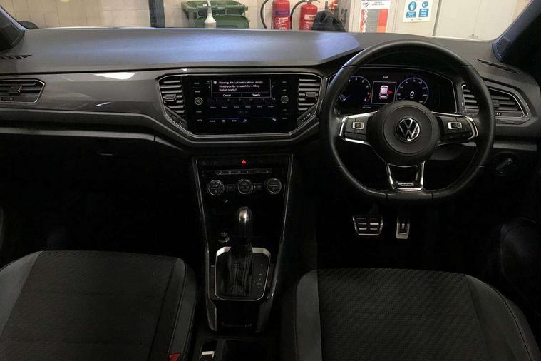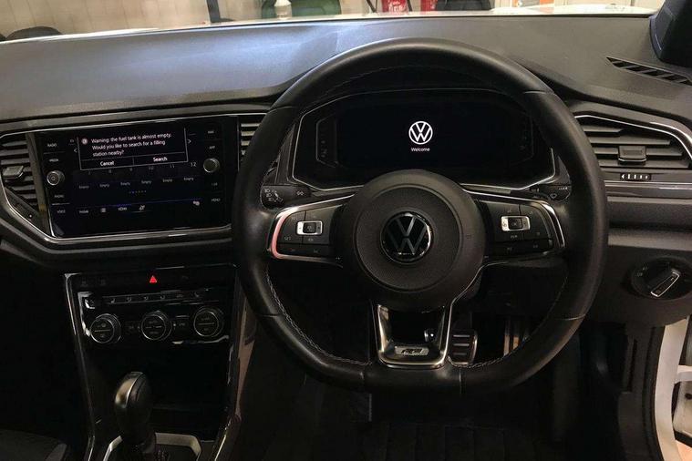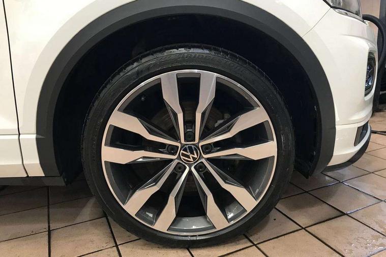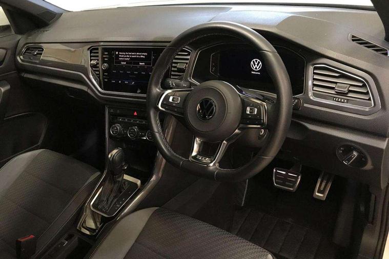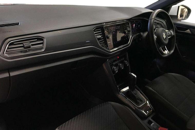 'Lights On' Reminder warning buzzer, Adaptive cruise control, Bluetooth telephone and audio connection for compatible devices, Car information display, Digital Cockpit Pro - Active info display, Driver alert system with audible and visual fatigue detection system, Driver tips and journey analysis, Emergency call service, Lane assist with warning text instrument cluster, Modified key software - reduce switch off time for key status change to Long no motion, Multifunction camera, Multifunction computer with visual gear change recommendation for fuel consumption, Navigation system discover media including streaming and internet, Service interval indicator, Think blue trainer driver tips and journey analysis, Traffic sign recognition, Voice activation, Warning sound and light for front seatbelts unfastened, Wireless app connect for apple carPlay, Battery regeneration during braking, Rear shock absorption for sports version, Start/stop function with battery regeneration, DAB Digital radio, Disk brakes in front, Diversity antenna for FM reception, Music playback - MP3, WMA and AAC files, Premium USB cable in choice of either Apple or Android smartphone compatibility, SD card slot, Simultaneous pairing of 2 compatible mobile devices, SMS functionality - read, compose and send SMS messages using touch-screen display, Storage compartment with longitudinal and height adjustable in armrest and two rear air vents, Three route options - Fast, Short, Eco, Title and cover art display, USB-C Interface and USB charging socket, Auto dimming interior rear view mirror, Automatic coming/leaving home lighting function and daytime running lights, Automatic hazard lights activation under emergency braking, Black grained lower door protectors, Body colored door lower parts, Body colour door handles, Body colour rear roof spoiler, Chrome effect left and right trapezoid exhaust tailpipe fascia surround, Chrome plated moldings, Chrome trim on upper and lower radiator grille, Dusk sensor, Dynamic headlight range control with self adjusting whilst driving, Electrically foldable, adjustable and heated door mirrors with puddle lights and reverse activated kerb-view adjustment on passenger's door mirror, External USB type C socket and charging sockets, Front and rear electric windows, Front fog lights with static cornering function, Front windscreen wiper with intermittent wipe and 4 position delay, Fully galvanised body, Heated rear window, Heated windscreen washer jets, High level 3rd brake light, LED darkened rear light clusters, LED headlamps with automatic range adjustment and unique signature LED separate daytime running lights, LED rear number plate lights, LED tail lamp rear comination lamps, Privacy glass, R-Line design body coloured bumpers, Rain sensor, Rear tinted glass from B-pillar backwards approx 65% tinted, Rear wash/wipe with intermittent wipe setting, Silver anodised roof rails, Volkswagen roundel, 12V socket in centre console storage area, 3 rear head restraints, 4 load lashing points in luggage compartment, Aluminium pedals, Black roof lining and sun visors, Branded points of interest, Carbon flag cloth upholstery, Chrome plated radiator grille inserts, air vent surrounds and light switch surrounds, Climate control - 2 zone electronic air conditioning with automatic air recirculation and allergy filter, Door and side trim panel, Door and side trim panel in foam film, insert in leatherette, Drawer under drivers seat, Front + rear carpet mats, Front centre armrest, Front cupholders x 2, Front seat back storage pockets, Front sports seats with R-Line logo on seat backrest, Glovebox, Heated front seats, Height adjustable front seats, Height/reach adjust steering wheel, Instrument lighting, white adjustable panel illumination, Interior light delay, Interior light in footwell, Isofix easy fit child seat preparation for 2 outer rear seats, Leather gearshift knob, Leather multi function sport steering wheel with gear change selection via paddle shift on steering wheel, LED interior light with switch off delay/dimmer and 2 front/rear LED reading lights, Load through provision with single cup holder when folded down, Luggage compartment cover, removable, Luggage compartment lighting, R Line badge, Scuff plates in door apertures, Split folding rear seat backrests with centre armrest, Stainless steel pedals, Storage compartment in left and right luggage area, Storage compartment in rear doors, Storage compartments in driver and front passenger doors, Sunvisors with illuminated vanity mirrors, Unique R Line door sill protectors, White ambient lighting, R line styling pack - T-Roc, Winter pack - T-Roc, 3 rear three point seatbelts, ABS, Curtain airbags, Driver and front passenger safety-optimised head restraints, Drivers and front passengers airbags with passengers deactivation switch, Drivers seatbelt reminder, Electronic parking brake with auto hold, Electronic stability control (ESC) includes ASR, EDL, EDTC and trailer stabilisation function, Front assist with city emergency braking and pedestrian monitoring, Front seat side impact airbags, Hill start assist, Predictive pedestrian protection, Rigid safety cell with front and rear crumple zones, Single tone horn, Three point height adjust front seatbelts + pretensioners, Tyre pressure loss indicator, Ventilated front and rear disc brakes, Volkswagen roadside assistance, Alarm with remote central locking and interior protection, Electronic engine immobiliser, Remote central locking with SAFELOCK, radio remote control with 2 remote control folding keys, Shadow grey decorative inserts in dash, centre console and door panel, 19" Suzuka alloy wheels with low rolling resistance tyres and anti wheel bolts,