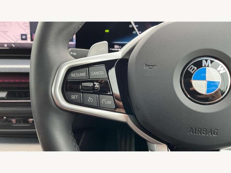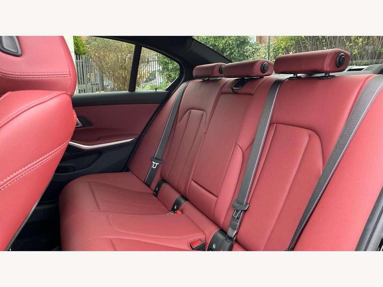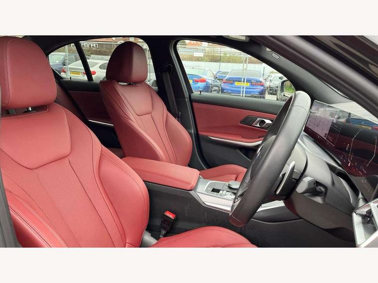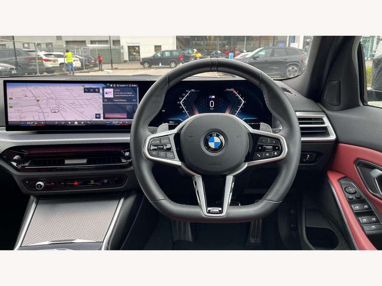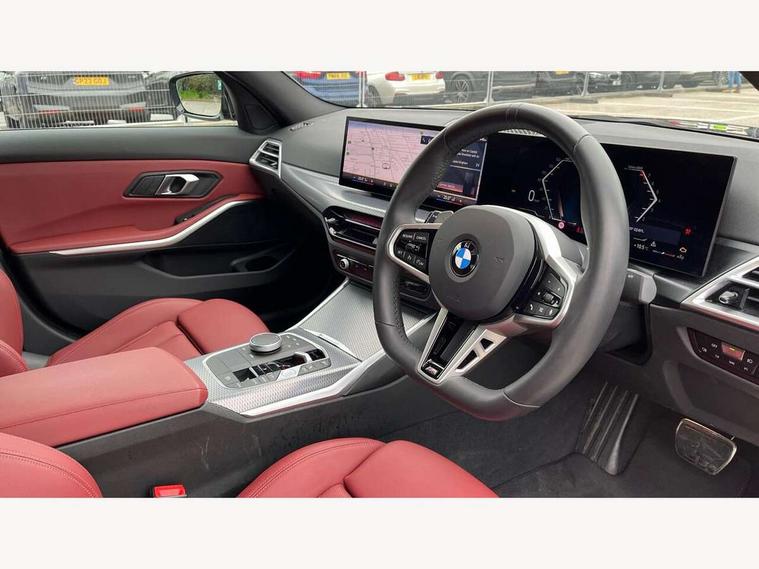 Active guard plus, Attentiveness assist, Automatic Start/stop button, Bluetooth Wi-Fi interface, BMW iDrive, BMW Teleservices, ConnectedDrive Services - last state call, Live cockpit plus with Navigation + 12.3" instrument display + 14.9" display, Intelligent voice assist, 2 USB, 4G LTE connect, Oil sensor for level and grade, Personal e-SIM, Shifting point display, Variable sport steering, Double joint spring strut front axle, Electronic differential lock control (EDLC), Fuel tank breather system, Steptronic Sport automatic transmission with steering wheel mounted gearshift paddles launch control and xtreme drive lever control, DAB tuner, 3rd brake light, Auto dimming rear view mirror, Automatic headlight beam throw control with load dependent regulating reaction, dynamic compensation of braking dive and acceleration squat, Bi-LED Low and high beam headlights, BMW emblem, engine compartment lid and tailgate, Body colour roof fin, Door sill strips, Electric windows - front and rear, with open/close fingertip control, anti-trap facility and comfort closing, Fading support, Follow me home headlight function, Front and rear bumper system with replaceable deformation elements, Front apron plastic in body colour, Fuel filler flap - right rear in body colour, Heat protection glazing on front windows and windscreen, Heated washer jets, High gloss chrome kidney frame with high gloss black kidney struts, LED daytime running lights, LED rear lights, LED turn indicator, Licence plate panel integrated into front bumper and tailgate, M high gloss shadow line exterior trim, Matt black B-pillar finsher, Matt black window recess cover, One piece front bumper cover including towing eye cover in body colour, Rain sensor with automatic headlight activation, Rear boot, Rear side wing doors, Reversing lights, Side frame decorative moulding black matt, Trailer stabilisation logic, Visible exhaust tailpipe finisher, Welcome lights in interior and door handle area, 12V power socket in front storage compartment, 2 front cupholder in centre console with clamping elements and matt black inlay, 3 seat bench in 2nd row, 3 spoke M Sport multifunction flat bottom leather steering wheel, 3 zone automatic air conditioning, 40:20:40 split folding rear seat with loading system, Anthracite headlining, Armrest integrated in front and rear door trim + front centre console armrest, BMW ID, Cruise control operation in steering wheel, Driving experience mode switch, Folding rear centre armrest with 2 cupholders, Front and rear headrests, Front and rear velour floor mats, Front reading light, Heated front seats, Height adjustable mechanically and infinitely variable steering column, Illuminated armrest storage compartment, Illuminated glove compartment, Illuminated luggage compartment, Lashing eyelets in luggage compartment, Single front passenger seat, Sunvisors with illuminated vanity mirrors and ticket pocket, Toolkit located in luggage compartment, Connected pack professional - 3 Series Saloon/Touring, Interior and exterior mirror pack - 3 Series Touring/Saloon, M sport exterior styling pack - 3 Series Saloon/Touring, Parking assistant pack - 3 Series, 3x3 point rear seatbelts, BMW emergency call, Child locks on rear doors, Crash sensor activating of airbags, Unlocking doors, hazard warning lights, interior light, safety battery terminal, Drive-off assistant, Driver and front passenger with seat occupancy detection for driver's and passenger side, Driver and passenger side airbags, body protection at side and airbags deploy from seat backrests, Dry braking, Dynamic brake control, Dynamic stability control + (DSC+) - Anti-lock Braking System (ABS) with brake assist and cornering brake control + Automatic Stability Control (ASC), Dynamic Traction Control - DTC, Electric parking brake including automatic hold function and automatic release of the parking brake when driving off, Front airbag deactivation, Front airbags for driver and front passenger, Head airbags in 1st and 2nd row, head protection at side, curtain airbags open from headliner above 1st and 2nd row, Plastic fuel tank, Side impact protection, Tyre pressure sensors, Ventilated front and rear disc brakes, Warning triangle and first aid kit, Alarm system, Centre lock switch, Closing system with central locking, Electronic vehicle immobiliser, Locking wheel bolts,