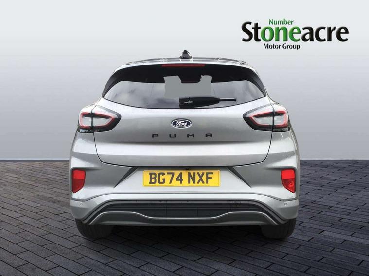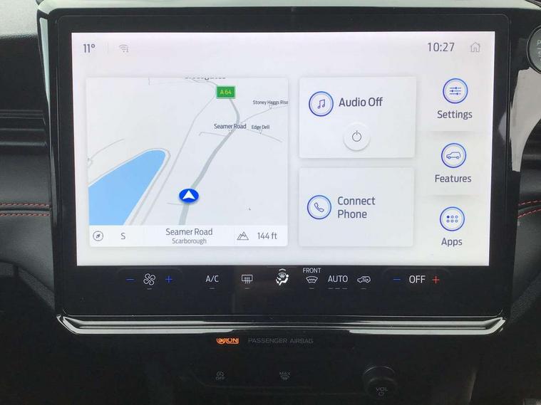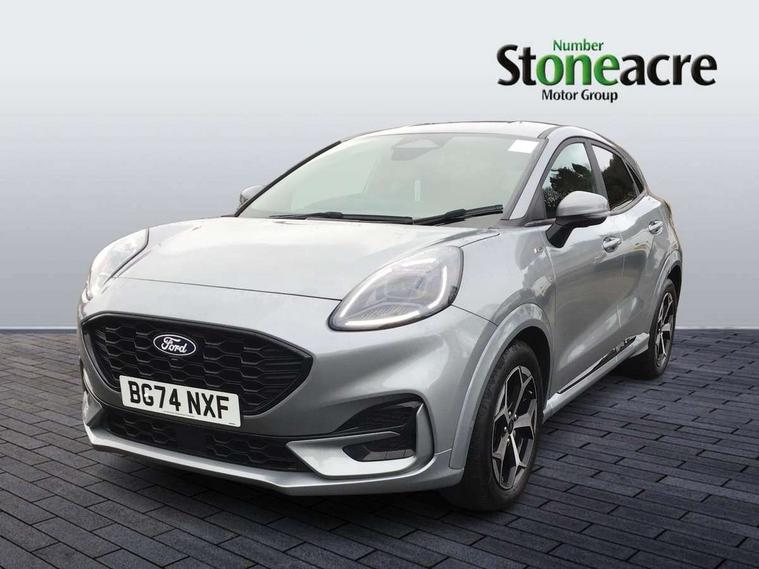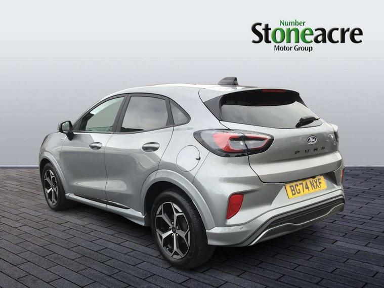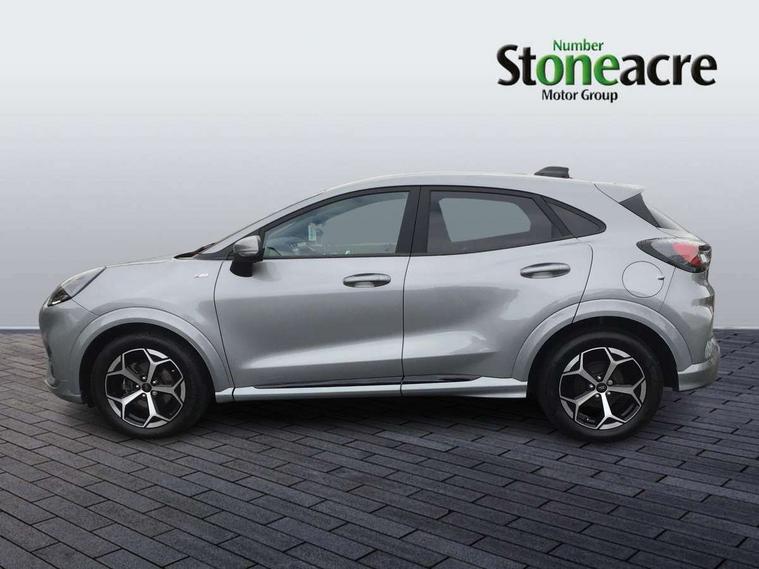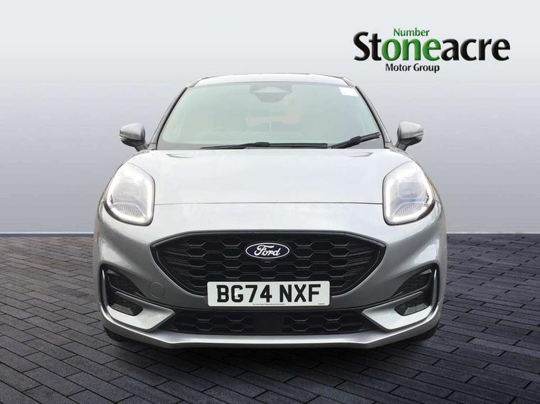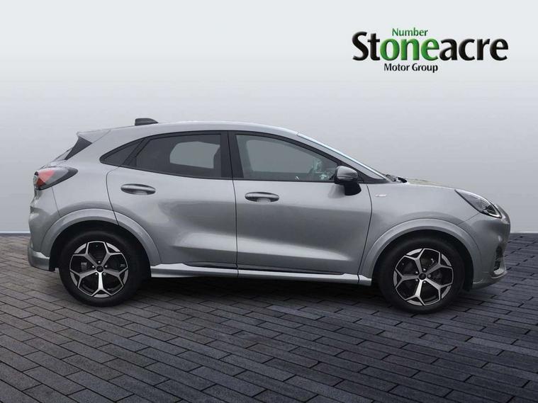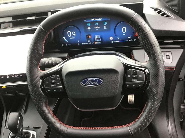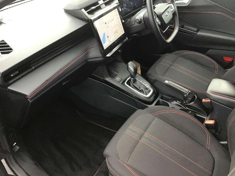 Driver impairment monitor, Emergency call service, Ford easy fuel, Full digital 12.8" instrument cluster, Lane keeping aid with lane departure warning, Power assist steering, Selectable drive modes(Normal, Eco, Sport, Slippery and Trail), Speed sign recognition, Sport suspension, 12" landscape touchscreen display with wireless apple car play and android auto 6 speaker audio system, Ford pass connect and emergency assistance, Ford SYNC4 with connected navigation, Automatic headlights with rain sensing wipers and auto high beam, Front fog lamps, LED daytime running lights, LED rear lamps, LED third brake light, Power foldable heated door mirrors with puddle lamps and puma logo protection, Quickclear heated windscreen, Rear privacy glass, Rear side wing doors, Rear wiper, ST-Line body styling kit with unique grille, 3 seat bench in 2nd row, Centre console with armrest and stowage, Electronic automatic temperature control (EATC), Ford megabox extended bootspace, Front and rear head restraints, Front floor mats, Manual 4 way driver seat adjust with lumbar adjustment, Single front passenger seat, ST- Line cloth trim with red stitching, 3 rear seatbelts, Child safety lock, Electronic stability control (ESC) and hill start assist, Pre-collision assist with autonomous emergency braking, pedestrian/cyclist detection & post-collision braking, Tyre pressure monitoring system (TPMS), Thatcham alarm,