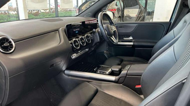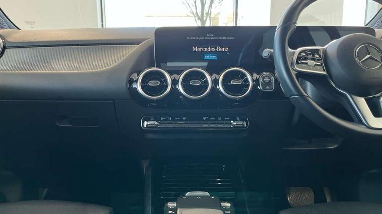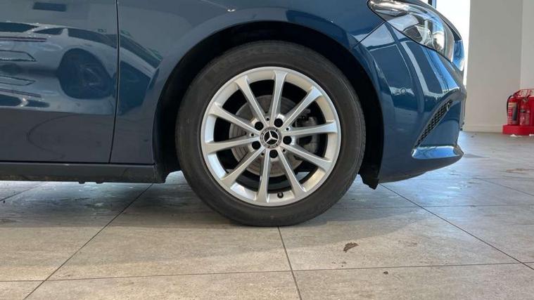 10.25" media display, 180 degree reversing camera with parking guidelines, 7 inch display in instrument panel, Active lane keeping assist, Active park assist with parktronic system including front and rear parking sensors, Attention assist - Monitors steering behaviour and long journey fatigue, Brake pad wear indicator warning light, Cruise control + speed limiter, DYNAMIC SELECT with a choice of driving modes (ECO, Comfort, Sport, Sport+ and Individual), Easy-pack tailgate, ECO start/stop function, Fluid level warning indicator for fuel, oil, coolant and washer fluid, Hard-disk navigation, Hey Mercedes Voice activation, Lamp failure indicator, Mercedes me connect including emergency call system, accident recovery, breakdown management and maintenance, Outside temperature gauge, Owners manual and service booklet in English, Pre-installation for car sharing, Pre-installation for Vehicle Monitoring, Pre-installation for Vehicle Setup, Preinstallation for Mercedes Benz link, Service indicator (ASSYST PLUS), Smartphone integration with Apple CarPlay and Android auto, Speed limit assist, Speed sensitive power steering, Trip computer in multifunction display with current consumption indicator, Wireless charging, Comfort suspension, Rear axle torsion beam, DAB digital radio tuner, Dual bluetooth interface, 2 USB ports (type C), MBUX multimedia system with DAB digital radio and touchpad including satellite navigation, Mercedes Benz sound system (100 W) with 6 speakers, 4 Electric Front and Rear windows, Active radiator shutters open for cooling air and close when not needed to improve aerodynamics and fuel efficiency, Adaptive brake lights, Aerial for GPS, Body coloured bumpers, Body coloured door handles, Body coloured side skirts, Chrome beltline strips, Chrome weather strip, Diamond radiator grille pins in black with two louvres painted in silver and chrome insert, Electric adjustable and heated door mirrors with integrated LED side indicators, Exhaust system - Twin trapezoidal tailpipes in polished stainless steel, Headlamp assist automatic headlamp activation, Heated glass rear windscreen + timer control, High level LED third brake light, LED high performance headlamps with integrated LED daytime running lights, LED tail lamp, Rain sensing windscreen wipers with two sensitivity settings, Rear fog lamp, Rear windscreen wiper, Window line trim strip in chrome, 2nd row seat adjustment, 40:20:40 split folding rear seats with backrest, Air conditioning - Two zone thermotronic luxury automatic climate control with display, Air vents with surround in silver chrome, Ambient lamp and signal, Artico man-made leather/Fleron fabric upholstery, Automatic child seat recognition sensor, Black roof lining, Freight packaging without tie-down hooks, Front and rear head restraints, Front centre armrest with stowage, Front comfort seats, Front door sills with Mercedes Benz lettering, Front seat cushion length adjustment, Gearshift paddles on steering wheel, Heated front seats, Illuminated glove compartment stowage, Luggage net on driver/front passenger seat backrest, Manually adjustable front seats, Manually height and reach adjustable steering column, Multifunction sports leather steering wheel with black topstitching and bezel in silver chrome, Rear armrest with 2 cupholders, Seat occupancy sensor for front passenger seat, Seats with adjustable head restraints, Spectacles compartment for driver, Stowage compartment in centre console with retractable cover, Sunvisors with illuminated vanity mirrors, Touchpad on center console, Twin front cupholders, Two outer rear seat isofix and top tether child seat fixing points, Velour floormats, Interior lighting with light and sight pack - B Class, Mirror package - B Class, Seat comfort pack - B Class, 3 rear three point seatbelts, Active bonnet pedestrian safety measure which detects an impact and raises bonnet, Active brake assist includes forward collision warning system with autonomous braking, Adaptive brake assist with hold function and hill start assist, Airbags - kneebag for driver, Anti-lock braking system (ABS) with brake assist, Black seat belts, Childproof locks manually operated for rear doors and electrically operated for rear power windows, Crash responsive emergency lighting, Driver and front passenger head and sidebags, Driver and front passenger windowbags, Dual stage driver/passenger airbags, Electric parking brake, Electronic stability programme with acceleration skid control, ESP curve dynamic assist, Front and rear seatbelt reminder, Tyre pressure monitoring system, Warning triangle and first aid kit, Alarm system with immobiliser and interior protection -Thatcham category 1, Keyless Go starting function, Remote central locking and crash sensor with emergency opening function, Light switch in high-gloss black with ring in silver chrome, Spiral look trim, 17" 10 spoke design alloy wheels painted in vanadium silver, Summer tyres, Tirefit tyre sealant kit,