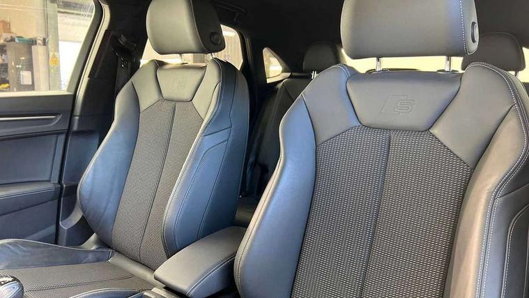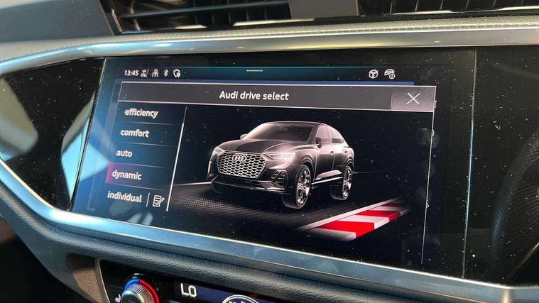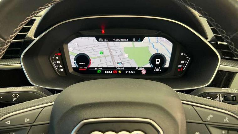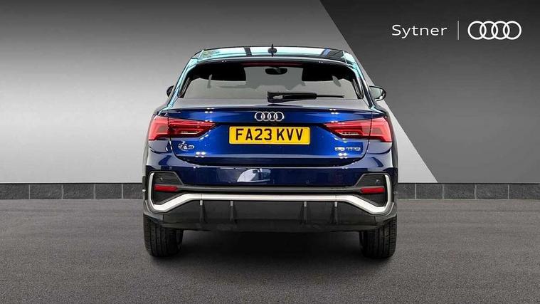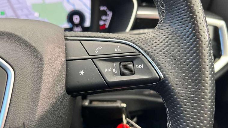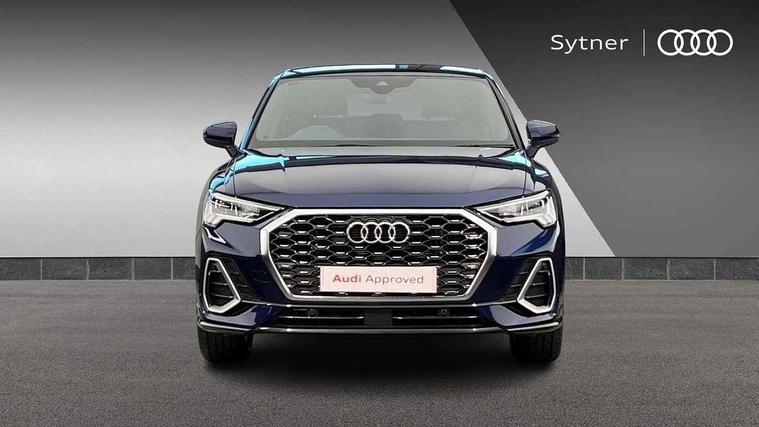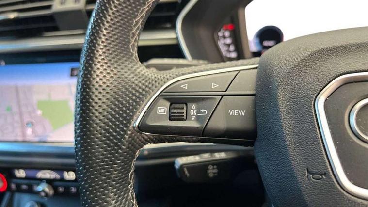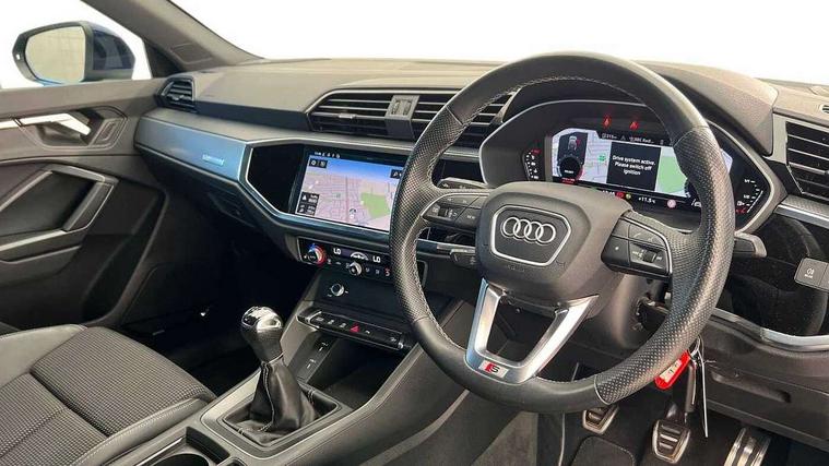 Audi drive select, Audi lane departure warning, Audi Virtual Cockpit - 10.25" display, Bluetooth interface, Camera based traffic sign recognition, Cruise control + speed limiter, Legal emergency call, MMI Navigation Plus with high resolution 10.1 inch touchscreen colour display, Power operated tailgate, Progressive steering, Rear parking sensors, Service interval indicator, Smartphone interface includes wireless Apple carplay/Android Auto, Start stop system with recuperation, Voice control system with natural language interaction, Sports suspension, 2 USB-C ports with charge and data functions, 6 passive loudspeakers, DAB digital radio module, Acoustic windscreen, Aluminium window trim, Auto dimming frameless rear view mirror, Diffuser grille in grained matt black, Diffuser trim in selenite silver, Electrically folding, adjustable and heated door mirrors with integrated LED side indicators and kerb view function for passenger side, Front and rear electric windows, Front fog lights, Front side air inlets in selenite silver, Front underbody protection in manhattan grey paint finish, Grille surround in aluminium silver matt, High gloss black finish B and C pillars, LED Dynamic rear indicators, LED headlights with LED daytime running lights, LED rear lights, LED third brake light, Privacy glass dark tinted rear and rear-side windows (from B-pillar backwards), Radiator grille in anthracite black with inlay in matt aluminium silver, Rain and light sensors, Rear side wing doors, Rear underbody protection in matt black, Rear wiper, S line badges on front wings, S line front and rear bumpers and side skirts in contrasting Manhattan grey paint finish, Side skirt insert in matt Platinium grey, Variable front intermittent wipers, 12V socket in rear centre console, 3 seat bench in 2nd row, 3 spoke leather multifunction steering wheel features S badging and grips in perforated leather with contrast stitching, 40:20:40 folding with manual adjustment for 60:40 forwards/backwards position and backrest angle, Adjustable rear seat bench/backrest with centre armrest and cupholder, Black cloth headlining, Dual zone electronic climate control, Front and rear black floor mats with contrast stitching, Front and rear headrests, Front and rear roof module including reading lights, Front centre armrest, Glove compartment lighting, Height and reach adjustable steering wheel, Illuminated door sill trims with S logo, ISOFIX child seat mounting for front passenger with airbag deactivation and outer rear seat including top tether attachment point for outer rear seats, Luggage compartment light right in white, Luggage compartment sill protection in stainless steel, Manual front seats with height adjustment, Perforated leather gearknob, Single front passenger seat, Stainless steel pedals, Ambient lighting pack - Q3, Non smoking pack - Q3, 3x3 point rear seatbelts, 6 airbags - Driver, front passenger, curtain and side windows, Audi pre-sense front with pedestrain and cyclist recognition, Electrically operated child locks on rear doors, Electromechanical parking brake, Electronic stabilisation control including ABS, ASR and EDL, Front seatbelt reminder, Hill descent control, Hill hold assist, Pre sense basic, Seatbelt monitoring, Tyre pressure warning, Warning triangle and first aid kit, Anti theft alarm, Anti theft wheel bolts, Immobiliser, Remote central locking, Aluminium look interior elements, Black dashboard, Dark matt brushed aluminium inlay, Detail dashboard around MMI touch colour display in glass look, black with surround in aluminium look, Leatherette door armrest,
