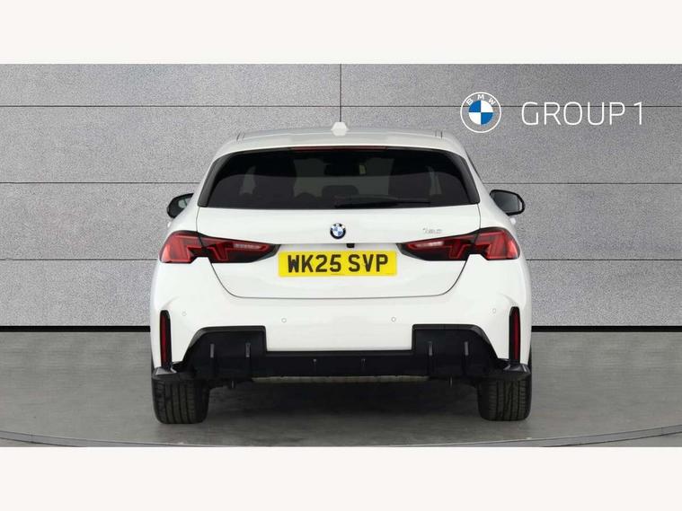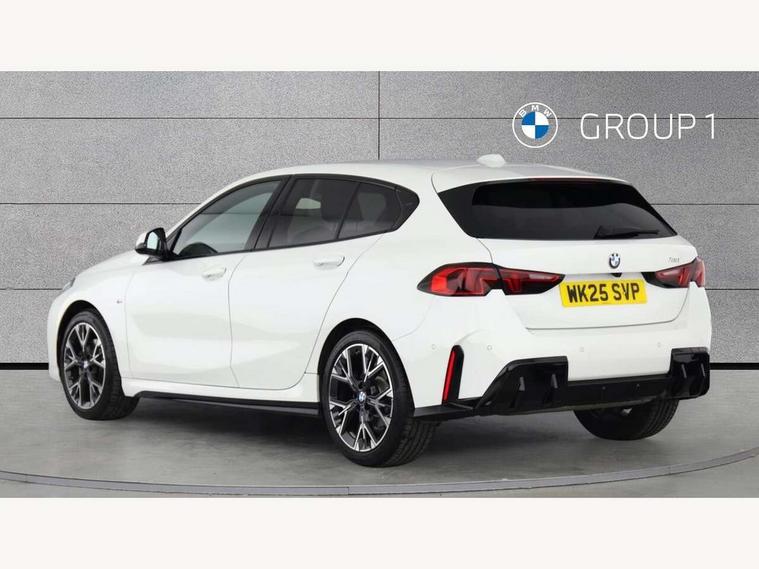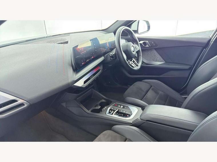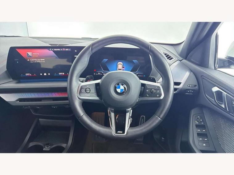 Active guard plus, Attentiveness assist, Bluetooth / WiFi interface for wireless connection of mobile terminal devices and audio streaming, BMW ConnectedDrive online services, BMW Live cockpit plus, BMW Teleservices, Check Control warning system for monitoring of lights and door/luggage compartment open warning, Eco pro mode, Electric power steering with Servotronic steering optimised at all speed ranges, Evasion assistant, Flat airvents in instrument panel with adjustable slats, Front and rear parking sensors, Front axle single joint with specific axle kinematics to minimise drive influences on steering + provide increased rigidity agile driving behaviour, Gearshift time display in manual mode, Integrated owners handbook, Left turn warning with brake function, My modes (Personal / Efficient / Sport), Oil sensor for level and grade, On board computer, Optimum shift indicator, Park assist including reversing assistant, lateral parking aid and reversing assist camera, Personal e-SIM, Personal Profile, Pull away assistant, Rigidly mounted rear subframe - Multi link construction with separate spring / damper configuration and excellent driving characteristics, Speed limit Info including no-overtaking indicator, Speed limiter, 49 litre fuel tank, Aluminium lightweight construction, Anti roll bar front and rear, Balancer shaft, Double VANOS twin scroll turbocharging system, Drive Performance Control, Electronic differential lock, Electronic selector lever, High precision injection, M Adaptive suspension, Petrol Particulate Filter, Steptronic transmission with double clutch, Twin tube gas filled shock absorbers with degressive characteristic curve, VALVETRONIC engine management, DAB Digital radio, Auto dimming rear view mirror, Automatic windscreen wipers and automatic headlight, Body colour door handles, Body colour mirror caps, Body colour roof trims, Chrome 'M' logo side designation, Chrome exhaust twin tailpipes round 90mm in left, Chrome kidney grille frame with Satin Aluminium struts, Direction indicator side lights in exterior mirrors, Electrically adjustable exterior mirror with mirror adjustment switch on drivers armrest and aspheric on driver side, convex on passenger side, Exterior M sport design elements, Fading support, Folding side mirrors with auto dimming/folding wing mirrors with auto dimming, Follow me home headlights, Front and rear bumper system with replaceable deformation elements, Front and rear electric windows with open and close fingertip control, anti trap facility and comfort closing, Front bumper panel with M specific design in vehicle colour with inserts in black high gloss, Front door sill finishers in black plastic with M designation in metallic look, Green tinted heat protection glazing, Heated rear window, High gloss black exterior mirrors, High gloss shadowline window frame, Recess cover mirror frames and B/C pillar embelisher trim, High level third brake light, Integrated front windscreen with washer jets, LED daytime running lights, LED eyebrow turn indicators, LED front fog lights, LED Headlights, Lightweight engineering, M identification on the sides, Matt black air guide grilles, Matt black wheel arch trim, Model badge on tailgate right, Nearside reverse light in rear light cluster, Preparation for high beam assistant, Rain sensor, Rear bumper panel with M-specific design in vehicle colour with inserts in black high gloss, Rear fog lights, Rear side wing doors, Rear window wiper, Shark fin antenna, Side sill covers with M specific design in body colour, Trailer stabilisation logic, Visible VIN plate, Welcome lighting, 12V power socket in front centre console with blanking plug, 3 rear seat head restraints, 3 seat bench in 2nd row, 3 spoke sports leather steering wheel with black leather and stitching, pearl chrome decorative finish, specific M Badge, Anthracite front and rear floor mats, Anthracite headlining, Black boot net with lashing eyes, Cargo function on 2nd seat row, Child seat ISOFIX attachment for two outer rear seats and front passenger seat with anchorage points, Conditioned based service, Driver and front passenger backrest net on rear, Driver and front passenger seat heating, Driver side folding compartment in instrument panel, Folding rear clothes hook, Footrest and pedals in black plastic, Four grab handles integrated in roof lining, Front and rear door pockets with bottle holders, Front and rear side armrest integrated into door trim, Front armrest with storage compartment, Gearshift paddles on steering wheel, Glove compartment, Height adjustable front head restraints, Luggage compartment for bag hooks on left and right, foldable luggage compartment liner and four lashing eyelets, Manual adjust steering wheel, Multi-function controls for steering wheel, Rear seat backrest with manual 60:40 split folding with 3 top tether clips integrated on rear of seat panels, Single front passenger seat, Storage compartment in centre console, Storage compartment in luggage compartment, Stowage of the parcel shelf in luggage compartment trim, Sun visors with vanity mirrors and insert tab, Two front centre console cupholders, Type C two USB ports in rear centre console, Upper retaining strap integrated into backrest rear panels, Connected pack professional - 1 Series, Interior lights pack - 1 Series, M Sport exterior styling aerodynamics pack - 1 Series, 2 tone horn, 3 point seatbelts on all seats, front pyrotechnic belt tensioners, stopper and belt force limiters, rear coded belt buckles, Airbags - Front driver/passenger, front and rear curtain head protection, front side, manual deactivation of front passenger airbag, Anti lock braking system (ABS) with brake assist, BMW emergency call, Brake drying, Braking readiness, Child proof locking system in rear door, Comfort modes, Cornering brake control, Crash sensor activating of airbags, Unlocking doors, hazard warning lights, interior light, safety battery terminal, Driver and front passenger seat belt sec