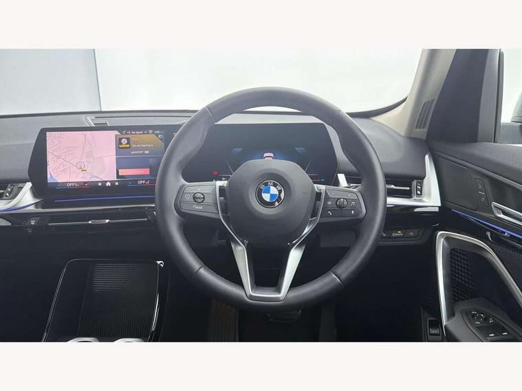 Attentiveness assist, Automatic start/stop function, BMW Operating system 9 with BMW Maps, real-time traffic information, in-car experiences, remote services and smartphone integration, BMW Teleservices, Brake pad wear indicator, Condition based service, Connected eDrive Services, Drive off assistant, Electrically opening/closing tailgate with opening/closing with remote control and contactless opening and closing, iDrive controller, Language version English, My Modes, Personal Profile - automatic lock when driving away selectable, Servotronic PAS, Tyre puncture warning system, Widescreen display, EU6 emissions management, Larger Fuel Tank, Performance Control, Petrol Particulate Filter, Standard suspension, Steptronic transmission with double clutch, BMW Personal eSim, DAB Digital radio, Badge on engine compartment lid and tailgate, BMW radiator grille with grille struts, end face black high-gloss, radiator grille frame chrome high-gloss, Dynamic brake lights, Electric adjustable heated door mirrors, Electric windows - front and rear, with open/close fingertip control, anti-trap facility and comfort closing, Folding door handles integrated flush with surface, Follow me home headlights, Front bumper panel with air inlet in matt black, Front door exit lights, Heated rear window, High gloss shadowline, Invisible exhaust tailpipe, LED 3rd brake light integrated in rear spoiler, LED daytime running lights, LED number plate light, M roof rails high gloss shadow line, Matt black roof strips, Rain sensor including auto headlights activation, Rear bumper panel with two L-shaped trims In pearl chrome, Rear side wing doors, Rear wiper, Sill cover in body colour, Trailer stabilisation logic, Window washer nozzle for rear view camera, Windscreen wipers front with heated washer nozzles, 12V - Power sockets with front centre console and luggage compartment, 2 bag hooks in luggage compartment, 2 cup holders in front, 2 x USB Type C ports for charging in front centre console + 2 x USB Type C ports for charging in rear centre console, 3 rear headrests, 3 seat bench in 2nd row, 3 upper retaining strap clips integrated into rear panels of seat backrests, 40:20:40 split folding rear seats, Ambient interior lighting, Anthracite Velour front and rear floormats, Bottle trays in all doors, Child seat ISOFIX attachment for two outer rear seats and front passenger seat with anchorage points, Clothes hook rear, Driver and front passenger heated seats, Dual zone automatic air conditioning, Front and rear door pockets, Front centre console storage compartment, Front/rear adjustable head restraints, Glove compartment, Light on right in luggage compartment, Manual steering column height and depth adjustment, Middle centre console storage compartment, One piece parcel shelf opens together with tailgate and removable, Rear armrest in door trim panel, Single front passenger seat, Sport leather multifunction steering wheel with thumbrests and operation of instrument display, audio, telephone and driver assistance, Storage compartment net in left side trim panel, Storage compartment with folding cover under centre console armrest cushion, Storage tray in right side trim panel, Tilt adjustment incl. cargo function of 2nd row of seats, Trim elements on steering wheel spokes in pearl chrome, ABS/EBD, Automatic hold function, Automatic Stability Control (ASC), BMW emergency call, Braking readiness, Cornering brake control (CBC), Crash Sensor - activates hazard/interior lighting + unlocks doors, Driver/Front Passenger airbags, Driver/front passenger side airbags, Dry braking, Dynamic brake control, Dynamic stability control + (DSC+), Electromechanical parking brake, Energy recovery system, First aid kit, Front and rear brake discs, Front and rear head airbags, Front passenger airbag deactivation, Integrated brake system, PC iBrake PostCrash approach control warning with light braking function, Rear door child safety locks, Three point seat belts in all seats, Tyre pressure monitor, Warning triangle, Alarm system with tilt sensor, monitoring doors, bonnet interior and tailgate, Closing system with central locking, Locking wheel bolts, Tyre repair kit (including Tyre sealant and 12V Compressor),