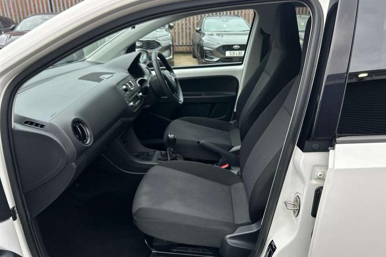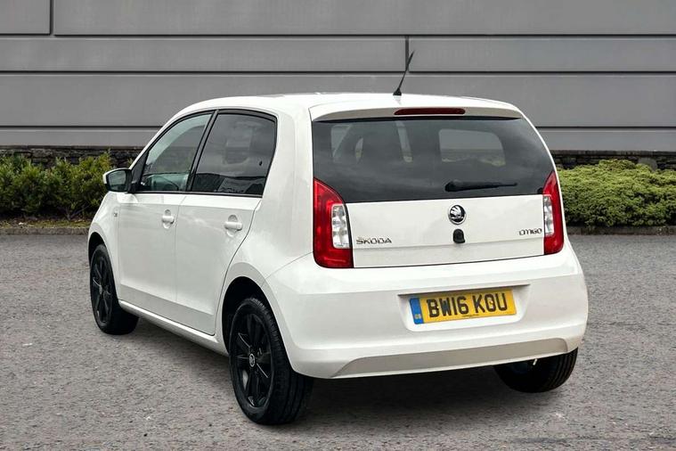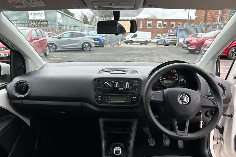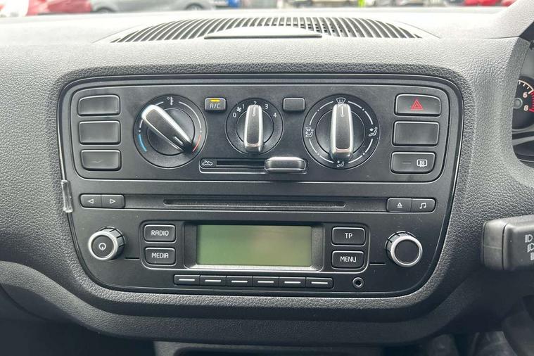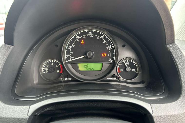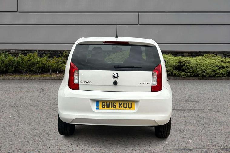 Rev counter, Service interval indicator, Speed sensitive power steering, Aux-in socket, Radio/MP3 player, Body colour bumpers, Body colour door mirrors and handles, Chrome grille surround, Daytime running lights, Electric front windows, Front fog lights, Heated rear window, Rear wiper, Sunset privacy glass, 12V accessory power point in centre console, 60/40 split folding rear seat, Air conditioning, Boot light, Delay courtesy light function, Directional air vents for side windows, Driver seat height adjust, Driver's sunvisor with ticket holder, Front head restraints, Front interior light, Glovebox, Height adjustable rear head restraints, Height adjustable steering wheel, Isofix Preparation 2 Rear child seats, Passenger sunvisor with vanity mirror, Entertainment pack - Citigo, 3 point height adj front seatbelts + pretensioners, ABS, Driver and passenger airbags, Driver/front passenger head+thorax airbag, Driver/front passenger side airbags, ESP, Seatbelt warning lamp and buzzer, Two 3 point rear seatbelts, Two tone horn, Tyre pressure monitor, Electronic engine immobiliser, Locking fuel filler cap, Remote control central locking+folding key, 15" Auriga Black alloy wheels,