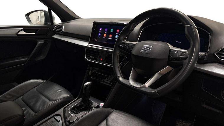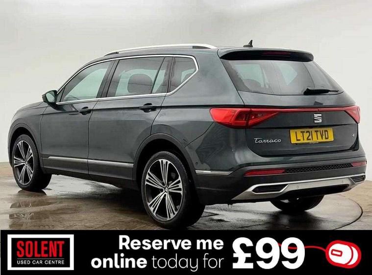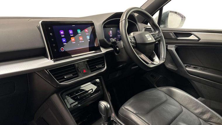 'Lights On' Reminder warning buzzer, 10.25" digital cockpit, Adaptive cruise control with speed limiter, Bluetooth audio streaming with handsfree system, Digital clock, Digital cockpit, e-Call (emergency call), Front assist city emergency braking and pedestrian protection, Full Link Wireless Smartphone Integration with Mirror Link, Apple Car Play, Lane assist, Low fuel warning light, Outside temperature gauge, Power assist steering, Rear view camera, RPM counter, Seat connect with safety, service, remote and online, SEAT Drive profile-4 different modes, progressive steering, 4Drive versions with off-road/snow, steering response, throttle response, gear shifts mode, Self parking functionality (includes front and rear parking sensors), Top view camera, Trip computer, Wash water level indicator, Comfort suspension, XDS electronic differential lock, Navigation system with 9.2" colour touchscreen with proximity sensor, 3D Map display, DAB, AM/FM Radio, 3 USB (type C), Aux-in, 8 speakers, SD card, Steering wheel mounted audio/telephone controls, USB (type C) cable for Apple and Android compatibility, Auto dimming rear view mirror, Auto headlights with automatic coming and leaving home function, Automatic headlight adjustment, Black bumpers with chrome detail, Body colour door mirrors and handles, Chrome front grille frame, Chrome roof rails, Chrome window trim, Coast to coast lighting, Dark tinted rear windows, Electric front/rear windows, Electrically adjustable and folding door mirrors, Front halogen fog lights with cornering function, Fuel door linked to central locking, Full LED headlights with LED rear lights, Heated door mirrors, Hidden exhaust pipe, Illuminated aluminium front door sill with trim logo, LED daytime running lights, LED licence plate lighting, Rain sensing wipers, Rear fog lights, Rear wash/wipe, Welcome lighting, 3 zone climate control, Ambient spot lighting and front footwell illumination, Black interior roof, Centre armrest in front with air outlet in rear, Driver and passenger sunvisor with covered and illuminated mirror, Driver's electric lumbar adjustment, Easy fold rear seat system - second and third row, Electric driver's seat with memory, Folding table on front seat backrests, Forward and backward adjustable seats 2nd row, Four cargo rings in the boot, Front cupholders, Front passenger seat lumbar adjustment, Front seat back storage pockets, Gear shift indicator, Height adjustable front headrests, Height adjustable passenger seat, Illuminated boot, Illuminated glovebox, Instrument lighting with brightness control, ISOFIX points in outer 2nd row seats and front passenger seat with top tether anchorage points, Leather gear knob, Leather upholstery with sports seats, Leather wrapped multifunction steering wheel, Luggage compartment floor with split function, Rear armrest and easy back seat release mechanism from boot, Rear head restraints, Sliding boot cover, Storage compartment in roof console for sunglasses, Storage draw under front passenger seat, Three 12V sockets, White ambient lighting in front and rear door panels + LED lights in interior door handles, Winter pack - Tarraco Xcellence Lux, 3x3 point rear seatbelts, ABS, Active front head restraints, Driver/front passenger airbag, Drivers knee airbag, Electronic parking brake with auto hold, Electronic stability control, Front passenger airbag deactivation, Front side airbags, Hill hold control, Seatbelt reminders for all seats, Tiredness recognition system, Traction control, Two curtain airbags, Tyre pressure monitoring system, Alarm, Central locking, Keyless enter and go with electric tailgate with virtual pedal, Locking wheel bolts, Power locking and remote control with two foldable keys and opening boot selector, Chrome interior detailing - door and dashboard decorative inserts, 20" Supreme machined alloy wheels 37/1, Tool kit,