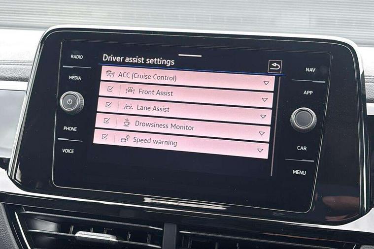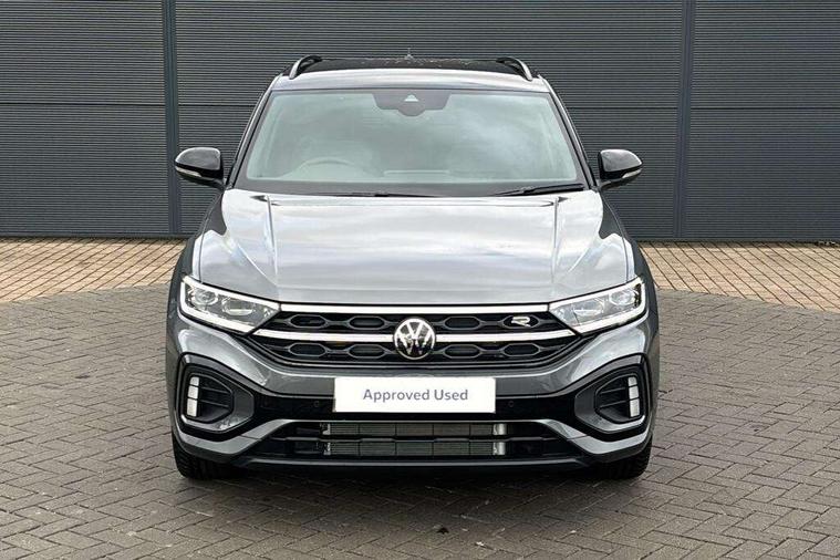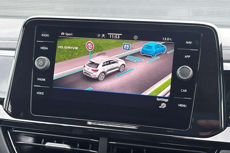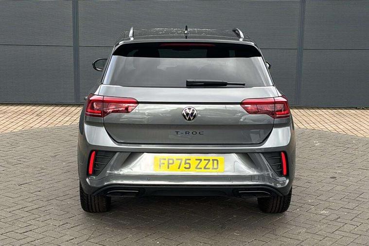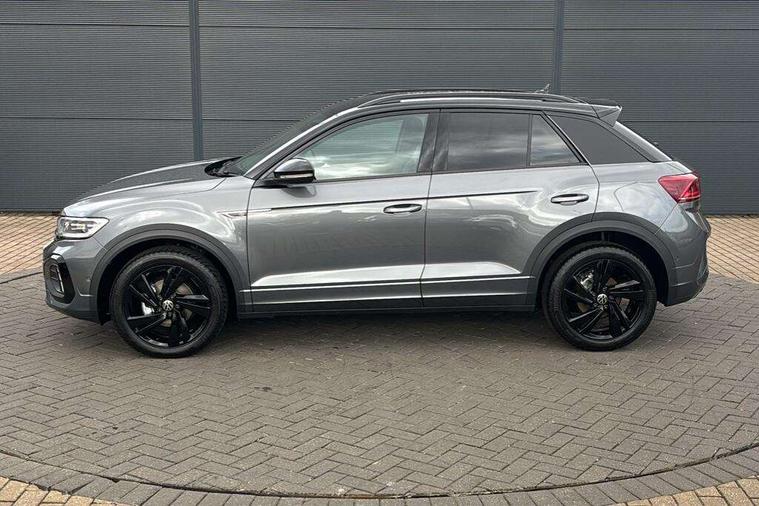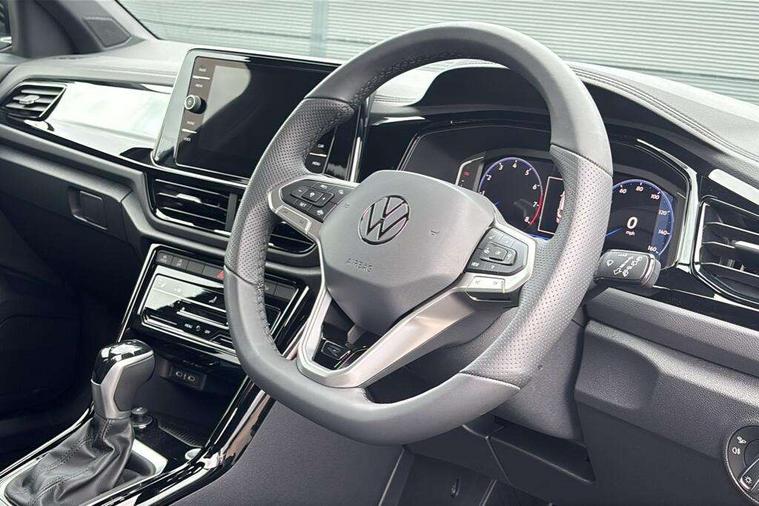 10.25" Digital cockpit pro, Advanced driver attention and drowsiness monitor, Emergency call service, Lane keeping system Lane Assist, Mobile phone interface, Modified key software - reduce switch off time for key status change to Long no motion, Online services, Park assist including front and rear parking sensors, Power assisted speed sensitive steering, Service interval indicator, Tailgate/trunk lid release from outside, Think blue trainer driver tips and journey analysis, Warning sound and light for front seatbelts unfastened, Wireless app connect, Battery regeneration during braking, Rear shock absorption chassis with increased ride height, Start/stop function with battery regeneration, DAB Digital radio, Diversity antenna for FM reception, Front and rear 6 speakers, Music playback - MP3, WMA and AAC files, Premium USB cable in choice of either Apple or Android smartphone compatibility, SD card slot, Simultaneous pairing of 2 compatible mobile devices, Title and cover art display, We Connect and We Connect Plus functionality, Auto dimming interior rear view mirror, Automatic hazard lights activation under emergency braking, Automatic headlight control with LED separate daytime running lights with coming/leaving home function, Dynamic cornering light, Electrically adjustable and heated door mirrors, Extended roof spoiler, Exterior mirrors aspherical on driver side, convex on front passenger side, External USB type C socket and charging sockets, Front windscreen wiper with intermittent wipe and 4 position delay, Heated rear window, Illuminated front grille, IQ LED matrix headlights, LED 3rd brake light, LED rear number plate lights, LED rear tail lights with dynamic turn signal, Light mode for poor weather, rain, fog or snow, Power windows with comfort operation and circuit breaker, R-Line design body coloured bumpers, Rain sensor, Rear exhaust tailpipe, Rear fog light on one side and reversing lights on both sides, Rear side wing doors, Rear wash/wipe with intermittent wipe setting, Remote electrically foldable door mirrors, puddle lights and reverse activated passenger's door mirror, 12V power socket in centre console, 3 rear head restraints, 3 seat bench in 2nd row, 4 load lashing points in luggage compartment, Air care climatronic air conditoning system with active combination filter and 2-zone temperature control, Artvelours cloth upholstery, Black roof lining, Chrome plated radiator grille inserts, air vent surrounds and light switch surrounds, Door and side trim panel with leatherette insert, Drawer under drivers seat, Driver seat height adjust, Driver's seat lumbar support, Front + rear carpet mats, Front centre armrest, Front comfort sports seats, Front cupholders x 2, Front footwell illumination, Front reading light, Front scuff plates with R Line logo, Front seat back storage pockets, Glove compartment door with light, Instrument lighting, white adjustable panel illumination, Interior ambient lighting and surround lighting, Interior light delay, Isofix child seat preparation, Leather gearshift handle, Leather wrapped multifunction steering wheel with paddle shift, Load-through provision with cup holder when folded down ('Unsplit rear seat bench, split folding backrest, with centre armrest), Luggage compartment lighting, Non-folding front passenger seat backrest, Passenger seat height adjuster, Passenger seat lumbar support, Single front passenger seat, Stainless steel pedals, Storage compartment in left and right luggage area, Storage compartment in rear doors, Storage compartments in driver and front passenger doors, Sunvisors with illuminated vanity mirrors, Variable boot floor, height adjustable and removable, Winter pack without heated windscreen washer jets - T-Roc, 3 point height adj front seatbelts + pretensioners, 3 point seatbelts in outer rear with ECE label, ABS, Child locks on rear doors, City emergency braking and pedestrian monitoring, Driver and front passenger airbag with front passenger airbag deactivation, Driver and front passenger safety-optimised head restraints, Drivers seatbelt reminder, Electronic parking brake, Electronic Stability Control (ESC) inc EDL (Electronic Differential Lock) and ASR (Traction Control), Front and rear passengers curtain airbag system including front side airbags, Front disc brakes, Hill start assist, Predictive pedestrian protection, Rear disc brakes, Two tone horn, Tyre pressure loss indicator, Volkswagen roadside assistance, Tool kit, Trims for alloy wheels, Tyre mobility kit including compressor and sealing foam,