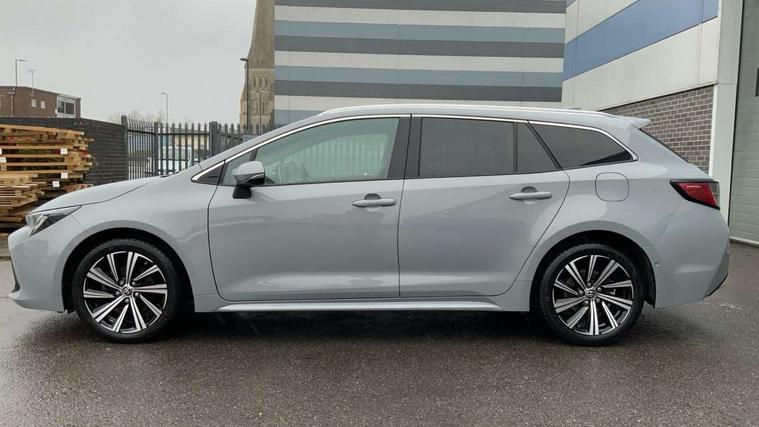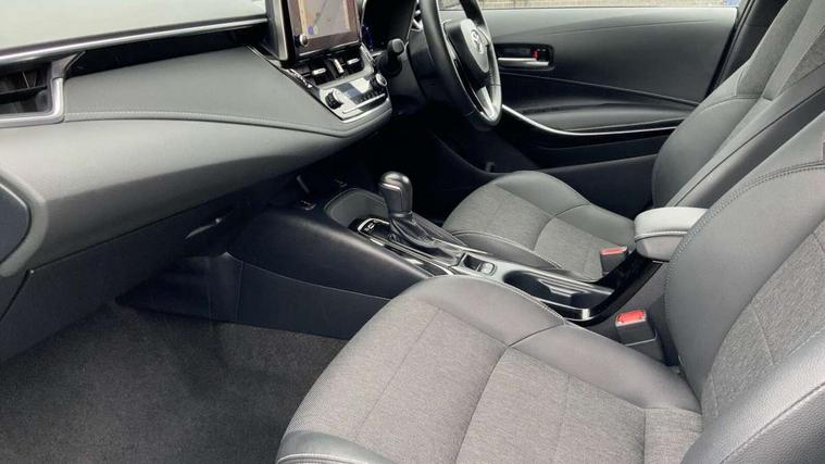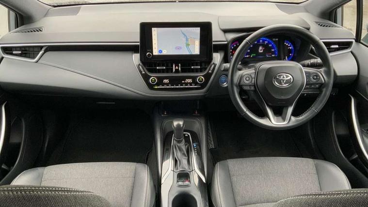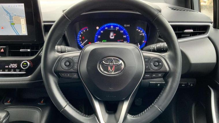 7" Multi information display screen, Bluetooth telephone connectivity, Connected car functionality upgrade, tracker, remote status and e-care, Door trim and centre console material, Dynamic radar cruise control (with RSA) including switch on steering wheel, E-call, Electrically assisted power steering, EV drive indicator, Intelligent park assist, Lane Departure Alert (LDA) switch on steering wheel, Memory on adjustable speed limiter, Push button start, Reversing camera, Smartphone integration with Apple CarPlay and Android auto, Gasoline particulate filter, Vehicle Stability Control (VSC), 6 speakers, 8" Touchscreen with MM19 Multimedia system and voice recognition, AM/FM radio, DAB Digital radio, Toyota touch 2 with go navigation system, USB and Aux in connectors + 12V front outlet, USB charging port in centre storage box, Aluminium roof rails, Anti-jam protection on power windows, Auto dimming inside rear view mirror, Auto up and down function on all power windows, Automatic folding mirrors, Automatic headlights with high beam assist, Black metallic surround on lower front grille, Black toyota logo in front, Body colour rear spoiler, Body coloured bumpers, Body coloured door mirrors, Body coloured outside door handles, Follow me home headlights, LED daytime running lights, LED front fog lights, LED Headlights, LED High mounted stop light, LED rear combi lights with LED lightguide, Noise reduction layer on front windows, Power adjustable heated door mirrors, Power front windows, Power rear windows, Privacy glass, Rain sensing wipers, Rear side wing doors, Rear window defogger, Rear window wiper, Reverse tilting door mirrors, Shark fin antenna, Time adjustment on intermittent wiper, Turning signal integrated indicators in door mirrors, Unique lower skirt, Unique side rocker with black insert, UV-filter on driver and passenger windows, 12v power outlet - luggage side, 3 rear headrests, 3 seat bench in 2nd row, 3 spoke leather steering wheel + gear knob, 60/40 split folding rear seat, Adjustable speed limiter switch on steering wheel, Audio, multimedia and telephone switches on steering wheel, Blue ambient interior illumination to centre tray, front cup holders and front door trim, Boot light, Boot underfloor storage, Clean air filter, Driver and front passenger personal light, Driver and passenger assist grip, Driver and passenger sun visor with mirror and light, Dual sided deck board in boot, Dual zone automatic air conditioning with ECO mode switch, Fabric/synthetic leather upholstery, Front and rear cup and bottle holders, Front and rear door pockets, Front head restraints, Front passenger seat, Heated driver and front passenger seats, Illuminated entry system in room lamp, ISOFIX seat fixing (2 fixings on rear outer seats), Leather gear shift with satin chrome on gear shift console, Leather style armrests, Manual height adjustable for driver and front passenger seat, Passenger seat back pocket, Pollen filter, Power adjustable lumbar support on driver seat, Power window switches with satin chrome inserts, Rear armrest with 2 cupholders, Rear passenger air vents, Rear passenger coat hooks (2), Rear passenger personal lights, Retractable tonneau cover with luggage partition net, Satin chrome inside door handles, Shopping bag hooks in luggage compartment, Side storage in boot, Sliding armrest on centre console box, Slow opening glovebox with lights, Tilt/telescopic steering column, Tonneau cover with under floor storage, Voice recognition switch on steering wheel, Whiplash Injury Lessening (WIL) feature (active headrest) for seats, Parking pack - Corolla, Toyota safety sense 2 pack - Corolla, 3x3 point rear seatbelts, Adjustable driver and front passenger seat belt extender to top anchor point, Anti lock braking system + Electronic brake force distribution, Brake assist function, Child locks on rear doors, Downhill Assist Control (DAC), Electronic parking brake, Emergency brake light signal (EBS), Front passenger airbag on/off switch, Front seatbelt reminder, HAC - Hill start assist control, Rear seat belt reminder, Seatbelt pretensioners and force limiters, Supplemental restraint system (SRS) 7 airbags - dual driver, dual side curtain, side impact and driver knee airbags, Traction control, Tyre pressure warning system, Acoustic vehicle alert system (AVAS), Alarm with motion sensor and immobilizer, Remote central locking + deadlocks, Smart entry, Satin chrome dash trim, Soft touch texture on upper dashboard, Stitching on lower dashboard, Tyre repair kit, Unique wheel finish with red wheel cap,