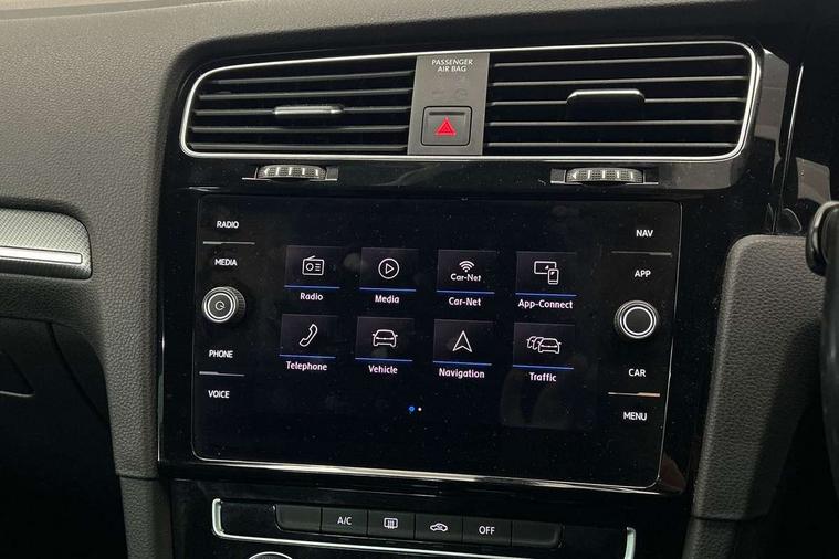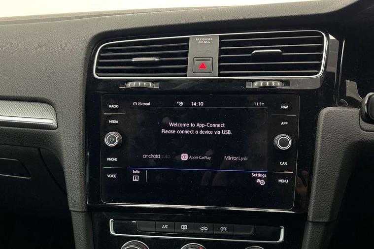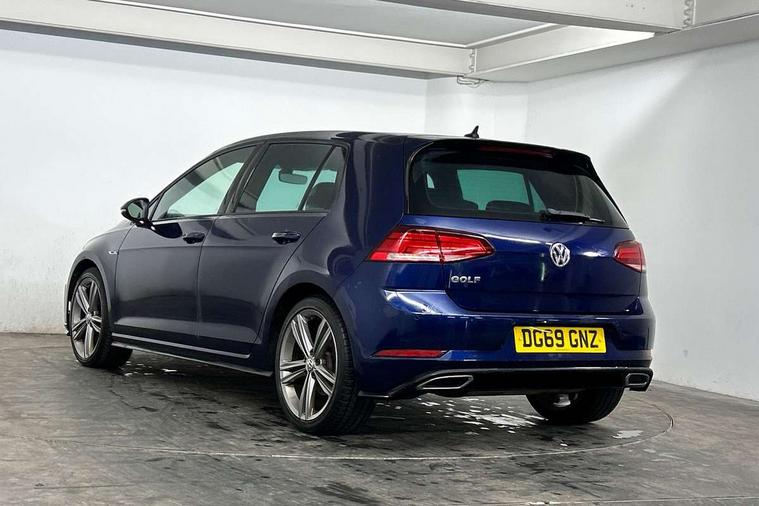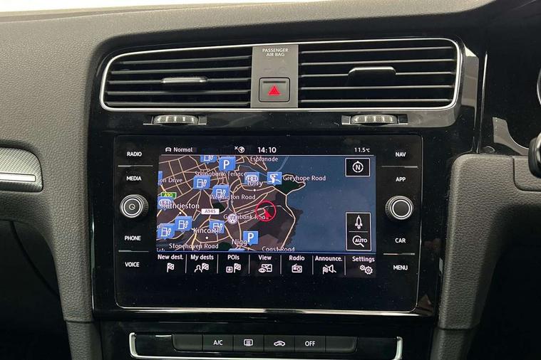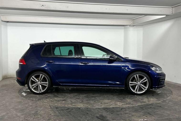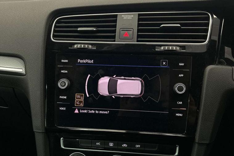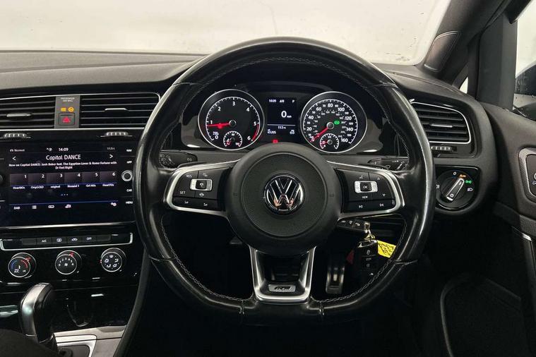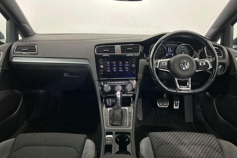 'Lights On' Reminder warning buzzer, ACC - Adaptive cruise control with front assist, forward collision warning, distance monitoring, city emergency brake and speed limiter, Bluetooth telephone and audio connection for compatible devices, Brake pad wear indicator warning light, Driver alert system, Driving Mode Selection with four preset modes - Eco, normal, sport or individual modes, Instrument cluster in white, Misfuelling protection device, Multifunction computer with visual gear change recommendation for fuel consumption, Power assisted speed sensitive electro-mechanical steering, Push tank flap, Speed limit display, Speedo, rev counter, electronic odometer, trip, service interval display, exterior temperature and fuel gauge, Startup screen with R-Line logo, Stop/start system, Think blue trainer driver tips and journey analysis, Warning buzzer and light for front seatbelts unfastened, Battery regeneration during braking, Diesel particulate filter, XDS electronic differential lock, Composition media system, DAB Digital radio receiver, Driver Personalisation profile selection, MP3/WMA compatability, Multi device interface (MDI) with USB connection, Premium USB cable in choice of either Apple or Android smartphone compatibility, SMS Functionality, USB and SD card connectivity, Black front air intake and radiator grille with chrome insert, Body colour bumpers, Body colour door handles, Body colour door mirrors with integrated indicators, Body colour rear roof spoiler, Dusk sensor + automatic driving lights, Electric front windows, Electric rear windows, Electrically adjustable and heated door mirrors, Fully galvanised body, Glossy black R-Line specific louver ventilation, Heated rear windscreen, High level 3rd brake light incorporating LED Technology, LED front fog lights with static cornering light function, Left and right chrome effect trapezoid dummy exhaust tailpipe surrounds, Radiator grille with R-Line logo, Range adjustable headlights via infotainment system with LED daytime running lights, Rear diffuser, Rear fog lamp, Rear number plate lights incorporating LED technology, Rear tinted glass 65% light absorbing from B pillar backwards, Rear window aerial, Rear window wash/wipe with intermittent wipe, Reflectors in all doors, Remote electrically foldable door mirrors, door mirror puddle lights and reverse activated kerb-view adjustment on passengers door mirror, Shiny black aerofoil downside, Sill extensions, Stainless steel door sill protection, Unique R Line badging, Windscreen wipers/ intermittent wipe + 4 position delay, 12V socket in luggage compartment, 3 rear headrests, 4 load lashing points in luggage compartment, 60/40 split folding rear seat backrest, Bag hook in luggage compartment x 2, Black decorative sleeve on gear handles, Black headlining, Black roof lining, Cooled glovebox, Dust/pollen filter, Embosseed R line logo on front sport seat backrest, Front + rear carpet mats, Front centre armrest with storage compartment and two rear air vents, Front seat back storage pockets, Grab handles front x 2, rear x 2 with integrated coat hooks, Height and reach adjustable steering wheel, Illuminated vanity mirrors, Instrument lighting white adjustable panel illumination, Interior light delay, Isofix preparation for 2 rear child seats, Leather gear knob and handbrake grip, Load through provision with rear centre armrest and cupholders x2, Luggage compartment lighting, Multifunction sports leather steering wheel with R-Line logo and decorative seams in crystal grey including paddle shift, Overhead storage box, Stainless steel pedals, Storage box in luggage compartment, Storage compartment in roof console with cover, Storage compartments in front doors, Storage compartments in rear doors, Stowable luggage compartment cover, Sun visors, Variable boot floor, height adjustable and removable, Ambient lighting pack - Golf, Convenience Pack - Golf, Light and Sight pack - Golf, Mirror pack - Golf, R Line Styling pack - Golf, 3 rear three point seatbelts, Airbags - Driver's and front passenger's, curtain airbag, Driver's knee, front side impact and passenger's airbag deactivation switch, Anti-lock Braking System (ABS) with Hydraulic Brake Assist (HBA), Automatic post collision braking system, Child locks on rear doors, Driver/Passenger optimised head restraints, Electronic parking brake with auto hold, Electronic stability control (ESC) including Electronic differential lock (EDL) and ASR (Traction control) with deactivation via infotainment system, Front ventilated disc brakes and rear disc brakes, Pre crash preventive occupant protection, Three point height adjustable front seatbelts with tensioners, Tyre pressure loss indicator, Alarm with interior protection and deactivation via infotainment system, Electronic engine immobiliser, Chrome plated air vent surround, Chrome plated electric mirror adjustment switch surround, Chrome-plated light switch surround, Dark Diamond decorative inserts in dash and door panels, Piano black decorative inserts in centre console, Steel space saver spare wheel,