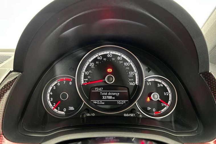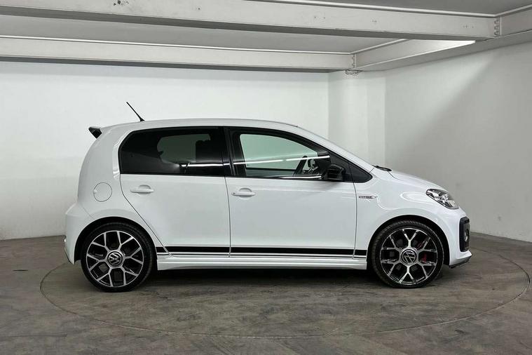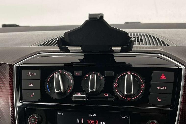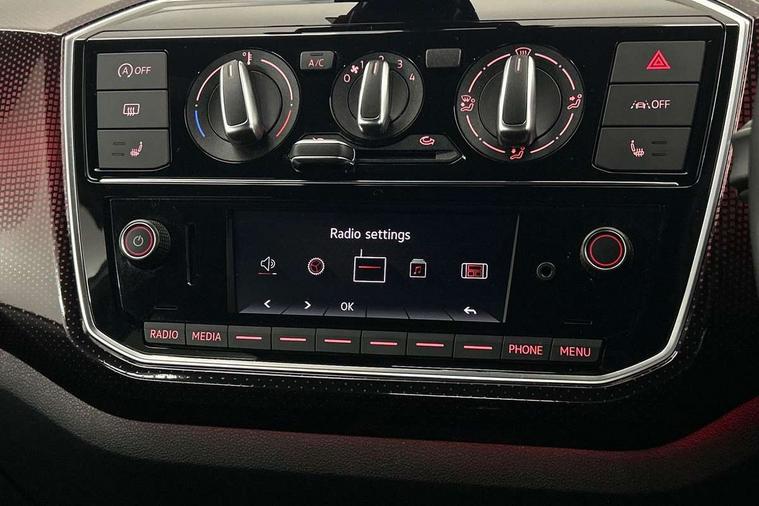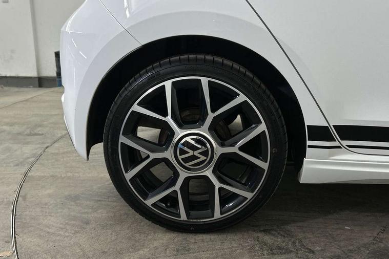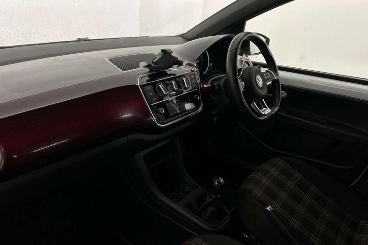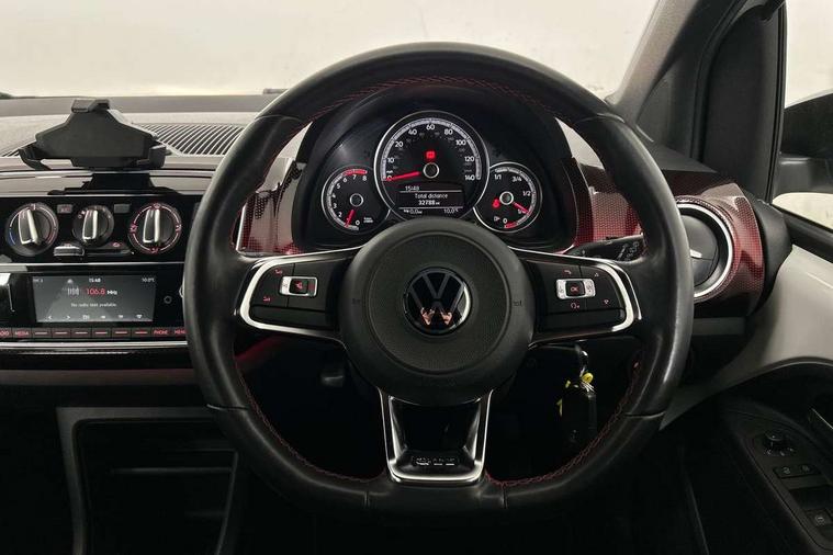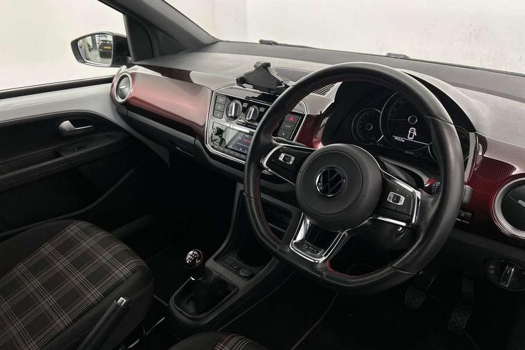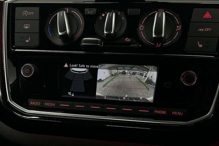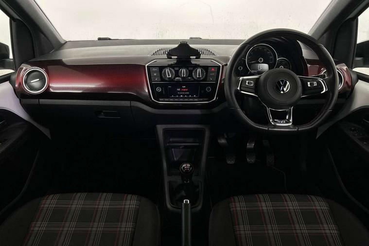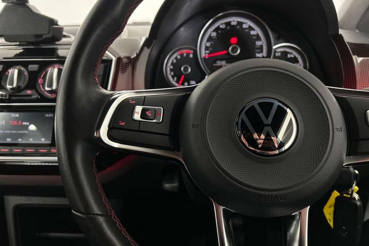 Chrome surrounds to the air vents, radio controls and air conditioning, Matt chrome trim on interior door handles, infotainment system + instrument cluster, Red pixels dash pad, GTI styling pack - Up, Winter pack - Up, 17" Oswald alloy wheels with anti theft wheel bolts, Tyre mobility system, Electronic engine immobiliser, Locking fuel filler cap, Remote central locking with 2 remote folding keys, Composition colour system with 5" screen, DAB, AUX in socket, SD card, MP3/WMA/AAC, 4 X 20W, bluetooth, audio connection and USB connectivity, Smartphone answering button on multifunction steering wheel with audio over the vehicle speaker system, Smartphone interface navigation system, 3 point front seatbelts with pre-tensioners, Anti-lock braking system with EDL, EBD + TCS, Curtain airbags for front and rear passengers, Driver and front passenger airbag with front passenger airbag deactivation, Driver/front passenger side airbags, Engine drag torque control, Front disc brakes, HBA (Hydraulic Brake Assist), High tone horn, Hill hold control, Rear drum brakes, Red brake calipers, Two 3 point rear seatbelts, Tyre pressure loss indicator, Volkswagen roadside assistance, Warning buzzer and light for front and rear seat belts if unfastened, Antenna, Black decals above door sill, Black radiator grille, Body colour door handles, Body coloured bumpers, Chrome trimmed surround on light, Door sill protectors in stainless steel with black honeycomb pattern inset and GTI logo, Electric front windows, GTI badge, Halogen clear headlights with integrated indicators and range adjustable, Heated rear window, High level 3rd brake light, LED daytime running lights, LED rear number plate lights, Left side chrome exhaust tailpipe, Manually dimming rear view mirror, Rear fog lights, Rear tailgate spoiler in gloss black, Rear tinted glass from B pillar backwards, approx 65% tinted, Rear wash/wipe, Red Stripe on lower tailgate, Red stripe with chrome detailing on lower radiator grille, Unique GTI badging on front wings, rear tailgate and front radiator grille, Windscreen wipers intermittent wipe, 12V accessory power point in centre console, 2 cup holders in the front and rear centre console, Ambient lighting red below upper dashpad, Black roof lining, Cooled glovebox, Driver seat height adjust, Drivers and front passengers easy entry sliding seat with memory function, Drivers and front passengers sun visors with vanity mirrors, Easy entry aid for access to rear seats with memory function, Folding front seat backrest release on front passenger seat, Front and rear carpet mats with contrast stitching in red and grey, Front head restraints, Front sports seats, GTI logo and red contrast stitching on steering wheel, Heating/ventilation unit with 4 speed fan, Height adjustable rear seat head restraints with red contrast stitching (x2), Height adjustable steering wheel, Interior light delay, Isofix Preparation 2 Rear child seats, Jacara red cloth upholstery, Jack and tool kit, Luggage compartment cover, Luggage compartment lighting, Multifunction leather trimmed three-spoke steering wheel, gear knob and handbrake grip, Storage compartment in front doors, Two rear seats with 60/40 split folding rear seat backrest, Variable boot floor, Digital clock, Lane assist, Multifunction computer, One touch indicators, Rev counter, Speed sensitive power steering, Speedometer, electronic odometer and fuel gauge, Volkswagen connect, Body lowered sports suspension, Galvanished body, Start/stop function with battery regeneration,