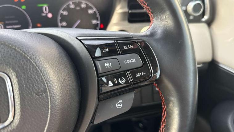 7" TFT instrument cluster, Adjustable speed limiter, Agile handling assist, BLIS (Blind Spot Information System) with Cross Traffic Monitor, Bluetooth hands free telephone connection, Drive modes select (Eco, normal and sport), eCall emergency system, Electric power steering, Emergency stop signalling system, Forward collision warning, Handsfree power tailgate with walkaway close, Honda CONNECT with navigation, 9" touchscreen, AM/FM/DAB/Apple Carplay and android auto, Honda sensing with blind spot information, adaptive cruise control and lane keep assist, Idle stop, Intelligent speed limiter, Low speed following, Rear parking sensors and rear view camera, Tachometer, Traffic sign recognition, WiFi connectivity, Wireless charger, Vehicle stability assist, 'Shark fin' mobile antenna, 2 USB sockets in rear, 2x USB Front socket (1 data & 1 charge), Premium audio system, Steering wheel mounted remote controls, Auto dimming rear view mirror, Auto headlight levelling, Auto high beam, Automatic coming home lighting, Automatic headlights, Automatic rain sensing wipers, Body colour bumpers, Body colour tailgate spoiler, Body coloured door handles, Electric front and rear windows, Electrically adjustable and heated door mirrors, Exterior and interior unique colour scheme (orange, white & blue accents), Front sequential turn, Front wiper de-icer, Headlight washers, Heated front windscreen, Heated rear window, High gloss side window surrounds, High level third brake light, LED cornering lights, LED daytime running lights, LED front fog lights, LED headlamps, Rear side wing doors, Rear wiper, Retractable/reverse auto tilt door mirrors, Roof rails, Smoked tail lights, Two tone roof, Variable front intermittent wipers, Windscreen shadeband, 3 rear headrests, 3 seat bench in 2nd row, 60/40 split folding rear seat, Ambient interior lighting, Cargo net hooks, Courtesy lights, Driver seat back pocket, Driver's seat height adjustment, Driver/passenger sunvisors with illuminated vanity mirrors, Dual automatic air conditioning, Front and rear map reading lights, Front head restraints, Front seat armrests, Heated front seats, Heated steering wheel, Isofix points, Luggage area under floor storage box, Magic seat flexibility system, Manual height/reach adjust steering wheel, Paddle shift controls, Passenger seat back pocket, Rear centre armrest, Rear ventilation, Single front passenger seat, Smooth leather steering wheel, Tonneau cover, Trunk cargo band, Trunk light, 3x3 point rear seatbelts, ABS+EBD+Brake assist, Anti-whiplash front headrests, Collision mitigation braking system, Collision mitigation throttle control, Deflation detection system, Dual front SRS airbags, Electric child locks, Electronic parking brake, Front and rear curtain airbags, Front and rear safety belts with Emergency Locking Retractor, Front side airbags, Hill descent control, Hill start assist, Low speed safety system, Passenger SRS airbag cut-off device, Regenerative braking system, Door deadlocks, Immobiliser, Keyless smart entry with push button start, Mirrors and windows key fob operation, Remote central locking with 2 remote folding keys, Security alarm, 18" Black cut alloy wheels, Tyre repair kit,