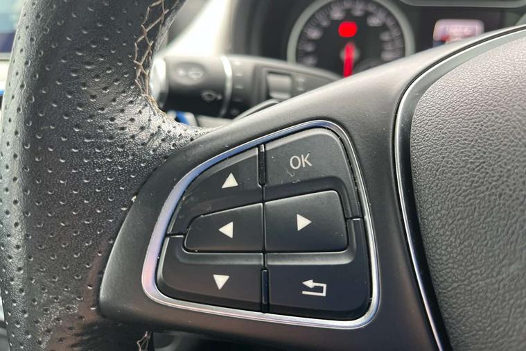 8" colour display screen, Attention assist, Collision prevention assist, Drive mode selector, External temperature gauge, Instrument cluster with 4.5-inch TFT colour display, Low fluid warning light, Mercedes-Benz emergency call, Multi function trip computer, Park assist pilot with front and rear park assist, PAS, Reversing camera, Service indicator (ASSYST PLUS), Smartphone integration with Apple CarPlay, Comfort suspension, Diesel particulate filter, Bluetooth audio streaming, USB port, Adaptive brake lights, Automatic headlamp activation, Body colour bumpers, Body colour door handles, Body colour door mirrors, Chrome beltline trim, Chrome rear bumper inserts, Door sill plates with "Mercedes-Benz" lettering, Electric front/rear windows/one touch operation, Electric heated + adjustable door mirrors, Heated rear window with timer, Heated windscreen wash system, LED daytime running lights, LED rear lights, Radiator grille with 2 louvres in Iridium silver with chrome trim, Rain sensor windscreen wipers, Rear wiper, Twin exhaust tailpipes with chrome finishers, 1/3 to 2/3 split folding rear seats, 12V socket in rear centre console, 2 Position luggage floor, 3 spoke leather multi function steering wheel with silver chrome trim, Ambient interior lighting, Artico man-made leather upholstery, Auto Mercedes-Benz child seat recognition sensor, Centre console with cupholders, Door centre panels in artico man-made leather, Driver and passenger underseat storage box, Driver/front passenger seat height adjustment, Driver/passenger sunvisors and illuminated vanity mirrors, Dual zone automatic climate control, Footwell lights, Front headrests, Heated front seats, Height adjustable headrests, Height/reach adjustable steering column, Isofix rear child seat fastenings, Leather trimmed gearshift with chrome inserts, Load compartment cover, Luggage compartment lighting, Reading lights, Rear armrest with 2 cupholders and load through provision, Rear headrests, Seat cushion angle adjustment, Sliding front centre armrest with storage compartment, Sliding rear seats, Storage compartment in centre console, Storage compartment in front doors, 5 x 3 point seatbelts, ABS with Brake Assist, Child proof door locks, Crash responsive emergency lighting, Drivers knee airbag, Dual stage driver/passenger airbags, Electronic parking brake, ESP with ASR, Front and rear seatbelt reminder, Front passenger airbag deactivation, Front seat side impact airbags, Hill start assist, Seat occupancy sensor, Tyre pressure monitoring system, Warning triangle and first aid kit, Window airbags, Alarm system/interior protection/immobiliser, Locking wheel bolts, Remote central locking, Air vents in Silver-chrome, Sail pattern dash trim, 17" 5 twin spoke alloy wheels, Tirefit sealant with electric air pump,