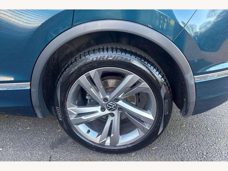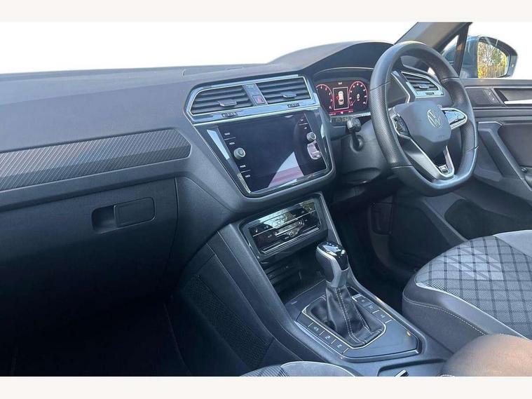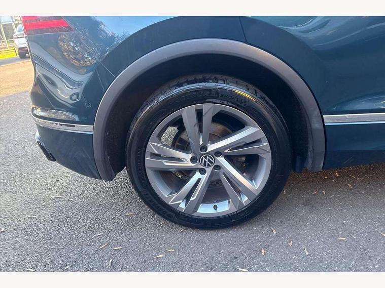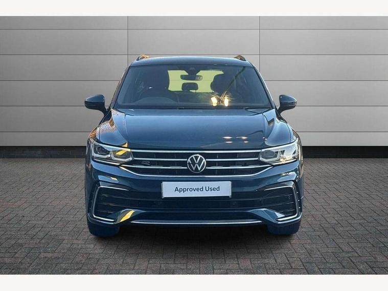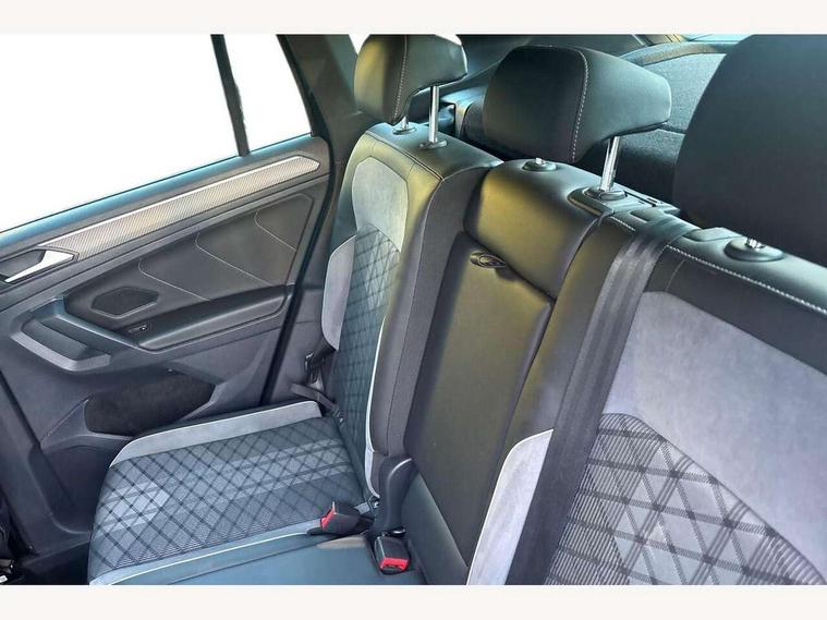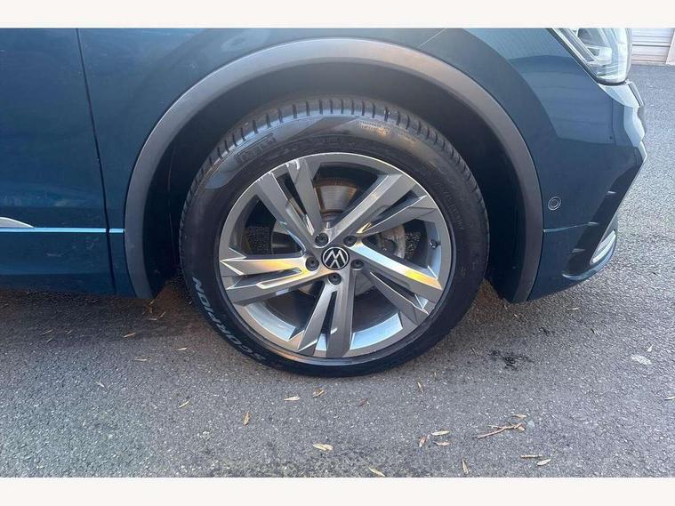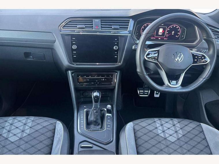 Adaptive cruise control ACC stop and go including speed limiter, App-Connect incl. App-Connect Wireless for Apple CarPlay and Android Auto, Bluetooth phone integration system, Comfort drive travel assist, Digital cockpit pro, Driver alert system, Driver profile selection, Dynamic road sign display, eCall emergency call system, Electromechanical speed sensitive power steering, Emergency assist, Front and rear parking distance sensors, Instrument cluster mph speedometer Great Britain, Lane keeping system Lane Assist, Lights on warning, Multifunction front facing camera, Outside temperature display, Premium multifunction display with multi colour display, Preparation for subsequent activation Navigation feature Discover Media includes Streaming and Internet, Remote control boot opening, Rev counter, Service interval indicator, Speed limit display, Start/stop system with regenerative braking, Tailgate/trunk lid unlocking from outside, Trip computer, Warning sound and light for doors and tailgate open, Battery regeneration during braking, Sports suspension, 8 Speakers, Digital radio reception DAB+, Diversity antenna for FM reception, Radio, Auto dimming interior rear view mirror, Automatic headlight control system, Body colored bumpers in R-Line style, Body colored exterior mirror housings, Body colour door handles, Chrome moldings on the side windows, Coming/leaving home lighting function, Dynamic headlight range control, Front and rear electric windows, Heated rear window, High level 3rd brake light, Laminated safety glass windshield, heat and sound insulating, LED headlamps with LED separate daytime running light and dynamic cornering light, LED rear combination lamps, LED rear number plate lights, License plate carrier in front and rear, Poor weather light and cornering light, Power adjustable, folding and heated door mirrors with surround lighting, front passenger exterior mirror lowering function, Privacy glass for rear side windows and rear window, R Line body kit, R Line side sills, Rain sensor, Rear exhaust tailpipe, Rear fog lamp, Rear side wing doors, Rear spoiler in R style, Rear windscreen washer and wiper with interval delay, Side and rear windows in heat insulating glass, Trailer Stability Programme, Unique R Line badging, Windscreen wipers/ intermittent wipe + 4 position delay, 12V outlet in center console rear and in luggage compartment, 12V outlet in front and tray, 2 LED front reading lights, 2 LED rear reading lights, 3 bench rear seats in 2nd row, 3 rear headrests, Air Care Climatronic 3 zone automatic climate control with enhanced air filter and controls in the rear, Art Velours greyson sports cloth upholstery, Backrest release for left front seat, Black headlining, Brushed stainless steel pedals and footrest, Carpet mats in front and rear with decorative stitching in Gray, Climate control unit rear with touch function, Door and side trim panel in foam film, insert in leatherette, Driver + front passenger lumbar support, Front footwell illumination, Front scuff plates in aluminum with R-Line logo, Front seats head restraints (x-adjustment), Height adjustable front seats, Height/reach adjust steering wheel, Isofix Preparation 2 Rear child seats, Leather gear knob, Rear bench seat asymetrically split folding, longitudinally movable and folding with load-through hatch and center armrest, Remote unlocking for rear seat backrest, Single front passenger seat, Sun visors with illuminated vanity mirrors, Top front comfort seats, Winter pack - Tiguan, 3 point seat belt for centre rear seats, 3 point seat belts with seat belt pretensioners for the outer rear seats, Curtain airbags for front and rear passengers, Driver/Front Passenger airbags, Drivers knee airbag, Electronic parking brake with auto hold, Electronic Stability Control with driver steering recommendation, ABS, ASR, EDL, EDTC and trailer stabilization, Front assist with autonomous emergency braking (for Adaptive Cruise Control ACC up to 130 mph), Front disc brakes, Front passenger airbag deactivation, Front side airbags, Height adjustable front 3 point seatbelts + pretensioners, Manual child proof rear door locks, Pedestrian monitoring system, Proactive passenger protection system in combination with front assist, Rear disc brakes, Two tone horn, Tyre pressure loss indicator, Warning sound and light for front seat belts if unfastened, Warning triangle, Anti theft alarm system with interior monitoring, backup horn and towing protection, Anti theft wheel bolts, Electronic engine immobiliser, Keyless locking and starting system keyless access with safelock, Chrome elements on the mirror switch power window switches and door pulls, Decorative inserts Carbon Gray for dashboard and front door trim panels, Interior door handle in matte chrome, 19" Valencia alloy wheels with AirStop tyres, Tool kit, Tyre mobility kit Includes 12V compressor and tyre sealant,