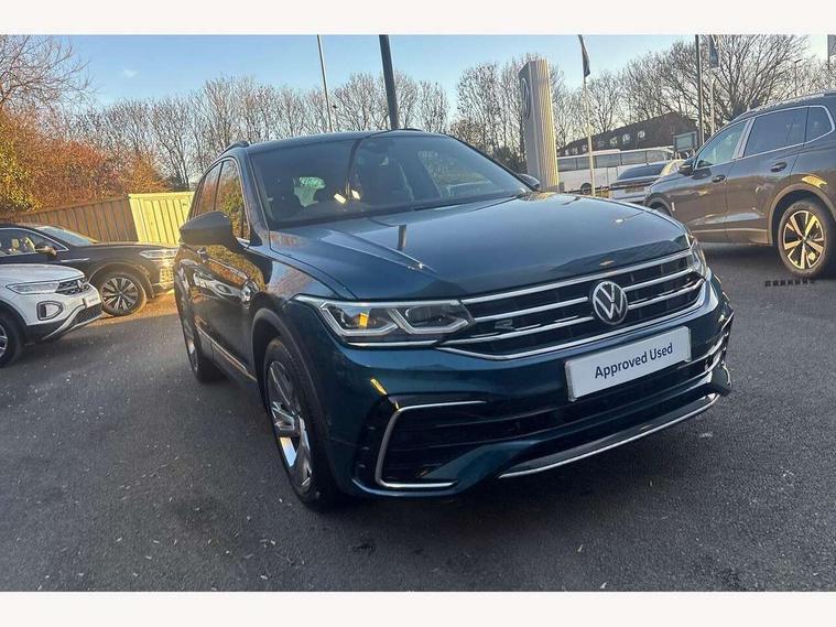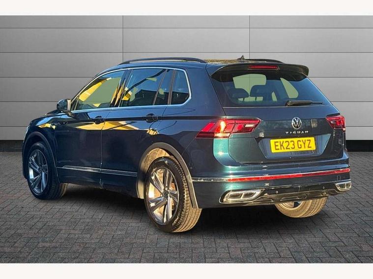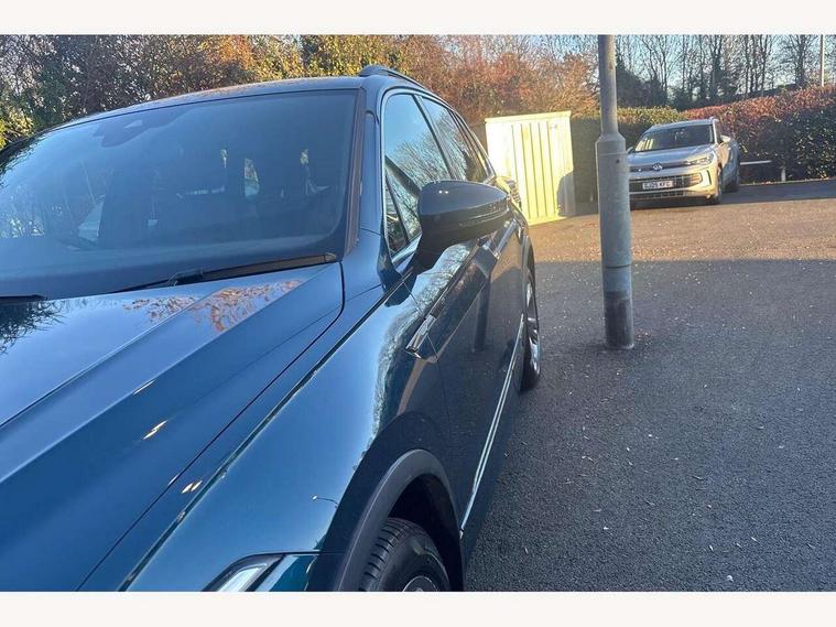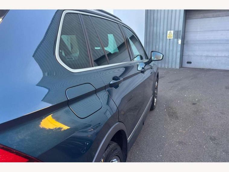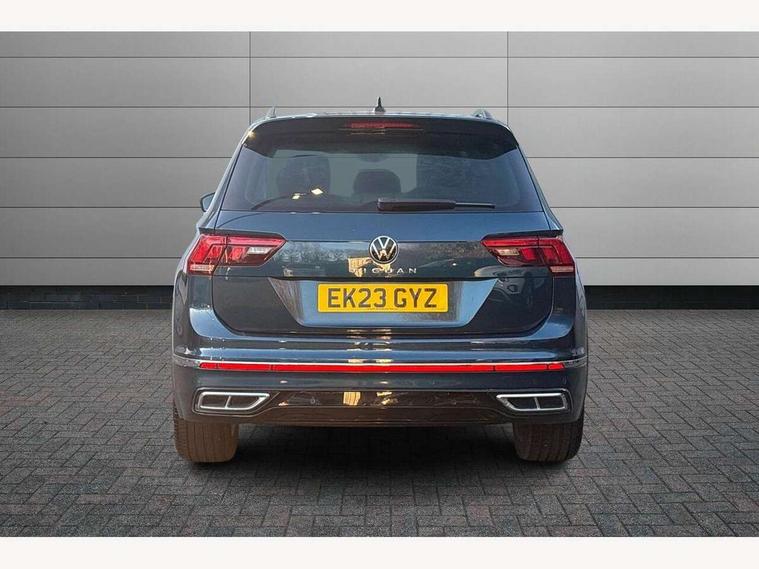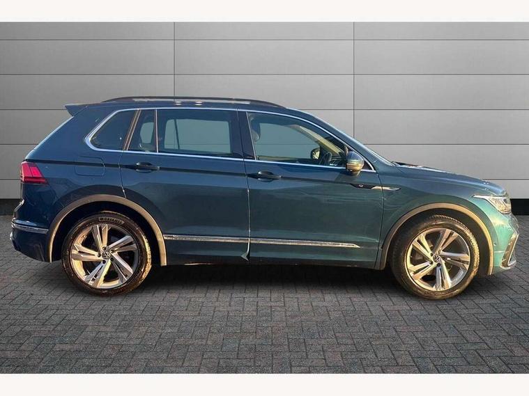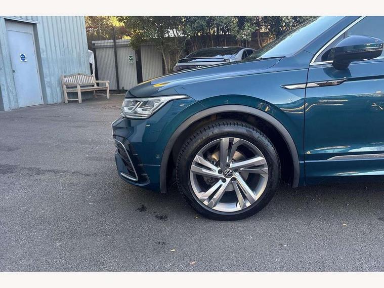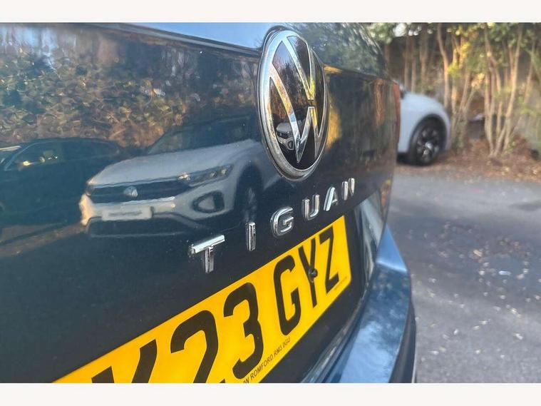 Adaptive cruise control ACC stop and go including speed limiter, App-Connect incl. App-Connect Wireless for Apple CarPlay and Android Auto, Bluetooth phone integration system, Comfort drive travel assist, Digital cockpit pro, Driver alert system, Driver profile selection, Dynamic road sign display, eCall emergency call system, Electromechanical speed sensitive power steering, Emergency assist, Front and rear parking distance sensors, Instrument cluster mph speedometer Great Britain, Lane keeping system Lane Assist, Lights on warning, Multifunction front facing camera, Outside temperature display, Premium multifunction display with multi colour display, Preparation for subsequent activation Navigation feature Discover Media includes Streaming and Internet, Remote control boot opening, Rev counter, Service interval indicator, Speed limit display, Start/stop system with regenerative braking, Tailgate/trunk lid unlocking from outside, Trip computer, Warning sound and light for doors and tailgate open, Battery regeneration during braking, Sports suspension, 8 Speakers, Digital radio reception DAB+, Diversity antenna for FM reception, Radio, Auto dimming interior rear view mirror, Automatic headlight control system, Body colored bumpers in R-Line style, Body colored exterior mirror housings, Body colour door handles, Chrome moldings on the side windows, Coming/leaving home lighting function, Dynamic headlight range control, Front and rear electric windows, Heated rear window, High level 3rd brake light, Laminated safety glass windshield, heat and sound insulating, LED headlamps with LED separate daytime running light and dynamic cornering light, LED rear combination lamps, LED rear number plate lights, License plate carrier in front and rear, Poor weather light and cornering light, Power adjustable, folding and heated door mirrors with surround lighting, front passenger exterior mirror lowering function, Privacy glass for rear side windows and rear window, R Line body kit, R Line side sills, Rain sensor, Rear exhaust tailpipe, Rear fog lamp, Rear side wing doors, Rear spoiler in R style, Rear windscreen washer and wiper with interval delay, Side and rear windows in heat insulating glass, Trailer Stability Programme, Unique R Line badging, Windscreen wipers/ intermittent wipe + 4 position delay, 12V outlet in center console rear and in luggage compartment, 12V outlet in front and tray, 2 LED front reading lights, 2 LED rear reading lights, 3 bench rear seats in 2nd row, 3 rear headrests, Air Care Climatronic 3 zone automatic climate control with enhanced air filter and controls in the rear, Art Velours greyson sports cloth upholstery, Backrest release for left front seat, Black headlining, Brushed stainless steel pedals and footrest, Carpet mats in front and rear with decorative stitching in Gray, Climate control unit rear with touch function, Door and side trim panel in foam film, insert in leatherette, Driver + front passenger lumbar support, Front footwell illumination, Front scuff plates in aluminum with R-Line logo, Front seats head restraints (x-adjustment), Height adjustable front seats, Height/reach adjust steering wheel, Isofix Preparation 2 Rear child seats, Leather gear knob, Rear bench seat asymetrically split folding, longitudinally movable and folding with load-through hatch and center armrest, Remote unlocking for rear seat backrest, Single front passenger seat, Sun visors with illuminated vanity mirrors, Top front comfort seats, Winter pack - Tiguan, 3 point seat belt for centre rear seats, 3 point seat belts with seat belt pretensioners for the outer rear seats, Curtain airbags for front and rear passengers, Driver/Front Passenger airbags, Drivers knee airbag, Electronic parking brake with auto hold, Electronic Stability Control with driver steering recommendation, ABS, ASR, EDL, EDTC and trailer stabilization, Front assist with autonomous emergency braking (for Adaptive Cruise Control ACC up to 130 mph), Front disc brakes, Front passenger airbag deactivation, Front side airbags, Height adjustable front 3 point seatbelts + pretensioners, Manual child proof rear door locks, Pedestrian monitoring system, Proactive passenger protection system in combination with front assist, Rear disc brakes, Two tone horn, Tyre pressure loss indicator, Warning sound and light for front seat belts if unfastened, Warning triangle, Anti theft alarm system with interior monitoring, backup horn and towing protection, Anti theft wheel bolts, Electronic engine immobiliser, Keyless locking and starting system keyless access with safelock, Chrome elements on the mirror switch power window switches and door pulls, Decorative inserts Carbon Gray for dashboard and front door trim panels, Interior door handle in matte chrome, 19" Valencia alloy wheels with AirStop tyres, Tool kit, Tyre mobility kit Includes 12V compressor and tyre sealant,