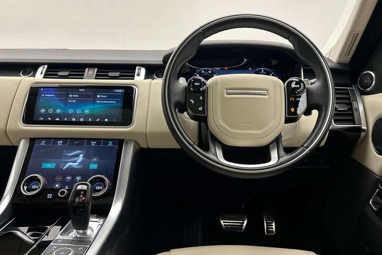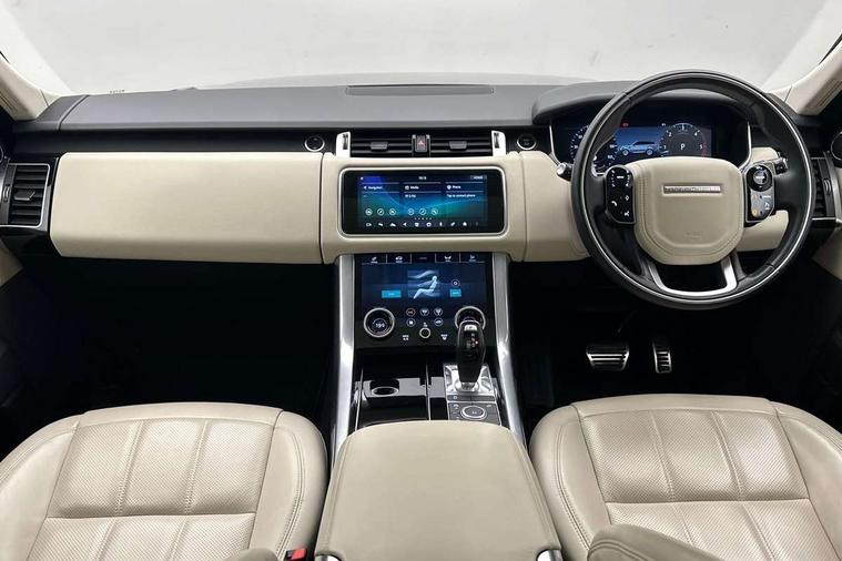 All Terrain Info Centre, Android Auto, Apple car play, Bluetooth connectivity, Electric power assisted steering (EPAS), Incontrol apps in vehicle touchscreen, Interactive Driver display instrument cluster, Mist sensor, Navigation pro system with 10" touch screen, app interface and media storage, Pro services and wifi hotspot, Push button start, Remote premium - Upgraded Incontrol remote app including remote climate control (engine dependent), remote lock + Unlock and remote beep + flash, TFT Virtual Instrument Panel, Touch pro duo system, Trip computer, Gradient release control (GRC), Bluetooth audio streaming, DAB Radio (Digital Audio Broadcasting), Incontrol protect - SOS emergency call with automatic collision detection, optimised assistance call and Incontrol remote app essential, USB/aux input socket, Acoustic front and toughened rear side glass, Acoustic laminated front windows, Adaptive brake lights, Auto dimming interior rear view mirror, Automatic headlights, Body coloured bumpers, Body coloured door mirrors, Centre high mounted stop light, Electric windows with one touch open/close and anti trap, Electrical towing preparation, Engine cover, Follow me home lighting, Front and rear recovery eyes, Front fog lights, Headlight power wash, Heated rear window, Heated windscreen includes heated washer jets, LED rear lamps, Privacy glass (Tinted glass rear of B pillar), Rain sensing windscreen wipers, Rear fog lights, Rear side wing doors, Rear wash/wipe, Remote window closing, Side repeater indicators in mirror, Sport Badge in silver, Standard bonnet, Trailer stability assist, 2 way active front head restraints, 2 way rear head restraints, 3 seat bench in 2nd row, 60/40 load through rear seats, Auto air recirculation, Bright metal foot pedals, Centre console with armrest, Climate control memory, Customer configurable single point entry, Driver's footrest, Front and rear cupholders, Front door storage space, Front map lights, Front seat back map pockets, Front stowage pocket, Front/rear passenger grab handles, Heated steering wheel, Isofix child seat preparation, Leather steering wheel with Atlas inserts, Loadspace light, Loadspace mounting provisions, Lockable glovebox, Multifunction steering wheel, Pollen filter, Power socket, Reach/rake electric adjustable steering column + entry/exit tilt away, Rear centre armrest, Rear ISOFIX, Roller blind loadspace cover, Satin chrome gearshift paddles, Single front passenger seat, Three 12V accessory power outlets, Smartphone pack - Range Rover Sport, 3 point seatbelts on all seats, Anti-lock braking system (ABS), Brake pre-fill technology, Cornering brake control (CBC), Curtain airbags, Customer configurable autolock, DSC - Dynamic Stability Control, Dual stage driver/passenger airbags, EBD - Electronic brakeforce distribution, Electric parking brake, Electronic traction control, Emergency braking includes city, urban AEB and pedestrian, Front seatbelt pretensioners, Gradient acceleration control, Grey anodised brake calipers, Height adjustable front seatbelts, Hill descent control, Hill launch assist, Low traction launch, Passenger seat occupant detector with front airbags, Power operated child locks, Roll stability control, Seatbelt warning, TPMS (Tyre pressure monitoring system), Immobiliser, Intrusion sensor, Keyless entry, Locking wheel nuts, Perimetric and volumetric anti theft alarm, Remote locking, Grand black veneer,