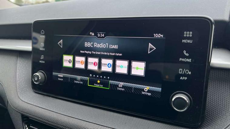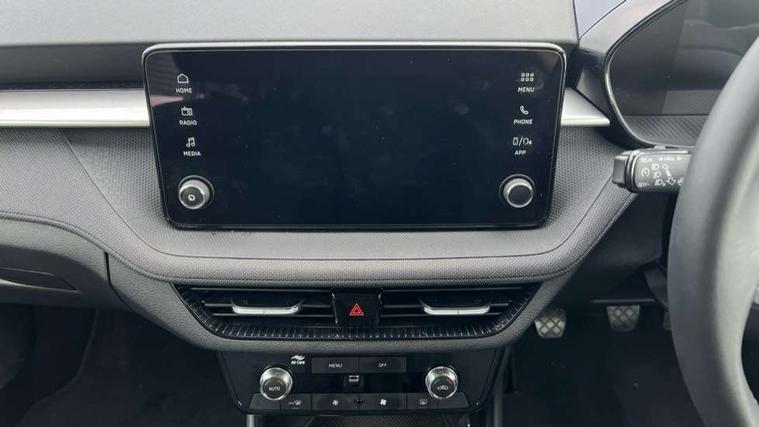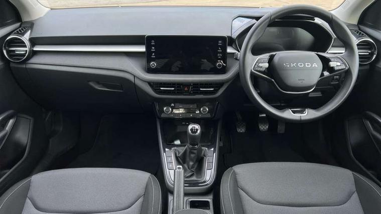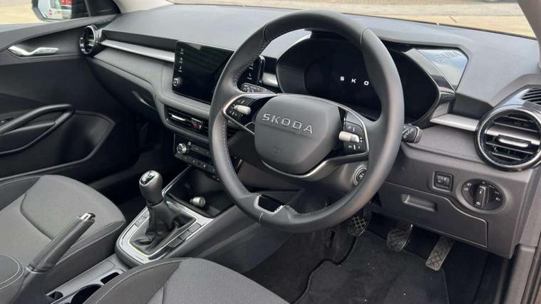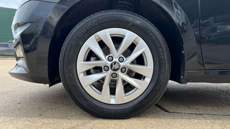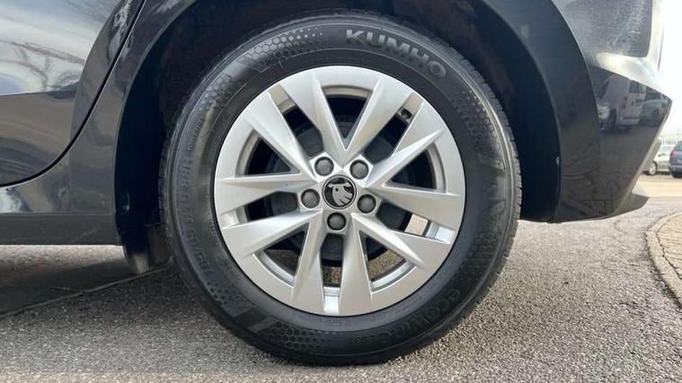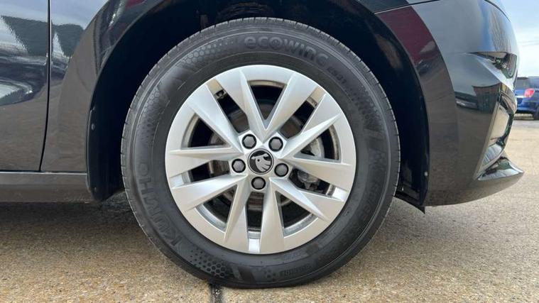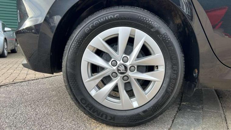 8" Digital instrument display, Advanced driver attention and drowsiness monitor, Bluetooth connection, Electromechanical power steering, Exterior temperature gauge, Service interval indicator, Traffic sign recognition, Wireless SmartLink for Apple CarPlay and Android Auto, 6 Speakers (4 in front and 2 in rear), 8.25" Skoda infotainment touchscreen display, Auxiliary socket for external MP3 player, DAB digital radio reception, Auto dimming rear view mirror, Body colour door mirrors, Body coloured bumpers, Door mirror integrated indicators, Front and rear electric windows, Front window wiper intermittent control, Headlight range control - Automatic, Ice scraper in fuel cap, LED 3rd brake light, LED daytime running lights with coming and leaving home feature, LED rear lights, Rear LED fog light, Rear side wing doors, Rear window wiper with washing nozzles, Roof mounted spoiler, SKODA tailgate lettering in chrome, Unique dark chrome design logo on alloy wheels, 2 reading lights in front and 2 reading lights in rear, 3 rear headrests, Backrest split and folding, Central console with removable cup holder and storage box, Chrome handbrake release button, Dual zone air conditioning with climatronic electronic control, Fabric upholstery, Front centre armrest, Gearshift knob/handle in leather, Grain satin black interior door handles, Hand brake lever handle in leather, Height adjustable front headrests, Height adjustable front seats, Height adjustable steering wheel, ISOFIX and TopTether anchorage points to the outer rear seats, ISOFIX and TopTether on the front passenger seat, Luggage compartment lighting, Manually adjustable lumbar support in front seats, Pollen filter, Rear seat bench unsplit, Single front passenger seat, Skoda lettering on steering wheel, Storm grey headlining, Sun visors with mirror and airbag label on passenger side, Textile floor mats, Ticket holder, Umbrella in drivers door, 3-point height adjustable front seats belts with pretensioner and force limiter, Automatic warning lights in case of crash, Driver and passengers airbag with switch off function, e-Call+, ESC including ABS, MSR, ASR, EDS, HBA and XDS, Front and rear seat belt warning, FRONT ASSIST (AEB City and AEB Inter Urban), Front side airbags, Head airbags, One tone horn, Pedestrian protection, Three rear 3-points safety seat belts with pretensioner and force limiter including stop function for outer rear seat belts, Tyre pressure monitoring system, Anti-theft alarm system including immobiliser, interior monitoring, backup horn, and towing protection, Central locking with radio remote control, interior controls, SAFE function and 2 foldable keys, Black painted air vents, Grain satin black central console cover, Metallic grey upper decorative trim, Satin black door and side trim panel in front, Textile Kota grey lower decorative inserts, Anti-theft wheel bolts protection, Super-low rolling resistance tyres,