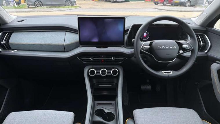 13" satellite navigation touchscreen display, Blind spot detection with door exit warning, Bluetooth system, ChatGPT functionality, Driver alert - Fatigue and drowsiness monitor, Dry display cleaner, Emergency call, Front and rear parking sensors, Front cross traffic assist, Lane assist, PAS, Rear traffic assist, Rear view camera, Tailgate unlocking from outside, Traffic sign recognition, USB C Port x 2 in front centre console, Virtual Cockpit - 10.25" digital display, Voice control system, Wireless charging for two smartphones (15W) with cooling function, Wireless SmartLink for Apple CarPlay and Android Auto, 32A charging cable, Stop/start function, 2x USB-C in the rear, 8 Speakers, DAB Digital radio, Aero front windscreen wipers with intermittent function, All weather light, Auto dimming rear view mirror, Black wheel arch surrounds, Body colour bumpers, Body colour door mirrors and handles, Cornering light and poor weather light, Electric folding /adjustable/separted heated/folding door mirrors, auto dimming with boarding sports and memory function, Electric front and rear windows, Exterior black decorative trims, Heat insulating glass in windshield, Heated rear window, Ice scraper in fuel tank cap, Invisible tailpipe, LED daytime running lights, LED front fog lamps, LED Headlights, LED rear fog light, LED rear lights, LED third brake light in rear spoiler, Light assistant with automatic headlight control and coming home feature, Logo projection in door mirrors, Rear roof spoiler, Rear side wing doors, Rear window wiper, Safety reflectors on front and rear doors, Unique dark chrome design logo on alloy wheels, Window control switches with black trim, Windscreen wipers with rain sensor, Without engine designation, 1.5l bottle holder points in all door, 1x centre rear reading light, 3 configurable smart dials with 32mm coloured display, 3 seat bench in 2nd row, 4 foldable roof handles with rear coat hooks, Ambient interior lighting - Dashboard, front-door stowage compartments, front and rear door panels and footwell lighting, Automatic gear selector on steering column, Chrome interior door handles, Driver/front passenger reading lights, Fabric headlining, Fixed bench 40:60:40 split folding backrests, Front and rear floor mats, Front centre armrest with jumbo box storage compartment, cup holder and 12V socket, Height adjustable front headrests, Isofix child seat fittings in outer rear seats and front passenger with top tether, iV badging on boot, Manual height adjustment for front passenger seats and thigh support extender, Manual lumbar support for front passenger seat, Manually adjustable steering column, Pollen filter, Rear centre armrest with cupholders, Rear seat boot backrest release, Single front passenger seat, Skoda lettering on steering wheel, Storage pocket including mobile phone pockets on the backs of the front seats, Sunvisors with illuminated vanity mirrors, Three rear height adjustable headrests, Ticket holder on A Pillar, Tri zone climate control, Umbrella in door panel x1 made from sustainable materials, Upper and lower glovebox with card holder and coin compartment, USB C port by rear view mirror for charging only (15W), Auto door release and activation of warning lights in the event of an accident, Driver and front passenger airbag with knee airbag and front passenger airbag deactivation, Electric child locks, Electronic parking brake, ESC (incl. ABS+EMD+MSR+ASR+EDL+HBA+DSR+RBS+ESBS+MCB+TSA+XDS), Front assist with braking reaction to vehicles, pedestrians and cyclists, Front disc brakes, Fuel cut off safety device, Height adjustable front 3 point seatbelts + pretensioners, Hill hold assist, Junction assist with automatic emergency braking, Rear disc brakes, Safety vest holder in door, Seat belt reminder for all seats, Three point rear seat belts, Two tone horn, Tyre pressure monitor, Alarm with interior monitoring and tilt sensor with safe function, Anti-theft wheel bolts, Immobiliser, Remote central locking with 2 keys, Breakdown kit, Tool kit,