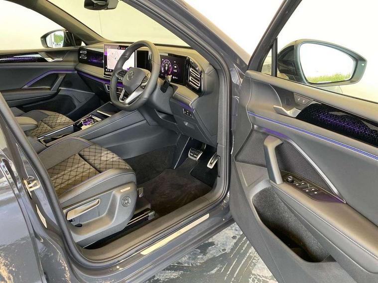 Adaptive cruise control (ACC), Advanced driver attention and drowsiness monitor, Bluetooth mobile phone interface, Digital Cockpit Pro - 10.25" high resolution dash display screen with customisable menus and information, Driving profile selection, Dynamic road sign display, E-Sim card for online connectivity, Easy Open and Close Electric tailgate with virtual pedal activation, eCall emergency call service, Extended safety system (proactive passenger protection system), Front Assist - Autonomous emergency braking with pedestrian and cyclist monitoring, IDA voice assistance with ChatGPT, Inductive smartphone charging without external antenna connection, Lane change system, Side assist, Rear traffic alert and Exit warning system, Multifunction front facing camera, Navigation system, Oncoming vehicle braking when turning including swerve support, Park assist plus with park distance control, Power assisted steering with speed sensitive, Start/stop system with regenerative braking, Tailgate/trunk lid unlocking from outside, Warning signal and warning light for front and rear seatbelts not fastened, Wireless App-Connect, Front shock absorption, Front wheel drive, 12.9" infotainment display, Digital radio reception (DAB), Diversity antenna for FM reception, 3D rear combination light special signal pattern, Ambient lighting with logo projection, Auto dimming interior rear view mirror, Automatic headlight control system, Body coloured door handles, Chrome moldings on the side windows, Coming/leaving home lighting function, Dynamic headlight range control with dynamic cornering light, Exterior mirrors convex on the left and aspherical on the right, Heat insulating glass in side and rear windows, Heat insulating windshield, High Beam Assist, automatic sensing for switching between dipped and main beam, High level 3rd brake light, Highway light, Illuminated door handle recesses, Illuminated lightline between headlamps, Illuminated logo front and rear, Laminated safety glass windshield, LED headlamps, LED separate signature day time running light, Poor weather light, Rain sensor windscreen wipers, Rear fog light on one side, reversing light on both sides, Rear side wing doors, Rear wiper, Remote electrically foldable door mirrors, puddle lights and reverse activated passenger's door mirror, 12V outlet in center console rear and in luggage compartment, 12V socket in centre console, 2 USB-C ports in the front, 2 USB-C charging sockets on the centre console in rear, charging capacity up to 45 W, 230V socket in luggage compartment, 3 bench rear seats in 2nd row, Air care climatronic 3 zone air conditioning system with rear air conditioning control panel, Black roof lining, Brushed stainless steel pedals, Carpet mats, front and rear, Centre console with illuminated storage compartment with sliding cover and two drinks holders, Chrome elements on the mirror switch and power window switches and door pulls, Door and side trim panel insert in Art velour, Drivers seat with manual adjustment of seat travel and height and backrest angle with thigh support longitudinally sliding, Front centre armrest, Front integrated head restraints, Front massage seats, Front scuff plates in aluminium, Front seats with manual height adjustment, Greyson sports cloth upholstery with inner side bolsters in artvelours, Interior ambient lighting with 30 colour options, ISOFIX anchors for child seats on outer rear seats and front passenger seat compatible with i-Size, Leather wrapped heated multifunction steering wheel with touch control and paddle shift, Mechanical rear seat release, Power adjustable lumbar support in front, Rear bench seat, split folding, longitudinally movable and folding with load-through hatch and centre armrest, Safety optimised front head restraints, Single front passenger seat, Sports comfort seats in front, Sun visors with illuminated vanity mirrors, Three rear head restraints, 3 point seat belt for centre rear seats, 3 Point seat belts in front with pretensioners, 3 point seatbelts in outer rear with ECE label, Driver and front passenger airbag with front passenger airbag deactivation, Electronic parking brake with auto hold, First aid kit with warning triangle and safety vest, Front and rear curtain airbags, Front centre airbag, Front disc brakes 1ZA, Hill start assist, Manual child proof rear door locks, Rear disc brakes, Rear side airbags, Two tone horn, Tyre pressure monitoring system, Alarm with interior protection, Central locking system keyless entry, Interior door handle in matte chrome, Soul instrument panel,