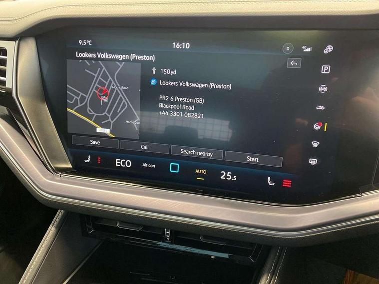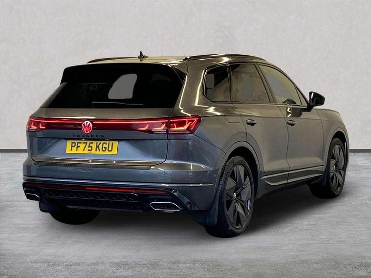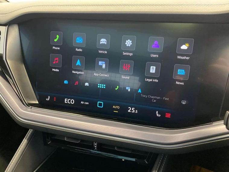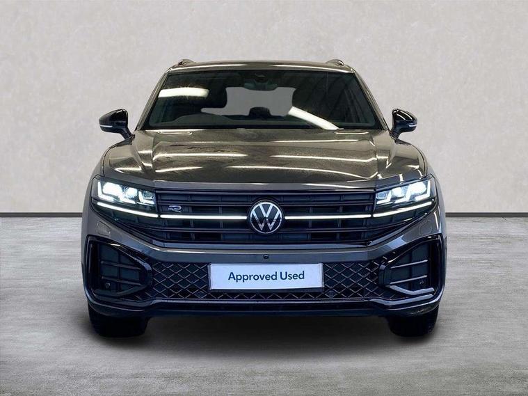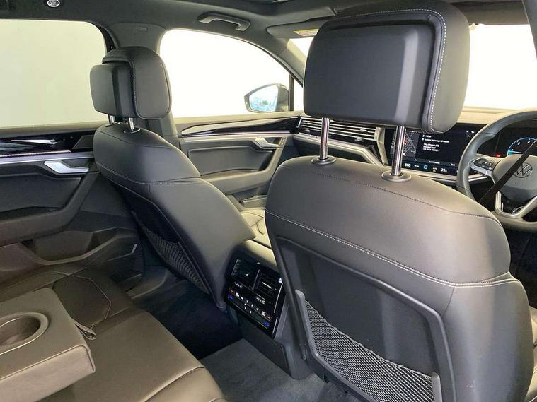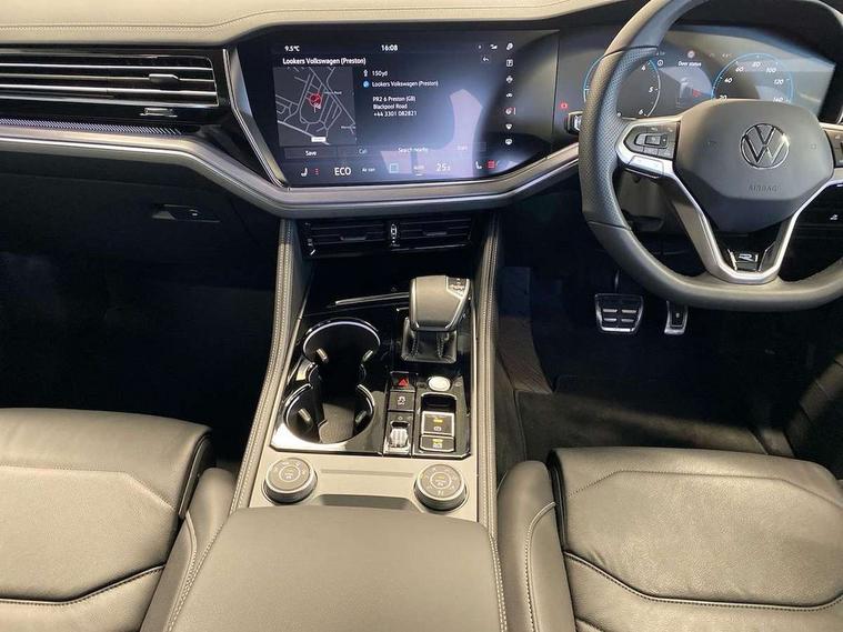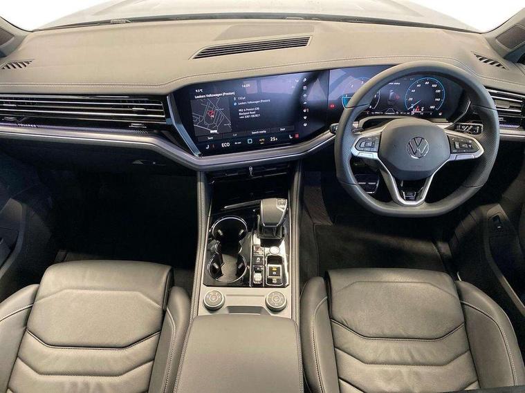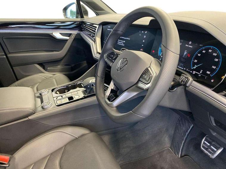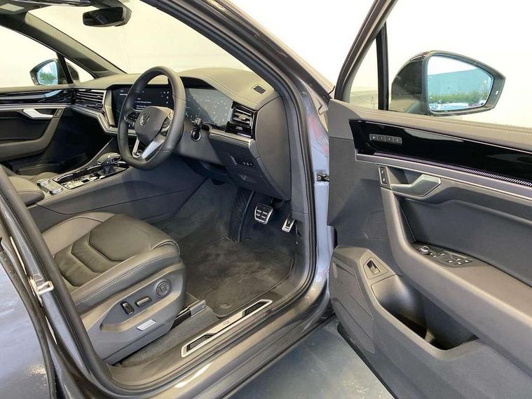 15" Screen Top infotainment system Premium (MIB3), Adaptive cruise control, Advanced driver attention and drowsiness monitor, Driver profile selection, Dynamic road sign display, E-Sim card for online connectivity, eCall emergency system, Innovision cockpit, Intelligent park assist, Mobile phone interface with inductive charging, Multi-colour Active Info display, Park Assist - Sensor controlled steering aid to assist parallel or bay parking, PAS, Warning signal and warning light for front and rear seatbelts not fastened, Wireless app connect, Adaptive chassis control, DAB Digital radio, Diversity antenna for AM/ FM reception, We Connect and We Connect Plus functionality, Automatic coming/leaving home lighting function, Automatic headlights, Black door mirrors, Black style comfort bumpers, Dynamic headlight range control with dynamic cornering light, Electric front tilt/slide panoramic sunroof and fixed rear sunroof, Electrically power adjustable, heated, folding, auto dimming, front passenger exterior door mirror lowering function, External USB type C socket and charging sockets, Gloss black roof rails, HD LED Matrix beam plus digital headlight projection with variable light distribution, Headlight washers, Heat insulating darkened glass in side and rear windows, Highway light, LED 3rd brake light, LED daytime running lights, LED rear combination lamp with variable lighting functions and special styling, Poor weather light, Privacy glass for rear side windows and rear window, tinted glass from B pillar backwards - 80%, Rain sensor, Rear exhaust tailpipe, Rear fog light with back up light on both sides, Rear light bar and illuminated logo, Rear side wing doors, Rear wiper, Stainless steel door sill protection, 12V socket in centre console, 3 rear headrests, 3 seat bench in 2nd row, 4 zone climate control, Airbag label on sun visor and B-pillar, Brushed stainless steel pedals, Double sun visors with illuminated vanity mirrors, Front + rear carpet mats, Front centre armrest, Leather wrapped multifunction sports steering wheel, heated, with touch control and shift paddles, Mechanical rear seat release, Power adjustable lumbar support in front, Power seats in front, right side with memory features and seat cushion depth adjustment, Rear seat backrest and split folding with center armrest, Single front passenger seat, Extra acoustics pack - Touareg, Memory pack plus - Touareg, 3 point seatbelts, outer rear with ECE lable, ABS, Child locks on rear doors, Curtain airbags, Driver and front passenger safety-optimised head restraints, Driver/Front Passenger airbags, Extended pedestrian protection measures, Front assist, Front seat side impact airbags, Generative braking with start and stop system, Height adjustable 3 point front seatbelts with pre tensioners, Passenger airbag deactivate switch, Three 3 point rear seatbelts, Two tone horn, Warning triangle and first aid kit, Alarm system with interior protection, Easy open and close sensor controlled luggage compartment opening and closing with remote unlocking, Keyless Access Keyless locking and starting system with SAFELOCK, Aluminium decorative inserts, Black decorative trims, Gloss black decorative inserts in centre console, Tool kit,