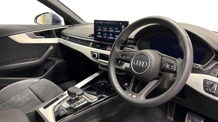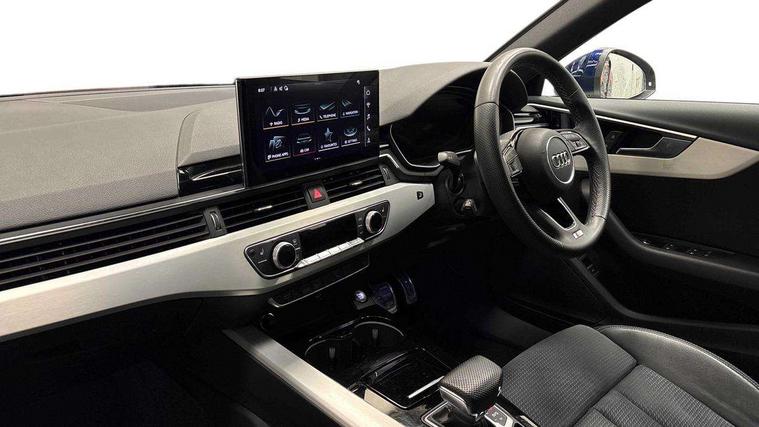 Audi connect safety and service (e-call), Audi connect with Amazon Alexa Integration, Audi drive select, Audi smartphone interface, Audi virtual cockpit, Automatic start-stop system with coasting functionality and efficiency programme, Bluetooth interface, Electromechanical power steering, Email, calendar and text messages displayed via MMI, MMI Navigation plus with MMI touch includes 10.1" high resolution colour MMI display, 3D map, Power operated tailgate, Voice control system, 54 litre fuel tank, Sports suspension lowered by 23mm, 2 USB charging ports, 8 passive loudspeakers, DAB digital radio reception, Aluminium roof rails, Auto dimming rear view mirror, Body colour door handles, Body colour front spoiler lip, Body colour side sill trim, Body coloured door mirrors, Electrically folding auto dimming/adjustable/heated door mirrors with LED side indicators and kerb view function for passenger side, Grained matt black side air inlets with matt aluminium silver inlay, High beam assistant, Honeycomb structure radiator grille in grained matt black, LED headlights with LED rear lights + dynamic rear indicators + headlight adjustment and high beam, turning light + LED daytime running lights, LED third brake light, Matt aluminium silver tailpipe trim, Privacy glass, Rain and light sensors, Rear side wing doors, Rear wiper, S Line badges on the front wings, S line front and rear bumpers with side skirts, S Line rear diffuser in matt anthracite black with trim strip in matt aluminium silver, S Line roof edge spoiler, Variable intermittent front wash/wipe, Windscreen with acoustic glazing, 3 spoke high multi-function sports leather steering wheel grips in perforated leather with S badging including paddle shift, 4 way electric lumbar support for driver and front passenger, 40/20/40 split folding 3 rear seat bench in 3 parts with rear centre armrest, Black cloth headlining, Black perforated leather gearknob, Contrast stitching on seats, steering wheel and gear lever gaiter, Deluxe 3 zone electronic climate control, Door sill trims with aluminium inlay, Electric load area cover, Front and rear head restraints, Front centre armrest, Heated front seats, Illuminated door sill trims with S logo, ISOFIX child seat mounting and top tether, Manual seat adjustment, Single front passenger seat, Stainless steel pedals and foot rest, High gloss package - A4, LED Interior light pack - A4/S4, 3 rear seatbelts, 6 airbags - Driver, front passenger, curtain and side windows, Electronic Stabilisation Control (ESC) including ABS, ASR and EDL, Hill hold assist, Multi collision brake assist, Pop-up bonnet for pedestrian protection, Pre sense city, Rear door child safety locks, Seatbelt monitoring, Warning triangle and first aid kit, Anti theft alarm, Anti theft wheel bolts, Central locking, Keyless Go, Matt brushed aluminium inlays, Tool kit, Tyre repair kit,