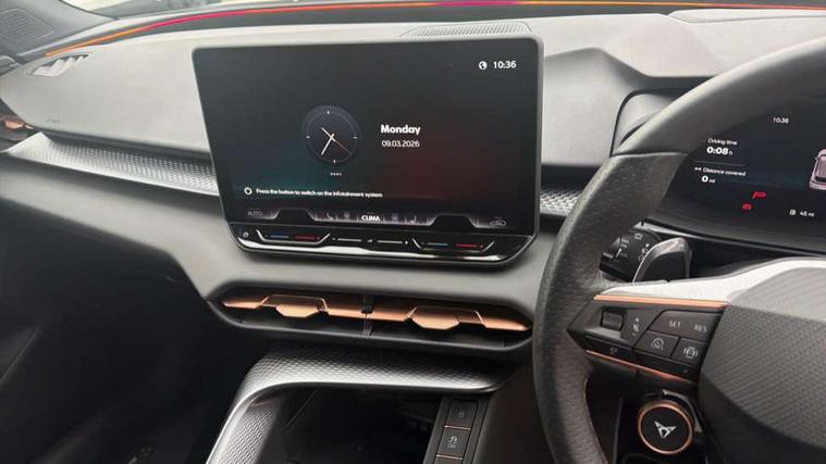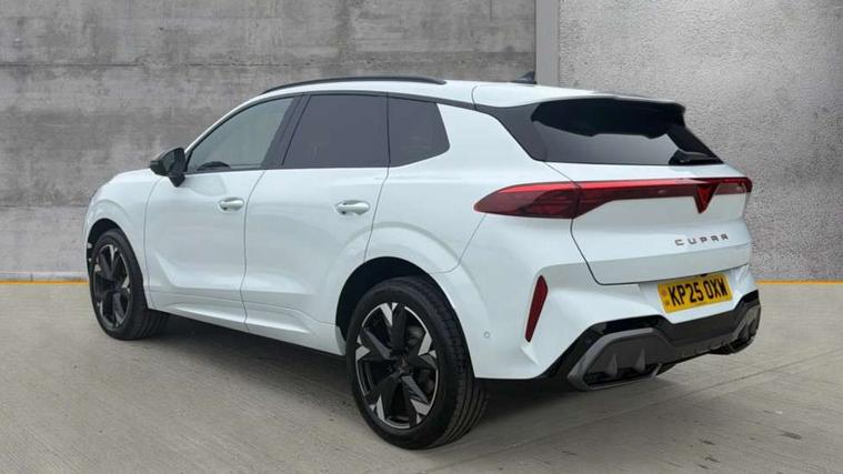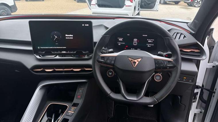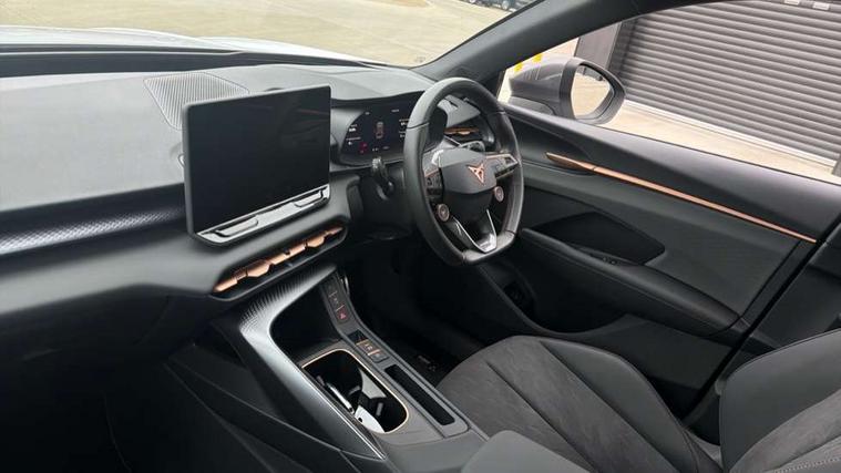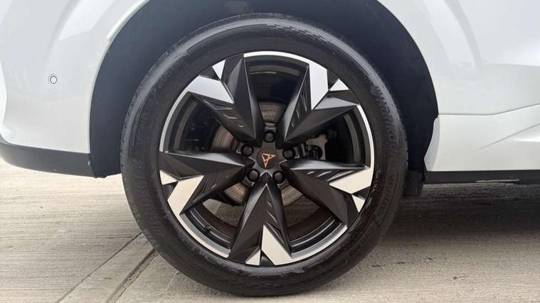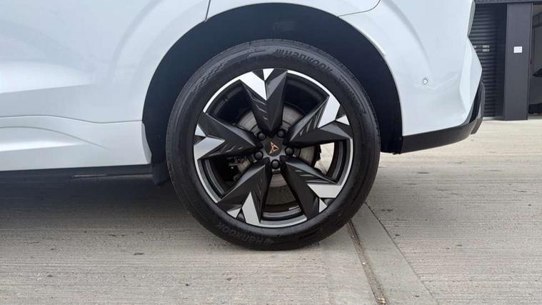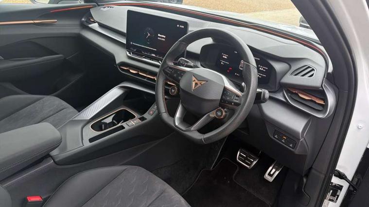 10.25" digital cockpit and configurable dashboard, Adaptive cruise control with follow-to-stop and speed limiter, Advanced driver alert system, Advanced lane assist with semi-automatic vehicle control in a medical emergency and traffic jam assist, Driving profile selection and conventional shock absorber, Dynamic road sign display, E-call, Electric tailgate with virtual pedal, Emergency steering support with turn assist, Front and rear parking sensors, Front assist (Forward collision warning with automatic braking) with multifunction camera and front cross traffic assist, Head up Display, Intelligent park assist, Media system with Nav - 12.9" touch display, voice control, full link phone (wired/wireless), DAB and Steering wheel mounted controls, Rear traffic assist, Side and exit assist, Speed sensitive power steering, Start/stop system with regenerative braking, Top view camera (front camera, rear camera, 2 side cameras), Wireless phone charger, Auto dimming rear view mirror, Black roof rails, CUPRA 3D rear lights with ceremony & swiping indicator and illuminated logo, Dark tinted rear windows, Daytime running lights with automatic headlight control and Coming and Leaving home function, Door mirrors with memory function and lowing function on passenger mirror, Dynamic headlight range control, Electric front/rear windows, Electrically adjustable, heated and folding door mirrors, Front fog lamps with cornering function, Heat reflecting windscreen, High beam assist, LED headlamps with signature "CUPRA LED", Rain sensing wipers, Rear fog light on one side, back up light on both sides, Rear side wing doors, Rear wash/wipe, Third brake light, Welcome lights (within exterior mirror housing), 3 seat bench in 2nd row, Black roof lining, Cupra sports pedals, Dinamica cloth upholstery, Driver seat memory function, Electrically adjustable front seats including lumbar support, Four x USB Type C ports (2 in front and 2 in rear), Front and rear head restraints, Front and rear reading lights X 4, Front centre armrest, Heated front seats, Heated leather wrapped multi function sports steering wheel with tiptronic, Illuminated interior front door sills, Isofix, Operating voltage 12V, Single front passenger seat, Smart wraparound interior lighting, Sunvisors with illuminated mirror, Three zone climate control with control panel in rear, Unsplit rear seat bench, split folding backrest, with centre armrest, Variable luggage/load compartment floor, 3 point seatbelts in front with pretensioner and electric height adjustment, 3 point seatbelts on all rear seats, Brake control system - ESC and brake booster, Child proof door locks, Driver and front passenger airbags, Electronic parking brake, Front and rear disc brakes, Front interaction airbag, Front passenger airbag deactivation switch, Front side airbags with curtain airbags, Pre-crash front and rear seat belt tensioner, window closure and hazard lights, Tyre pressure monitoring system, Visual and acoustic seat belt reminder, electric contact in front and rear, Anti theft alarm, Keyless locking and starting system with keyless access, Locking wheel bolts, Black decorative trims, Chrome interior detailing, 19" Spectrum exclusive machine alloy wheels, Tool kit,