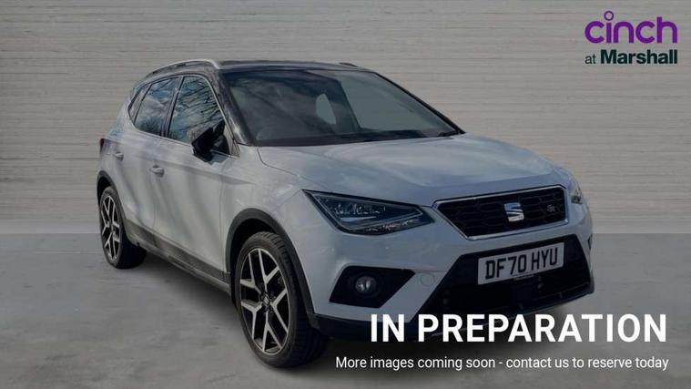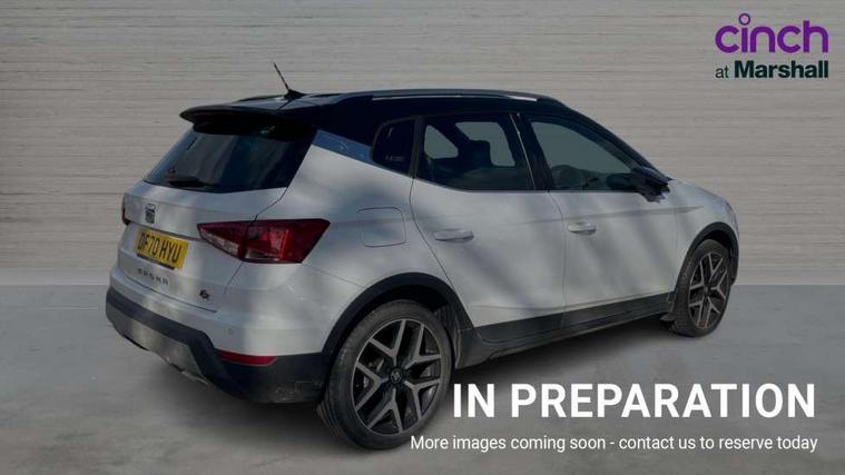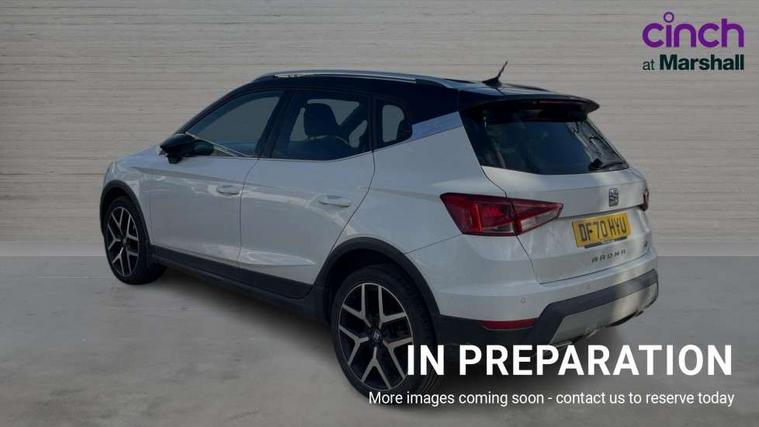 Interior chrome line trim, Leatherette dashboard, Connectivity pack plus - Arona, Interior chrome pack - Arona, 18" Performance alloy wheels, 2 folding remote keys with window open/close function, Alarm with back-up horn, Electronic engine immobiliser, Locking wheel bolts, Remote central locking + deadlocks, Tow away protection, 6 speakers, Bluetooth interface for hands free and audio streaming, DAB digital radio and AM/FM radio, Steering wheel mounted audio controls, 3 point seatbelts on all rear seats, ABS, Active front headrests, Child locks on rear doors, Driver and front passenger airbags with front passenger airbag de activation, front side and curtain airbags, Electronic stability control, Emergency Brake Assist (EBA) and front assist, Front and rear seatbelt reminder, Hill hold control, Multi-Collision braking, Tiredness recognition system, Traction control, Tyre pressure monitoring system, Anti theft roof antenna, Auto dimming interior rear view mirror, Automatic activation of hazard warning lights, Automatic headlights, Body coloured bumpers, Body coloured door handle inserts, Chrome front grille frame, Chrome roof rails, Chrome window trim, Coming/leaving home lighting function, Dark tinted rear windows, Electric front/rear windows with one touch/auto up/down, Electrically adjustable, heated and folding door mirrors, Full LED headlights dipped and mainbeam + front and rear fog lights, Ice metal door side panels, LED daytime running lights, LED rear tail lights and licence plate lights, Protective side mouldings, Rain sensing wipers, Rear window wash/wipe, Roof colour door mirrors, Twin exhaust pipe styling hidden exhaust pipe, Visible VIN plate, Windshield wiper with intermittent control and potentiometer, 2 cupholders, 60/40 split folding rear seat, Aircare filter, Black interior roof, Double boot floor, Driver sunvisor with covered mirror + card holder, Dual zone climate control, Front courtesy light with front reading lights, Front sport seats, Gear shift indicator, Heated front seats, Height adjustable front seats, Height/reach adjustable steering column, Illuminated boot, Instrument lighting with brightness control, Interior light in footwell, central console and door panel, ISOFIX points in outer rear seats with top tether anchorage points, Microsuede cloth upholstery, Multi-colour ambient interior lighting, Passenger sunvisor with vanity mirror, Perforated flat bottomed leather steering wheel/gear knob/handbrake with red stitching and FR logo, Two front and three rear height adjustable headrests, 'Lights On' Reminder warning buzzer, Cruise control and speed limiter, Digital clock, Digital cockpit, Electric speed sensitive power steering, Full Link Smartphone Integration with Mirror Link, Apple Car Play, Google Android Auto with USB cable for Apple and Android compatibility, Low fuel warning light, Outside temperature display, Rear parking sensor, RPM counter, Seat connect with safety, serivice, remote and online, SEAT Drive profile - Four different models normal-sport-eco-individual, steering response, throttle response, Trip computer, Sports suspension,