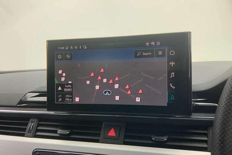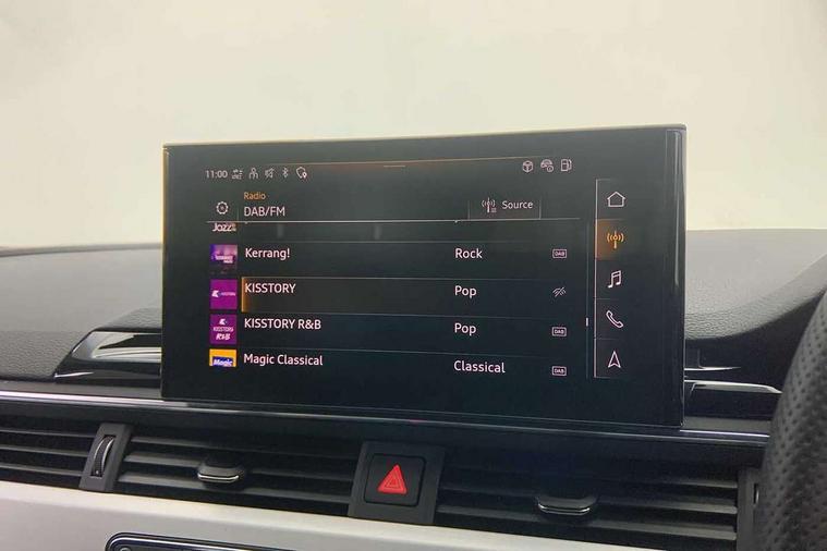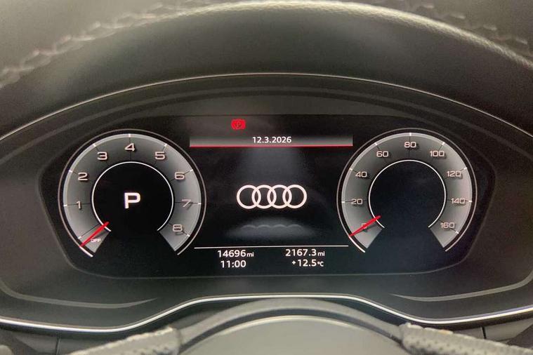 Audi connect safety and service (e-call), Audi drive select, Audi smartphone interface, Audi virtual cockpit, Automatic start-stop system with coasting functionality and efficiency programme, Bluetooth interface, Camera based traffic sign recognition, Electromechanical power steering, Email, calendar and text messages displayed via MMI, Front and rear parking sensors, Lane departure warning, MMI Navigation plus with MMI touch includes 10.1" high resolution colour MMI display, 3D map, Power operated tailgate, Rear view camera, Voice control system, 54 litre fuel tank, Sports suspension lowered by 23mm, 2 USB charging ports, 8 passive loudspeakers, DAB digital radio reception, Aluminium roof rails, Auto dimming rear view mirror, Body colour door handles, Body colour front spoiler lip, Body colour side sill trim, Body coloured door mirrors, Electric adjustable/heated/folding door mirrors with auto dimming, Grained matt black side air inlets with matt aluminium silver inlay, High beam assistant, Honeycomb structure radiator grille in grained matt black, LED headlights with LED rear lights + dynamic rear indicators + headlight adjustment and high beam, turning light + LED daytime running lights, LED third brake light, Matt aluminium silver tailpipe trim, Privacy glass, Rain and light sensors, Rear side wing doors, Rear wiper, S Line badges on the front wings, S line front and rear bumpers with side skirts, S Line rear diffuser in matt anthracite black with trim strip in matt aluminium silver, S Line roof edge spoiler, Variable intermittent front wash/wipe, Windscreen with acoustic glazing, 3 spoke high multi-function sports leather steering wheel grips in perforated leather with S badging including paddle shift, 4 way electric lumbar support for driver and front passenger, 40/20/40 split folding 3 rear seat bench in 3 parts with rear centre armrest, Black carpets, Black cloth headlining, Black perforated leather gearknob, Contrast stitching on seats, steering wheel and gear lever gaiter, Deluxe 3 zone electronic climate control, Electric load area cover, Front and rear head restraints, Front centre armrest, Heated front seats, Illuminated door sill trims with S logo, ISOFIX child seat mounting and top tether, Manual seat adjustment, Single front passenger seat, Stainless steel pedals and foot rest, High gloss package - A4, LED Interior light pack - A4/S4, 3 rear seatbelts, 6 airbags - Driver, front passenger, curtain and side windows, Attention and drowsiness assist, Electronic Stabilisation Control (ESC) including ABS, ASR and EDL, Hill hold assist, Multi collision brake assist, Pop-up bonnet for pedestrian protection, Pre sense city, Rear door child safety locks, Seatbelt monitoring, Warning triangle and first aid kit, Anti theft alarm, Anti theft wheel bolts, Central locking, Keyless Go, Matt brushed aluminium inlays, Tool kit, Tyre repair kit,