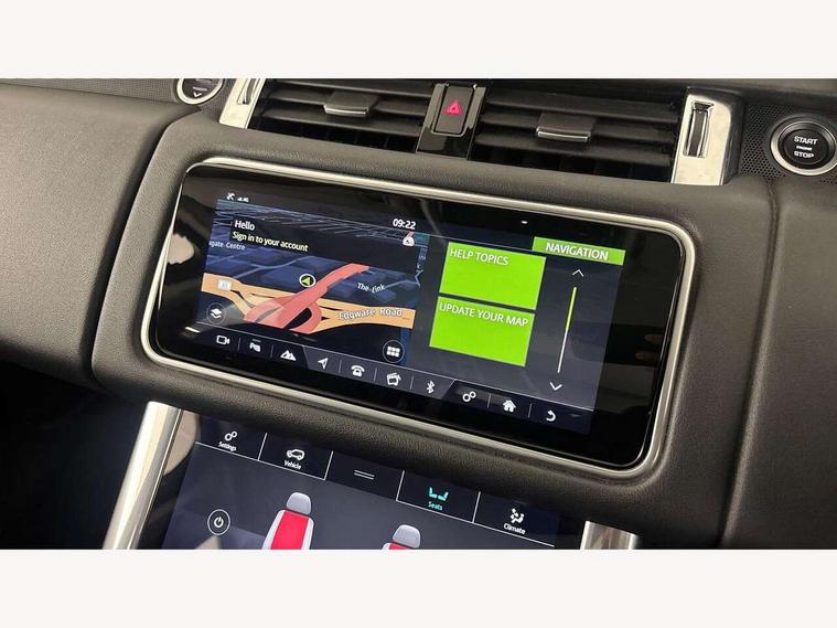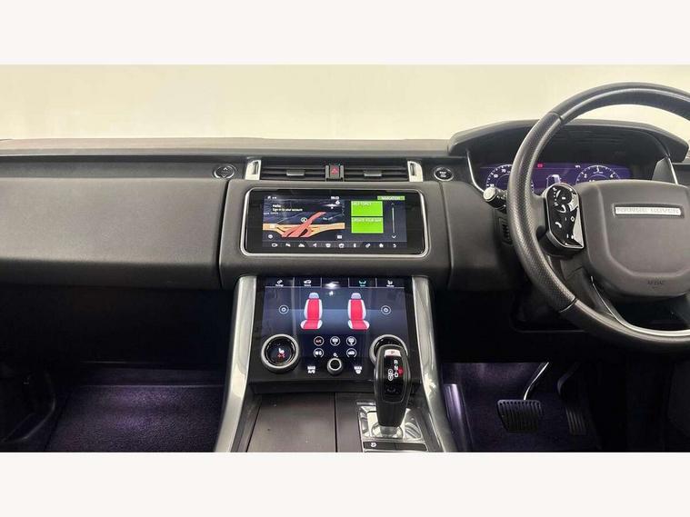 All Terrain Info Centre, Android Auto, Apple car play, Bluetooth connectivity, Electric power assisted steering (EPAS), Incontrol apps in vehicle touchscreen, Interactive Driver display instrument cluster, Mist sensor, Navigation pro system with 10" touch screen, app interface and media storage, Pro services and wifi hotspot, Push button start, Remote premium - Upgraded Incontrol remote app including remote climate control (engine dependent), remote lock + Unlock and remote beep + flash, TFT Virtual Instrument Panel, Touch pro duo system, Trip computer, Electronic air suspension, Engine cover, Gradient release control (GRC), Bluetooth audio streaming, DAB Radio (Digital Audio Broadcasting), Incontrol protect - SOS emergency call with automatic collision detection, optimised assistance call and Incontrol remote app essential, USB/aux input socket, Acoustic front and toughened rear side glass, Acoustic laminated front windows, Adaptive brake lights, Auto dimming interior rear view mirror, Automatic headlights, Body coloured bumpers, Centre high mounted stop light, Electric windows with one touch open/close and anti trap, Electrical towing preparation, Follow me home lighting, Front and rear recovery eyes, Front fog lights, Headlight power wash, Heated rear window, Heated windscreen includes heated washer jets, LED rear lamps, Rain sensing windscreen wipers, Rear fog lights, Rear side wing doors, Rear wash/wipe, Remote window closing, Side repeater indicators in mirror, Standard bonnet, Trailer stability assist, 2 way active front head restraints, 2 way rear head restraints, 3 seat bench in 2nd row, Auto air recirculation, Centre console with armrest, Climate control memory, Customer configurable single point entry, Driver's footrest, Front and rear cupholders, Front door storage space, Front map lights, Front seat back map pockets, Front stowage pocket, Front/rear passenger grab handles, Isofix child seat preparation, Leather steering wheel, Loadspace light, Loadspace mounting provisions, Lockable glovebox, Multifunction steering wheel, Pollen filter, Power socket, Reach/rake electric adjustable steering column + entry/exit tilt away, Rear centre armrest, Rear ISOFIX, Roller blind loadspace cover, Single front passenger seat, Three 12V accessory power outlets, Smartphone pack - Range Rover Sport, 3 point seatbelts on all seats, Anti-lock braking system (ABS), Brake pre-fill technology, CBC - (Cornering brake control), Curtain airbags, Customer configurable autolock, DSC - Dynamic Stability Control, Dual stage driver/passenger airbags, EBD - Electronic brakeforce distribution, Electric parking brake, Electronic traction control, Emergency braking includes city, urban AEB and pedestrian, Front seatbelt pretensioners, Gradient acceleration control, Grey anodised brake calipers, Height adjustable front seatbelts, Hill descent control, Hill launch assist, Low traction launch, Passenger seat occupant detector with front airbags, Power operated child locks, Roll stability control, Seatbelt warning, TPMS (Tyre pressure monitoring system), Immobiliser, Intrusion sensor, Keyless entry, Locking wheel nuts, Perimetric and volumetric anti theft alarm, Remote locking,