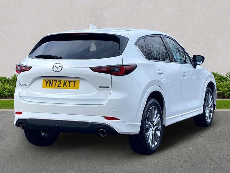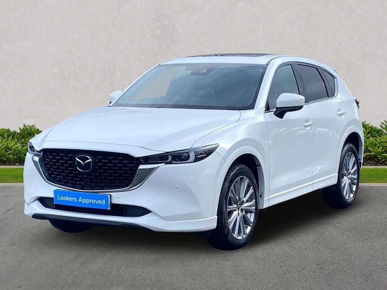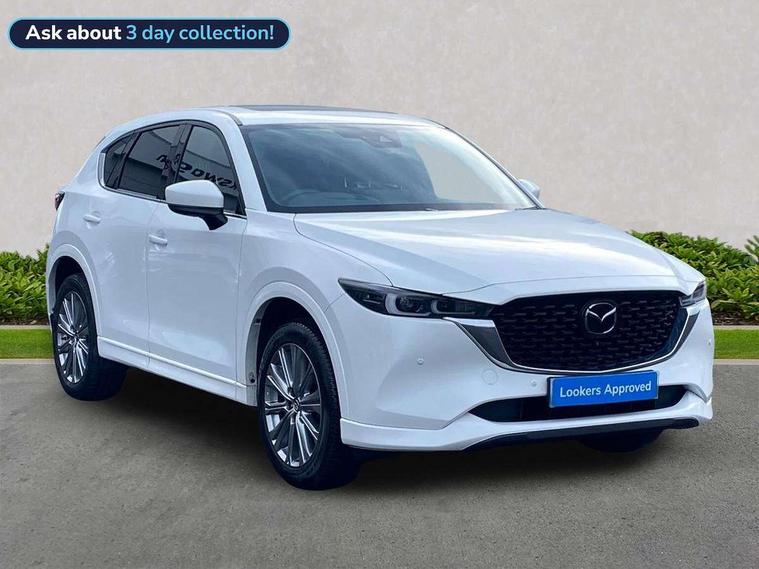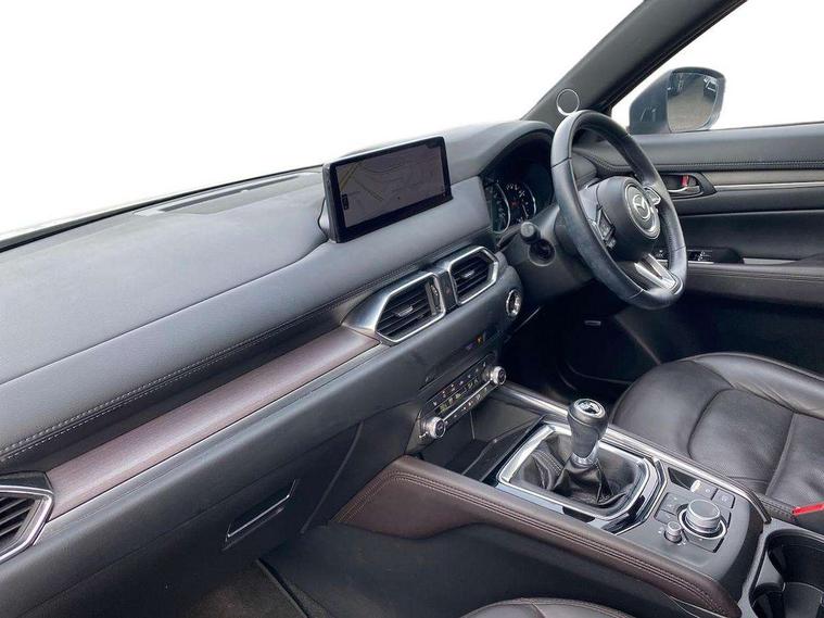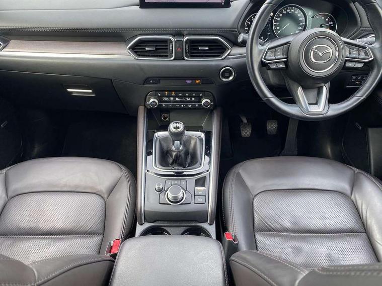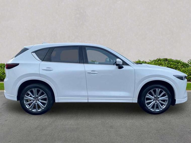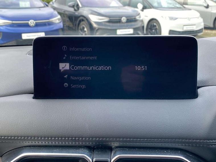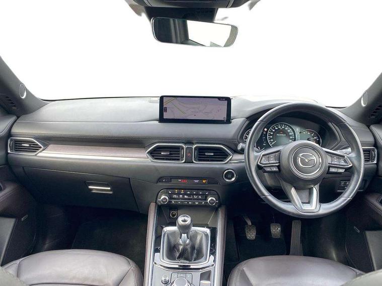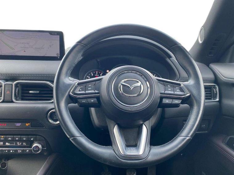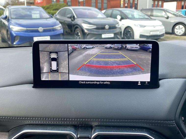 10.25" display with Mazda Connect infotainment, 360 degree surround camera, 7" colour TFT display, Apple car play/Android Auto, Blind spot monitoring with rear cross traffic alert, Bluetooth connectivity with voice control, Collision prevention assist, Connected services, Cruising Traffic Support, Driver attention alert system, Electric power steering, Emergency stop signalling system, Engine start/stop button, Forward collision warning, Front and rear parking sensors, Integrated navigation system, Intelligent speed assist, Lane departure warning system, Lane keep assist, Power liftgate, Qi wireless phone charging, Radar cruise control, Service indicator, Traffic sign recognition (TSR), Trip computer, Windscreen projected colour active driving display (HUD) with memory, Cylinder Deactivation, i-stop, 2 USB sockets in rear, 2x USB sockets in front, AM/FM radio, Bluetooth audio streaming, Bose premium sound system with 10 speakers, DAB Digital radio, Multimedia Commander including separate volume dial, Steering wheel mounted audio controls, Adaptive LED Headlights, Automatic headlights, Body colour door mirrors, Body colour roof spoiler, Body coloured front and rear lower bumper mouldings, Body coloured tire arch and side mouldings, Bright finish signature wing, Coming/leaving home lighting function, Door mirror integrated indicators, Dual large chrome tailpipes, Dusk sensitive headlamps, Electric front/rear windows with one touch auto up/down, Frameless auto dimming interior rear view mirror, Front grille in gloss black finish, Gloss black B and C pillars garnish, Gloss black front grille accent, High beam assist, Intermittent rear wash/wipe, LED auto levelling, LED daytime running lights, LED front fog lights, LED third brake light, Power folding and heated door mirrors, Power tilt/slide sunroof, Privacy glass (rear side windows only), Rain sensing front wipers, Real wood inlay dashboard panel, Rear side wing doors, Scuff plates, Shark fin antenna, Signature LED rear combination lights, Vinyl with real wood inlay door trim panel, Windscreen wiper de-icer, 12v electrical power outlet, 3 seat bench in 2nd row, 3 stage heated front seats, 40:20:40 Karakuri fold-flat seat system, 6 way electric adjustable passenger seat, 8 way electric driver seat with lumbar support + memory, Black roof lining, Cargo room flat floor board with waterproof undertray, Driver seat power slide, recline and height adjustment, Driver, Front passenger and two rear grab handles with coat hooks, Driver/passenger front seatback pockets, Driver/passenger sunvisors + illuminated vanity mirrors (drivers with ticket holder), Dual zone climate control, Folding centre armrest with 2 cup holders, Front and rear door pockets, Front centre storage with two cupholders, Front passenger seat power slide, recline and height adjustment, Front seat ventilation, Gear shift indicator, Heated outer rear seats, Heated steering wheel, Humidity sensor, Illuminated glovebox, Interior dome light with integral spotlight, ISOFIX child seat anchorage points attached on outer rear seats, Karakuri tonneau cover, Leather gear knob, Leather steering wheel with unique stitching and chrome centre bezel, Luggage compartment LED lightning, Luggage compartment power outlet, Nappa leather upholstery, Rear air vents, Rear headrests, Rear seat recline, Roof mounted sunglasses holder, Single front passenger seat, Three height adjustable head restraints, Tilt/height adjustable steering wheel, White interior LED illumination lighting, 3 point front seatbelts with pre-tensioners, 3 rear 3 point seatbelts, ABS, Advanced Smart City Brake Support - SCBS, Child locks on rear doors, Driver and front passenger side airbags, DSTC-Dynamic Stability and Traction Control, Dual front airbags, Electronic brake force distribution, Electronic parking brake with auto hold, ESP, Front and rear curtain airbags, Front passenger airbag deactivation, G-Vectoring control, Hill hold assist, Rear smart city brake support, Seatbelt reminder front and rear, Single stage passenger airbags, Smart brake support with forward obstruction warning, Tyre pressure monitoring system, Automatic door locking when moving off, Deadlock, Immobiliser, Power door locks, Remote central locking, Smart keyless entry, Thatcham Cat.1 alarm, Upper dashboard and door cards wood trim, 19" exclusive design bright alloy wheels, Tyre repair kit,