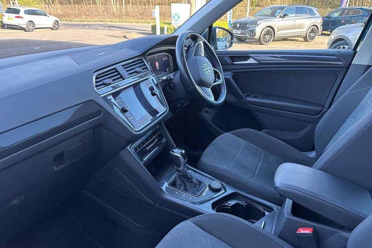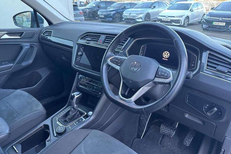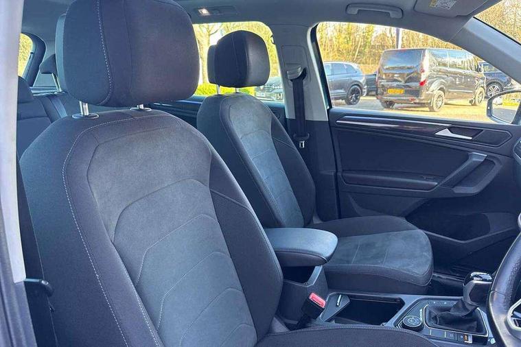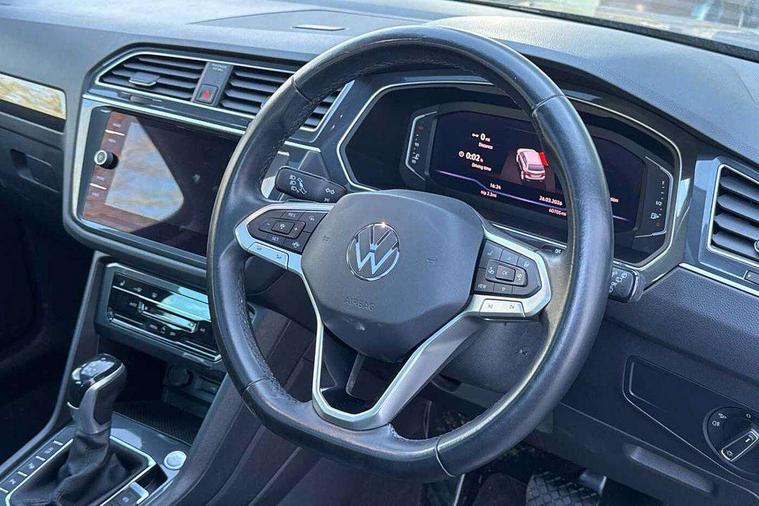 Ambience pack - Tiguan, Chrome pack - Tiguan, Easy open and close pack with safelock - Tiguan, Anti theft alarm system with interior monitoring, backup horn and towing protection, Anti theft wheel bolts, Central locking system with safelock radio remote control and 2 remote control folding keys, Electronic engine immobiliser, 2 USB-C ports in the front, 1 USB-C charging socket on the center console in the rear, Diversity antenna for FM reception, Radio, SD card slot, Simultaneous pairing of 2 compatible mobile devices, SMS functionality - read, compose and send SMS messages using touch-screen display, Title and cover art display, 3 point seat belt for centre rear seats, 3 point seat belts with seat belt pretensioners for the outer rear seats, Active bonnet, Curtain airbags for front and rear passengers, Driver/Front Passenger airbags, Drivers knee airbag, Electronic parking brake with auto hold, Electronic Stability Control with driver steering recommendation, ABS, ASR, EDL, EDTC and trailer stabilization, Front assist with autonomous emergency braking (for Adaptive Cruise Control ACC up to 130 mph), Front disc brakes, Front passenger airbag deactivation, Front side airbags, Height adjustable front 3 point seatbelts + pretensioners, Hill hold control, Pedestrian monitoring system, Proactive passenger protection system in combination with front assist, Rear disc brakes, Rigid safety cell with front and rear crumple zones, Two tone horn, Warning sound and light for front seat belts if unfastened, Warning triangle, Auto dimming interior rear view mirror, Automatic headlight control system, Body colour door handles, Body coloured bumpers, Coming/leaving home lighting function, Dynamic headlight range control, Front and rear electric windows, Heated rear window, High level 3rd brake light, IQ light with advanced high beam control and dynamic light assist for LED matrix headlamps + Dark red rear combination lamp in LED technology, Laminated safety glass windshield, heat and sound insulating, LED rear number plate lights, LED separate daytime running light, Poor weather light and cornering light, Power adjustable, folding and heated door mirrors with surround lighting, front passenger exterior mirror lowering function, Privacy glass for rear side windows and rear window, Rain sensor windscreen wipers, Rear exhaust tailpipe, Rear fog lamp, Rear windscreen washer and wiper with interval delay, Side and rear windows in heat insulating glass, Tilting and sliding panoramic sunroof with rear panoramic sunroof, Trailer Stability Programme, Windscreen wipers/ intermittent wipe + 4 position delay, 12V outlet in center console rear and in luggage compartment, 2 cup holders in front, 2 LED front reading lights, 2 LED rear reading lights, 3 rear headrests, 4 load lashing points, 40:20:40 split folding rear seats, Air Care Climatronic 3 zone automatic climate control with enhanced air filter and controls in the rear, Backrest release for left front seat, Door and side trim panel in foam film and woven fabric, Front + rear carpet mats, Front footwell illumination, Front seats head restraints (x-adjustment), Height adjustable front seats, Height/reach adjust steering wheel, Instrument lighting white adjustable panel illumination, Interior light with delay, Isofix Preparation 2 Rear child seats, Leather gear knob, Lockable cooled glovebox, Luggage compartment lighting, Rear bench seat asymetrically split folding, longitudinally movable and folding with load-through hatch and center armrest, Remote unlocking for rear seat backrest, Removable luggage cover, Safety optimised front head restraints, Sliding/reclining rear seats, Standard rear seat release, Storage compartment in driver's door, Storage compartment in passenger's door, Storage compartment in rear doors, Storage compartments in luggage area left and right, Storage tray on dashboard, Sun visors with illuminated vanity mirrors, Tool kit, Variable boot floor, height adjustable and removable, Adaptive cruise control ACC stop and go including speed limiter, App-Connect incl. App-Connect Wireless for Apple CarPlay and Android Auto, Bluetooth phone integration system, Digital Cockpit Pro - Active info display, Distance control assist, Driver alert system, Driver profile selection, Dynamic road sign display, eCall emergency call system, Electromechanical speed sensitive power steering, Lane keeping system Lane Assist, Lights on warning, Multifunction front facing camera, Outside temperature display, Premium multifunction display with multi colour display, Service interval indicator, Start/stop system with regenerative braking, Tailgate/trunk lid unlocking from outside, Warning sound and light for doors and tailgate open, Battery regeneration during braking, Diesel particulate filter, Misfuel prevention device for diesel engine, XDS electronic differential lock for improved traction and handling,