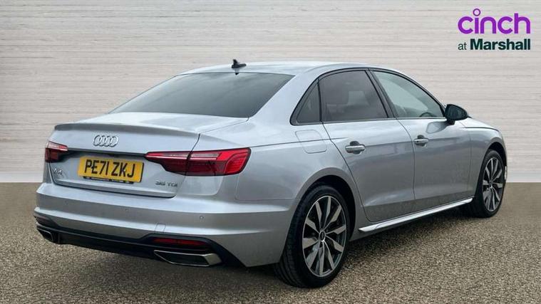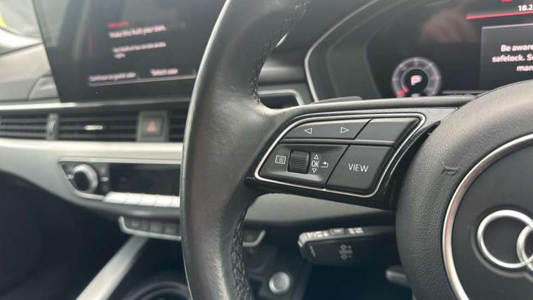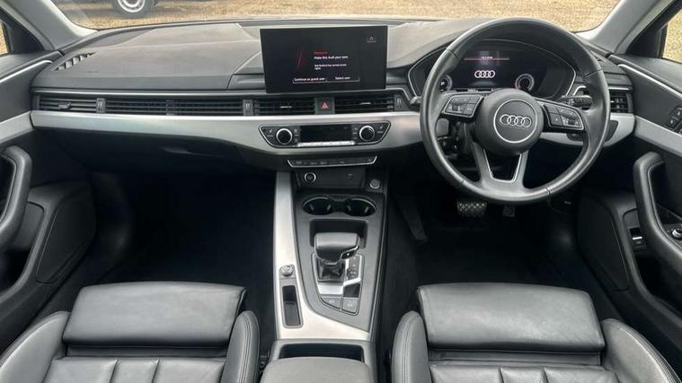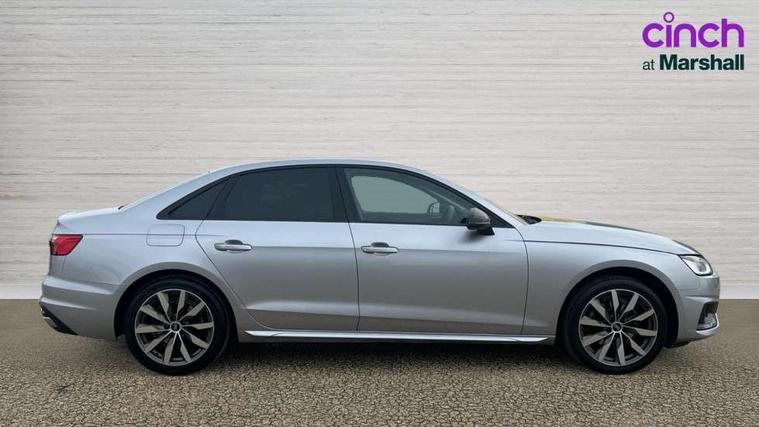 Audi connect safety and service (e-call), Audi connect with Amazon Alexa Integration, Audi drive select, Audi parking system plus with front and rear sensors, Audi smartphone interface, Audi virtual cockpit, Automatic start-stop system with coasting functionality and efficiency programme, Bluetooth interface, Cruise control system with speed limiter, Electric boot lid release, Electromechanical power steering, Email, calendar and text messages displayed via MMI, MMI Navigation plus with MMI touch includes 10.1" high resolution colour MMI display, 3D map, Rear view camera, Voice control system, Comfort dynamic suspension, 2 USB charging ports, 8 passive loudspeakers, DAB digital radio reception, Auto dimming rear view mirror, Body colour door handles, Body colour side sill trim, Body coloured door mirrors, Electrically folding auto dimming/adjustable/heated door mirrors with LED side indicators and kerb view function for passenger side, LED headlights and rear lights with LED daytime running lights, Matt aluminium silver tailpipe trim, Privacy glass, Rain and light sensors, Rear diffuser in matt titanium black with trim strip in matt aluminium silver, Sport front and rear bumpers with side skirts, Windscreen with acoustic glazing, 3 spoke high multi-function leather sport steering wheel with paddle shift and height and reach adjustable, 4 way electric lumbar support for driver and front passenger, 40/20/40 split folding 3 rear seat bench in 3 parts with rear centre armrest, Deluxe 3 zone electronic climate control, Door sill trims with aluminium inlay, Front and rear head restraints, Front centre armrest, Heated front seats, ISOFIX child seat mounting and top tether, Manual seat adjustment, Tool kit, Twin leather upholstery + front sports seats, High gloss package - A4, LED Interior light pack - A4/S4, Titanium black styling pack - A4 Saloon, 3 rear seatbelts, 6 airbags - Driver, front passenger, curtain and side windows, Electronic Stabilisation Control (ESC) including ABS, ASR and EDL, Hill hold assist, Multi collision brake assist, Pop-up bonnet for pedestrian protection, Pre sense city, Seatbelt monitoring, Warning triangle and first aid kit, Anti theft alarm, Anti theft wheel bolts, Keyless Go, Aluminium ellipse silver inlays, 18" 10 spoke dynamic design alloy wheels, Tyre repair kit,