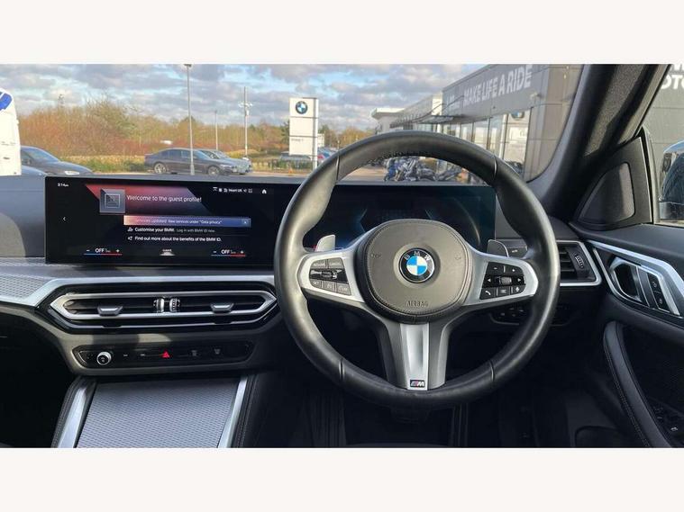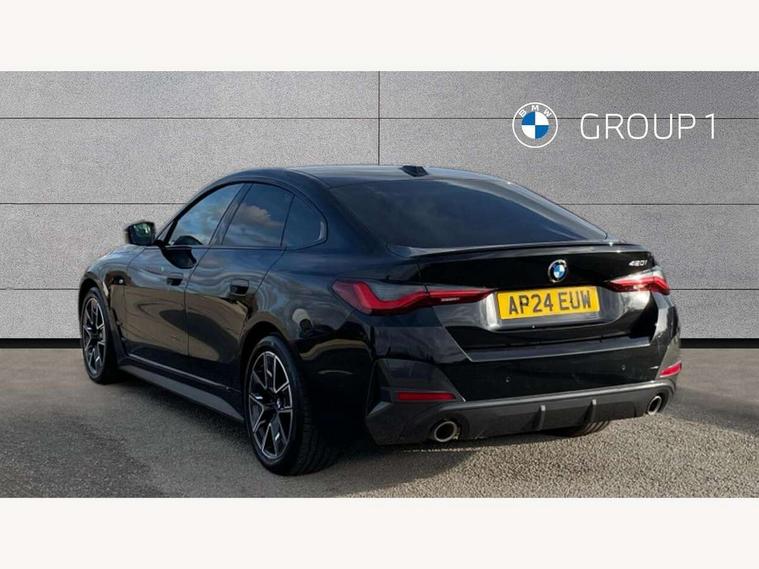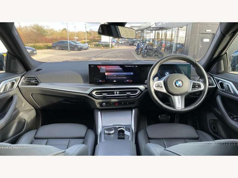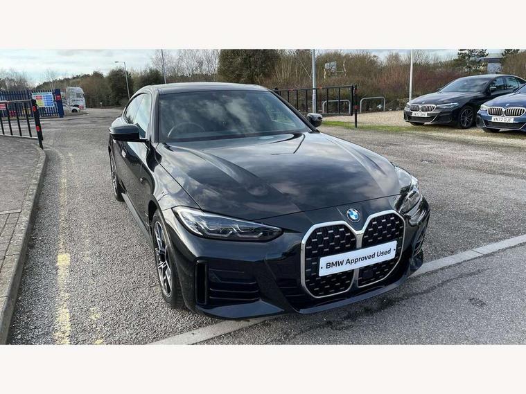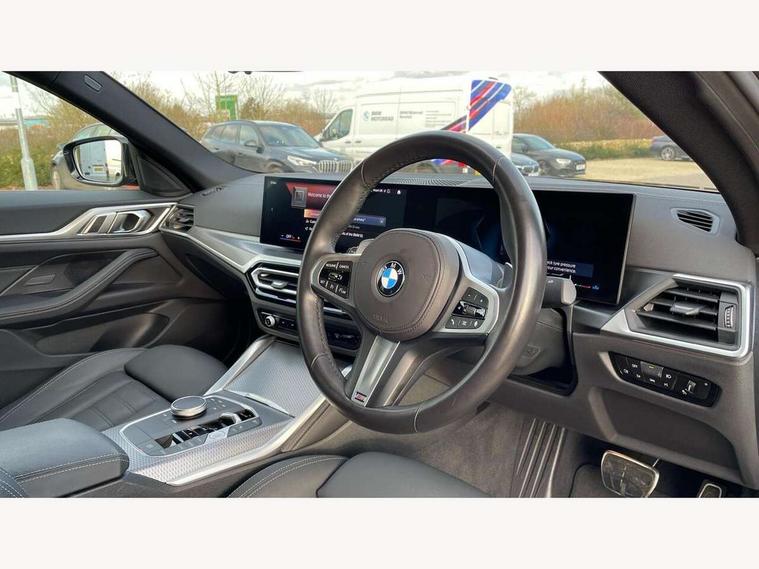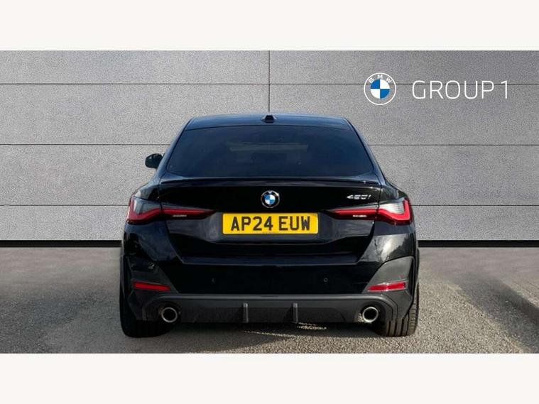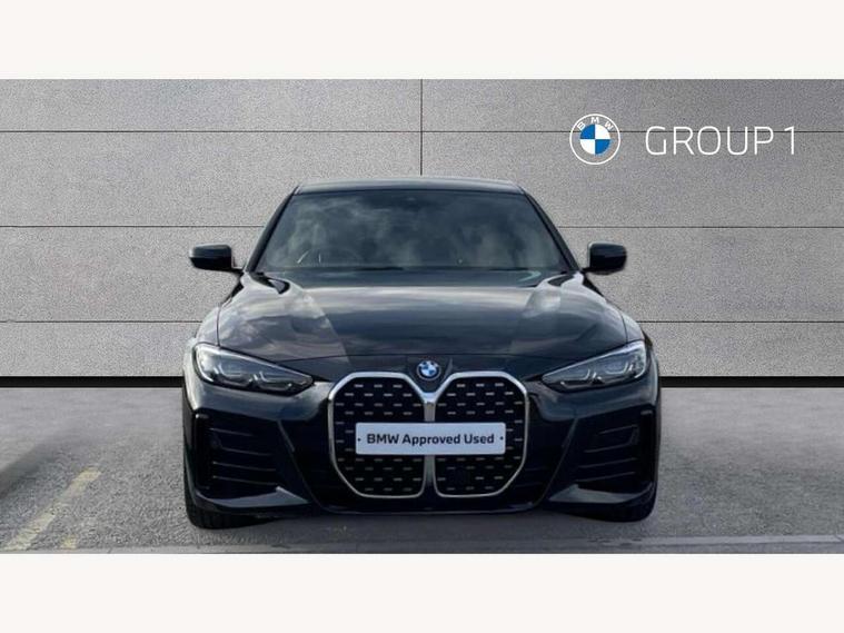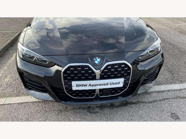Active guard plus, Auto start-stop, Bluetooth hands free facility with USB audio interface with audio streaming, BMW ConnectedDrive online services, BMW iDrive controller on centre console, BMW Live Cockpit Plus Nav-12.3" instrument&14.9" control Widescreen curved display/Intelligent Voice Assist/iDrive touch/Access 3rd party app/4G LTE, BMW service history, BMW Teleservices, Brake pad wear indicator in front and rear, Check Control warning system for monitoring of lights and door/luggage compartment open warning, Condition based service, Electric bootlid, Electric power steering with Servotronic steering optimised at all speed ranges, Fatigue detection system, Gearshift time display in manual mode, Instrument cluster with speedometer with mph readout, tachometer, fuel gauge and oil temperature gauge, Integrated owners handbook, Language version English, Oil sensor for level and grade, warning by check control system, On board computer - average speed, fuel consumption, outside temp display with acoustic warning, clock/date, service interval, odometer/trip meter, Optimum shift indicator, Shifting point display, Tailgate, Variable sport steering, 8 speed automatic steptronic transmission with gearshift paddles, Double joint spring strut front axle, Double VANOS, Drive performance control - ECO PRO, comfort and sport modes, Electronic differential lock control (EDLC), High precision injection, Low centre of gravity, Petrol Particulate Filter, Stroke dependent dampers, VALVETRONIC engine management, 2x USB Type C ports in front centre console for charging and data transfer, 2x USB Type C ports in rear centre console for charging, DAB tuner, Electronic service booklet, Acoustic glazing, Automatic headlight beam throw control with load dependent regulating reaction, dynamic compensation of braking dive and acceleration squat, Automatic windscreen wipers and automatic headlight, Automatically dimming electrochromatic rear view mirror, BMW emblem on engine compartment lid and tailgate, BMW kidney grille with mesh grille front side of the nuggets in matt aluminium and frame in chrome high gloss, Body colour fuel filler flap, Body colour roof fin, Brushed aluminium inserts in the front door sill finishers with BMW designation, Door sill strips, Dynamic brake lights, Electric windows - front and rear, with open/close fingertip control, anti trap facility and comfort closing function all round, Exterior mirrors - electrically folding with anti-dazzle, Fading support, Follow me home headlights, Front and rear bumper system, Front apron plastic in body colour, Green tinted heat protection glazing, High gloss shadow line exterior trim, Illuminated bow type door handles in body colour drivers side with door lock, Interior rear view electrochromatic mirror with automatic anti dazzle function, LED 3rd brake light, LED daytime running lights, LED front fog lights, LED front indicators, LED Headlights, Licence plate panel integrated into front bumper and tailgate, Lightweight engineering, M sport rear boot spoiler with body colour gurney, One piece front bumper cover including towing eye cover in body colour, Preparation for high beam assistant, Rear side wing doors, Rear wiper, Reversing light, Side frame decorative moulding black matt, Two part LED tailights in L-shape with components in smoked glass, brake light, LED turn indicator and rear fog light, Visible exhaust tailpipe finisher, Visible VIN plate, Welcome lights in interior and door handle area, Widened track and increased camber values for max transverse dynamics, agility and steering precision, Window recess cover black high gloss, Windscreen wipers with integrated heated washing jets, 12V power socket in front centre console, 2 front cupholder in centre console with clamping elements and matt black inlay, 3 rear headrests, 3 seat bench in 2nd row, 3 spoke M sport leather multifunction steering wheel, 3 zone automatic air conditioning, 4 pieces lashing eyelets in luggage compartment, 40:20:40 split folding rear seat and rear centre armrest with two cupholders, Anthracite headlining, Armrest integrated in front and rear door trim + front centre console armrest, Battery in luggage compartment, BMW ID, Extended storage in Combination with sport seat net pocket on rear backrest, Four grab handles integrated in roof lining, Front and rear door pockets, Front and rear footwell lights, Front and rear reading lights, Front sport seats, Heated driver and front passenger seats, Height adjustable front headrests, Height adjustable mechanically and infinitely variable steering column, Illuminated armrest storage compartment, Illuminated glove compartment with separate small compartment, Luggage compartment lighting, Luggage compartment seprating net on side trim left/right, Bag hook, 12V socket, TTH button, USB C charging in rear, Folding compartment on driver side, Make-up mirror lights, Single front passenger seat, Storage compartment in rear centre console, Sunvisors with illuminated vanity mirrors and ticket pocket, Toolkit located in luggage compartment, Velour front floor mats, Ambient lighting pack - 4 Series, Connected professional package - 4 Series, M sport exterior styling pack - 4 Series, Park assist pack - 4 Series, 3 point seatbelts on all seats, Battery safety cut-off, BMW emergency call, Brake energy regeneration, Braking pre-tensioning, Child proof locking system in rear door, Child seat ISOFIX attachment for the two outer rear seats, Coasting in idle in ECO PRO mode, Cornering brake control (CBC), Crash sensor activating of airbags, Unlocking doors, hazard warning lights, interior light, safety battery terminal, Driver and front passenger side airbags, integrated in the door side seat backrest bolsters for all seat variants, Driver/Front Passenger airbags, Dry braking, Dynamic brake control, Dynamic stability control + (DSC+) - Anti-lock Braking System (ABS) with brake assist and cornering brake control + Automatic Stability Control (ASC)