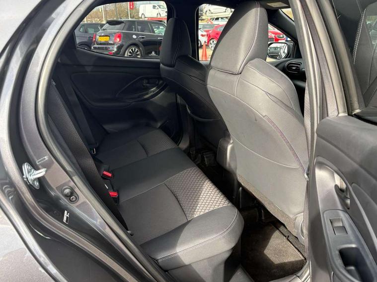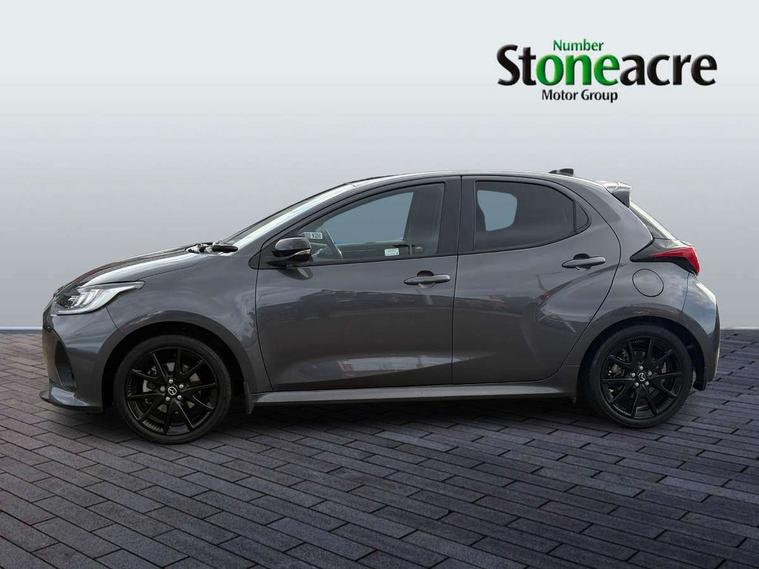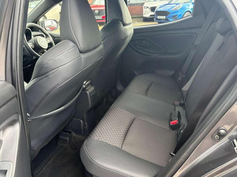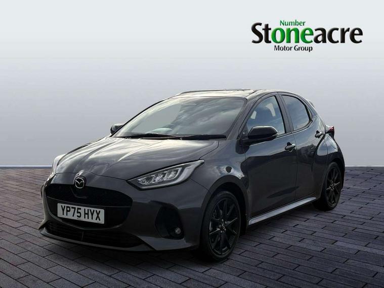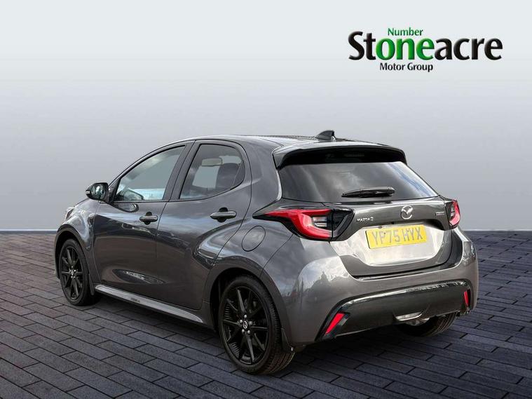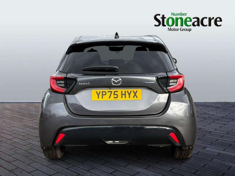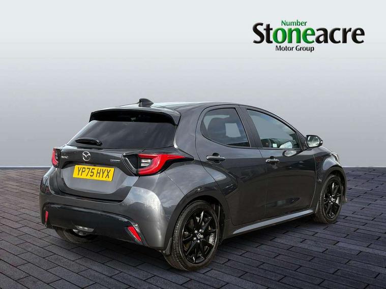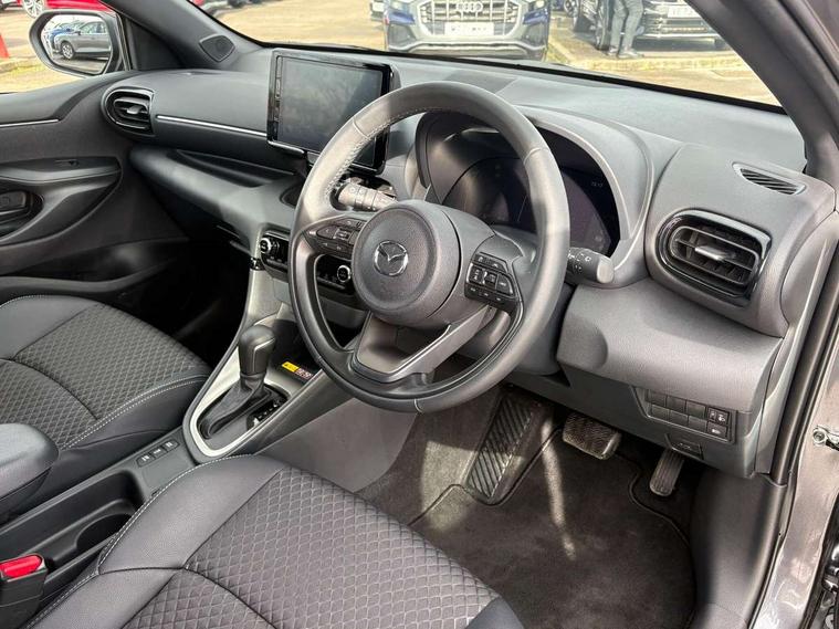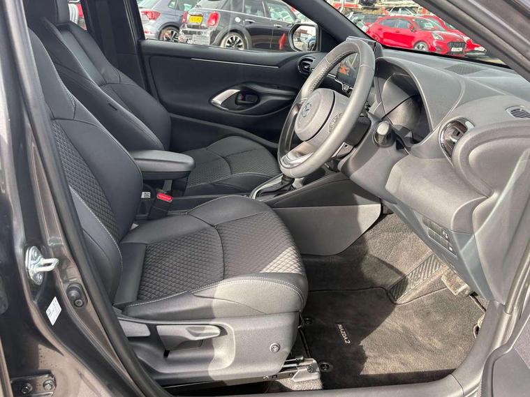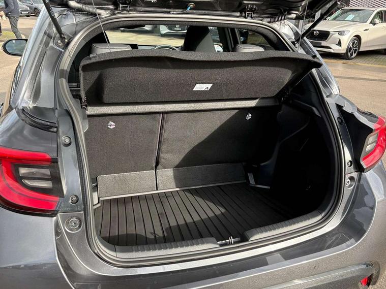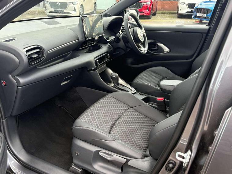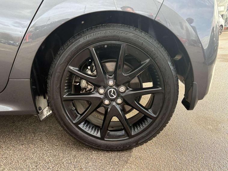7" Digital instrument cluster with speedometer and hybrid system indicator, Adjustable speed limiter, Drive mode selector (Eco, Normal and Power), Driver attention alert system, Dynamic radar cruise control, E-call with GPS, EV drive mode, Front and rear parking sensors, Integrated bluetooth, Lane tracing assist includes Lane centering, Lane departure alert, Steering assist and Vehicle sway warning, Multi-information display, PAS, Push button start and stop, Qi wireless charging, Rear cross traffic alert with auto braking, Reversing camera, Road sign assist - RSA, Service indicator, Tailgate, Trip computer, Wireless Apple CarPlay and wired Android Auto, i-stop, 6 speaker audio system and 9" colour screen centre display, DAB Digital radio, Steering wheel mounted audio/bluetooth controls, USB type C port, Auto dimming rear view mirror, Auto folding door mirrors, Automatic high beam - AHB, Body coloured front bumper, Body coloured rear bumper with gloss black lower mouldings, Coming home function, Dusk sensing headlights, Front and rear electric windows, Gloss black electric adjustable/heated door mirrors, Gloss black front grille, Gloss black rear roof spoiler, Hybrid badge, LED front fog lights, LED headlights with manual headlight levelling and LED daytime running lights, LED rear combination light with LED turn signals, LED third brake light, Mazda unique tailgate garnish, Piano black lower window garnish, Privacy glass in rear side and rear windows, Rain sensing front wipers with adjustable sensitivity and speed, Rear side wing doors, Rear wash wiper, Shark fin antenna, Welcome lighting, 12V power outlet, 3 seat bench in 2nd row, 60/40 split fold down rear seats, Ambient lighting, Black roof lining in pillar and ceiling, Cloth/Synthetic leather upholstery, Driver, front passenger and two rear door storage, Driver, Front passenger and two rear grab handles with coathooks, Drivers seat manual slide recline and height adjustment, Drivers/front passengers with covered vanity mirrors and light, Dual zone climate control, Front centre armrest with console storage, Front head restraints, Front passenger seat manual slide, recline and height adjust, Front sport seats, Glovebox, Interior courtesy light with LED illumination, ISOFIX child seat anchorage points attached on outer rear seats, Leather handbrake, Leather wrapped gearshift, Leather wrapped steering wheel with telescopic and tilt adjustment, Luggage compartment light, Seatback pocket at rear of the front passenger seat, Single front passenger seat, Three height adjustable rear head restraints, 2x3 point front seatbelts with pre-tensioners, 3 point seatbelts on all rear seats, Airbags - driver and front passenger, Anti-lock braking system (ABS), Blind spot monitoring with rear cross parking support brake function, Collision mitigation braking system, Driver and passenger central airbags, Dynamic stability control + Traction control, Electronic parking brake with auto-hold and auto-disengage function, Emergency brake light signal (EBS), ESP, Front and rear curtain airbags, Front passenger airbag cut-off switch, Front side airbags, Hill start assist control (HAC), Manual child lock in rear doors, Pre-crash safety system - PCS, Rear parking support brake, Regenerative braking system, Seatbelt reminder audible warning, Tyre pressure monitoring system, Deadlocking system, Remote central locking, Smart keyless entry, Thatcham approved immobiliser and alarm, 17" Alloy wheels, Emergency tyre repair kit,