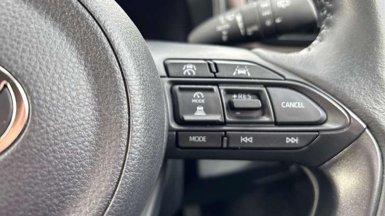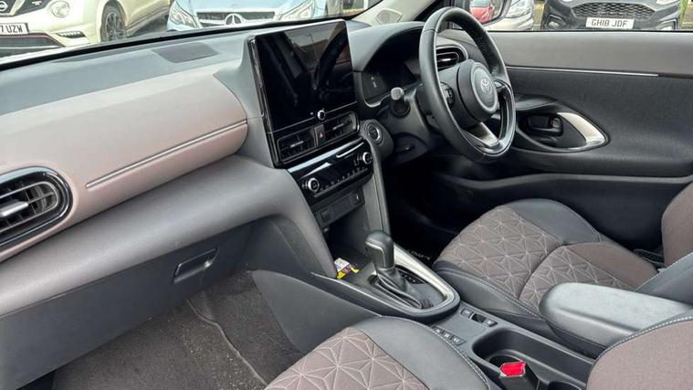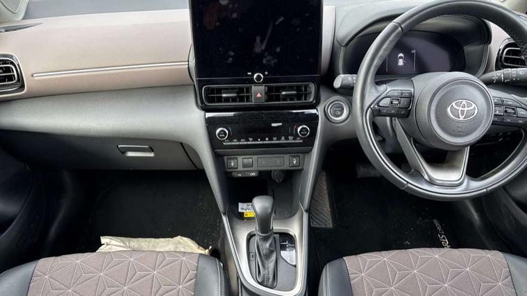 10.5" Multimedia display screen, 10.5" Toyota smart connect+ with navi multimedia system with wireless Smartphone integration incl Apple CarPlay, 360 degree panoramic view monitor, 7" Multi information display screen, Adaptive cruise control, multi info switches on steering wheel, Adjustable speed limiter, Advanced parking assist, Blind spot monitoring, Bluetooth connectivity, Color multi-information display, Digital speedometer, Digital tachometer, Drive mode selector, Driver attention alert system, Dynamic guide lines on reversing camera, eCall emergency system, Electric power steering, Emergency driving stop system, Full range intelligent adaptive cruise control, Hybrid system indicator, Intelligent front and rear parking sensors with clearance sonar and automatic braking, Intersection turn assist, Key reminder warning, Lane change assist, Lane trace assist, My T Connected services, Power tailgate, Pre-collision system enhanced with emergency steering assist, Rear cross traffic alert, Remote boot door release in cabin, Road sign assist - RSA, Safe exit assist, Tailgate, Telephone switch on steering wheel, Wireless Mobile Phone Charger, Steering assisted vehicle stability control, 6 speakers, DAB Digital radio, Front USB Type-C connector, Front USB-C device charger, Acoustic windscreen glass, Anti-jam protection on power windows, Auto dimming rear view mirror, Auto high beam [AHB] with on/off switch, Auto intermittent windscreen wipers, Automatic headlights, Automatic headlights cut-off, Black door moulding, Black lower front grille, Black protection moulding on side doors, Black roof rails, Black wheel arch mouldings, Body colour door handles, Body colour front bumper, Body colour rear bumper, Electric adjustable heated door mirrors, Follow me home headlights, Front and rear electric windows with auto up/down function, Gloss black upper front grille, Headlight cut off reminder, Indicators integrated on door mirrors, Intermittent rear wiper, Kick activated power back door, LED 3rd brake light, LED daytime running lights guide, LED front fog lights, LED front light guide, LED Indicators, LED projector headlights, LED rear lights with sequential indicators, Manual headlight levelling, Meshed shape upper front grille, Noise reduction layer on windscreen, Pre wiring for towing hook, Privacy glass, Rain sensor, Rear roof spoiler, Rear side wing doors, Rear window defogger, Shark fin antenna, 12v power outlet - front, 12V power point in boot, 2x Rear coat hooks, 3 seat bench in 2nd row, 3 spoke leather steering wheel, 40/60 split deckboard, 40:20:40 split folding rear bench seat, Adjustable rear headrests, Adjustable speed limiter switch on steering wheel, Boot light, Central armrest, Driver and front passenger personal lights, Driver and front passenger Whiplash injury Lesseing seats, Driver and passenger seatback pockets, Dual zone automatic air conditioning, Fabric door trim, Front console box, Front cup holders, Front door pockets, Front head restraints, Front sport seats, Front/rear assist grips, Gear shift indicator, Grey roof lining, Heated driver and passenger seats, Heated steering wheel, Height adjustable driver's seat, Height adjustable front passenger seat, Hooks for luggage holding belts, ISOFIX child restraint system, Lane departure alert switch on steering control, Leather gearshift, LED centre room light, Light on driver and passenger sun visor, Manual telescopic and tilting steering wheel, Mirror on driver and passenger sun visor, Nanoe-X air purifier, Partial synthetic leather upholstery, Pollen air filter, Power adjustable lumbar support on driver seat, Rear cup holders, Rear door pockets, Rear head restraints, Remote air-conditioning system, Single compartment glovebox, Single front passenger seat, Soft tonneau cover, Storage box under boot floor, Voice recognition switch on steering wheel, White ambient lighting in centre console, White ambient lighting in footwell, White ambient lighting on front doors, Yaris cross floor mats, Tech pack - Yaris Cross, 3x3 point rear seat belts, ABS+EBD+Brake assist, Downhill Assist Control (DAC), Driver and passenger central airbags, Driver and passenger front airbags, Driver and passenger side airbags, Electronic parking brake, Emergency brake light system (EBS), Front seat belt reminder, Hill start assist control (HAC), Passenger airbag on/off switch, Pre-collision system with pedestrian and cyclist detection, Rear door child safety locks, Rear passenger side airbags, Rear seat belt reminder, Traction control, Tyre pressure warning system, Immobiliser, Intrusion alarm, Keyless smart entry with push button start, Power door locks, Power passenger window lock, Remote door lock, Gloss black side air vent surrounds, Tyre repair kit,