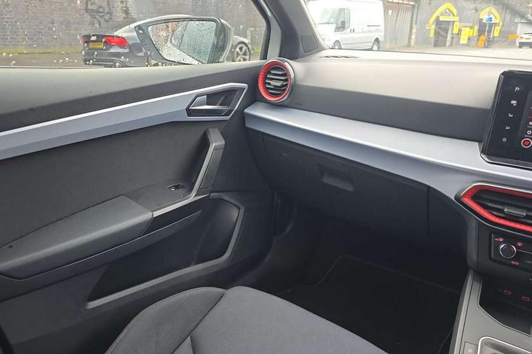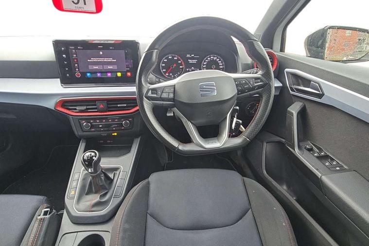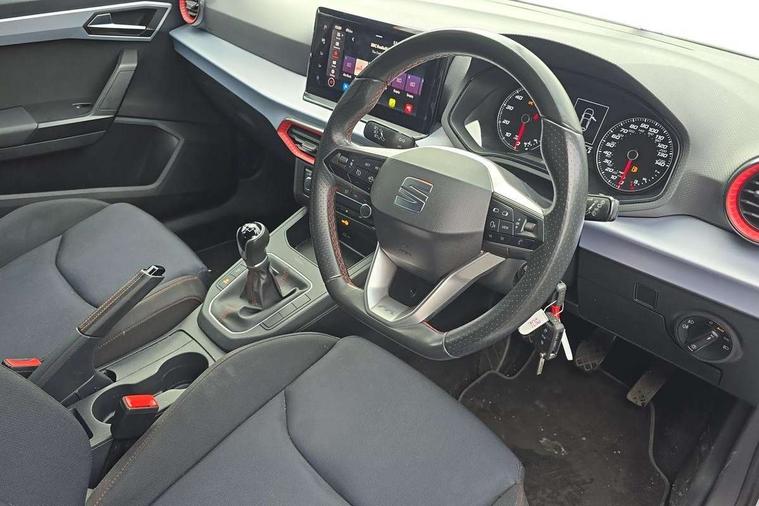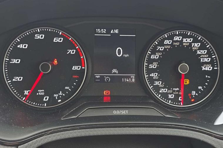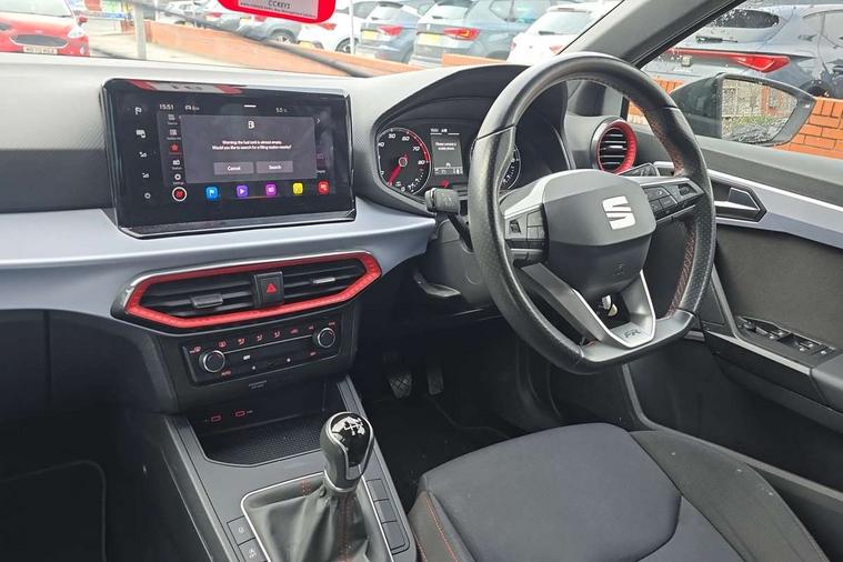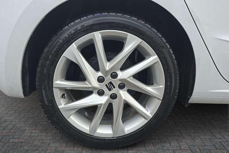 'Lights On' Reminder warning buzzer, 9.2" touchscreen navigation system with type C USB socket, Voice control and DAB/AM/FM radio, Auto start and stop system, Bluetooth audio streaming with handsfree system, Digital clock, E-call, Full link smartphone integration with mirror link, wireless apple carplay, Google android auto + USB Type C cable for apple and android devices, Lane assist, Low fuel warning light, Outside temperature gauge, Power Steering, Seat connect with safety, service, remote and online, SEAT drive profiles and ECO function, SEAT logo boot release, Speed limiter, Trip computer, Sports suspension, Auxiliary input socket, Radio/MP3 player, SD card slot, Steering wheel mounted controls, Anti theft roof antenna, Auto dimming rear view mirror, Automatic rain sensing wipers, Black door mirrors, Body colour bumpers, Body colour door handles, Brilliant black window surrounds, Dark tinted rear windows, Electric adjustable/heated/folding door mirrors, Electric front windows, Electric headlight adjustment, Electric rear windows, Front/rear fog lights, FULL LED automatic headlights with dynamic headlight range control, coming and leaving home, LED daytime running lights, LED tail lights, Rear roof spoiler with FR twin exhausts, Rear side wing doors, Rear wiper, Third brake light, 3 seat bench in 2nd row, 60/40 split folding rear seat, Ambient interior lighting, Chrome detailing and black headlining, Cloth upholstery, Dual zone climate control with combination filter, Front courtesy lights, Front cupholders x 2, Front reading lights, Gear shift indicator, Glovebox, Height adjustable front and rear headrests (five), Height adjustable front seats, Height/reach adjust steering wheel, Illuminated air vent surrounds, Illuminated boot, Instrument lighting with brightness control, Isofix, Leather multifunction flat bottomed sports steering wheel, Passenger sunvisor, Single front passenger seat, Sports seats, Sunvisors with mirror and driver side card holder, 3 point seatbelts on all 3 rear seats, ABS, Active front headrests, Child locks on rear doors, Electronic stability control, Energy recovery system, Front assist forward collision warning and autonomous emergency braking, Front driver and passenger side airbags with curtain airbag and front passenger airbag deactivation, Hill hold control, Multi-Collision braking, Seat belt reminder for front and rear seats, Tiredness recognition system, Tyre pressure monitoring system, Electronic engine immobiliser, Locking wheel bolts, Perimeter alarm and interior monitoring with backup horn and tow away protection, Remote central locking + deadlocks, 17" Alloy wheels in Brilliant silver,